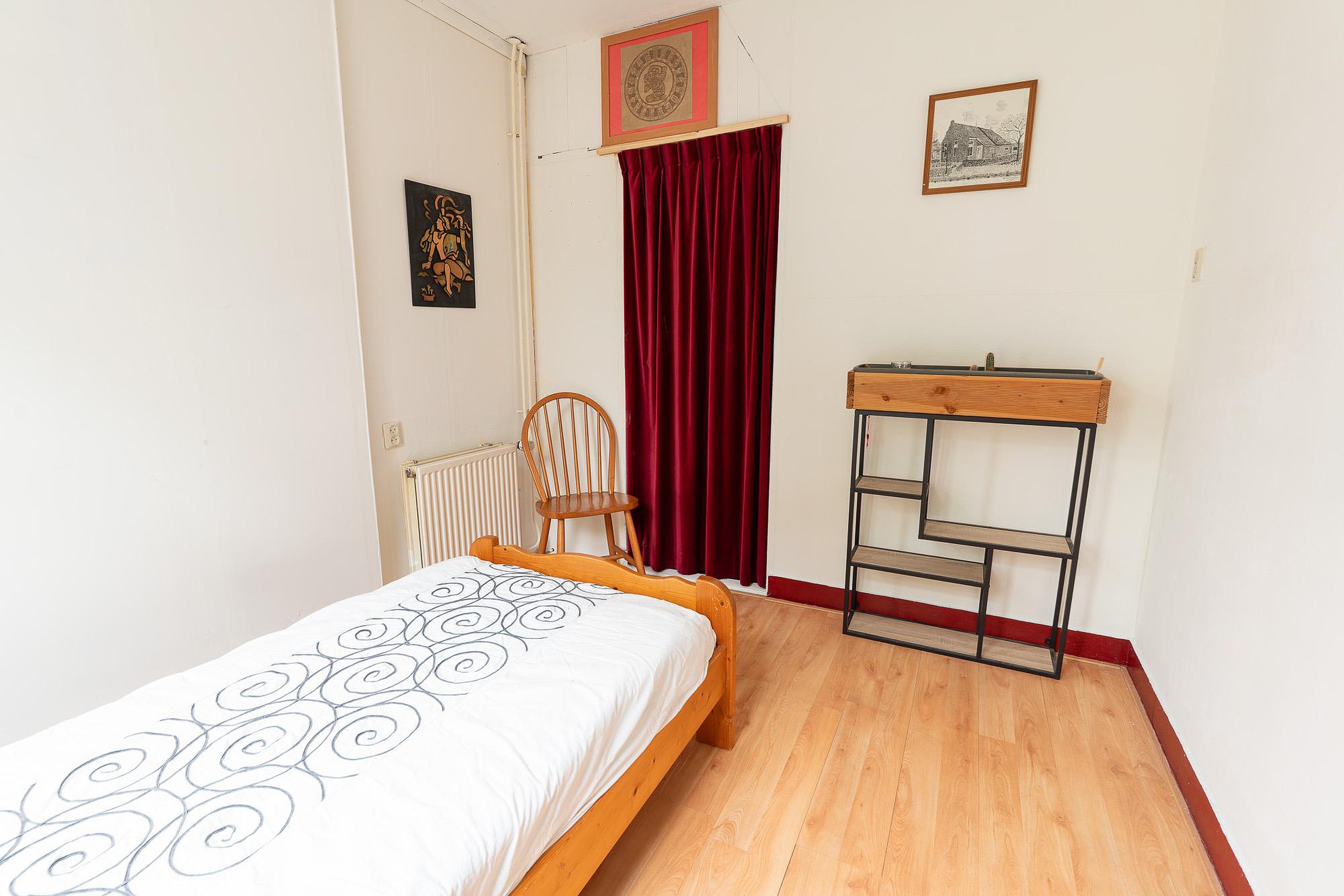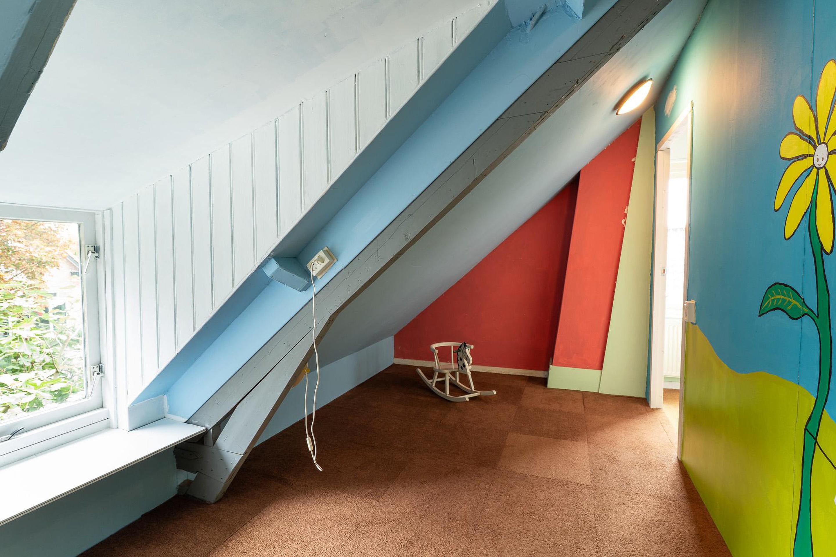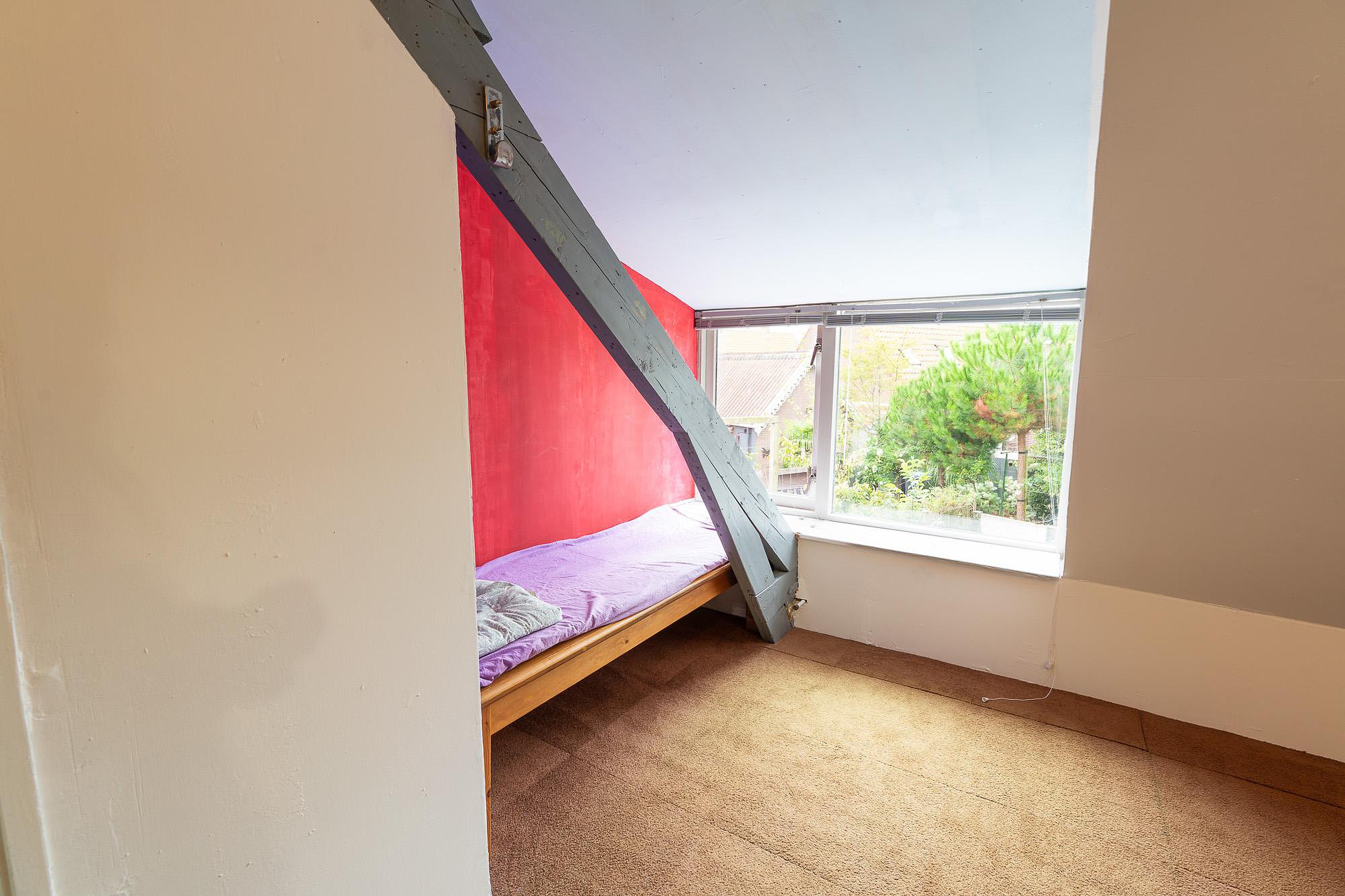 De tweede slaapkamer is bescheiden van grootte. Het meest opvallende aan deze verdieping is de onbenutte potentie. Door het plaatsen van grotere dakkapellen kan er namelijk een forse winst in de ruimte behaald worden, waardoor de verdieping veel ruimer en lichter wordt. Dit is een investering die de woning niet alleen in waarde doet stijgen, maar ook het wooncomfort aanzienlijk verbetert. De overige opbergruimte kan desgewenst worden omgevormd tot een extra kamer of een walk-in closet.