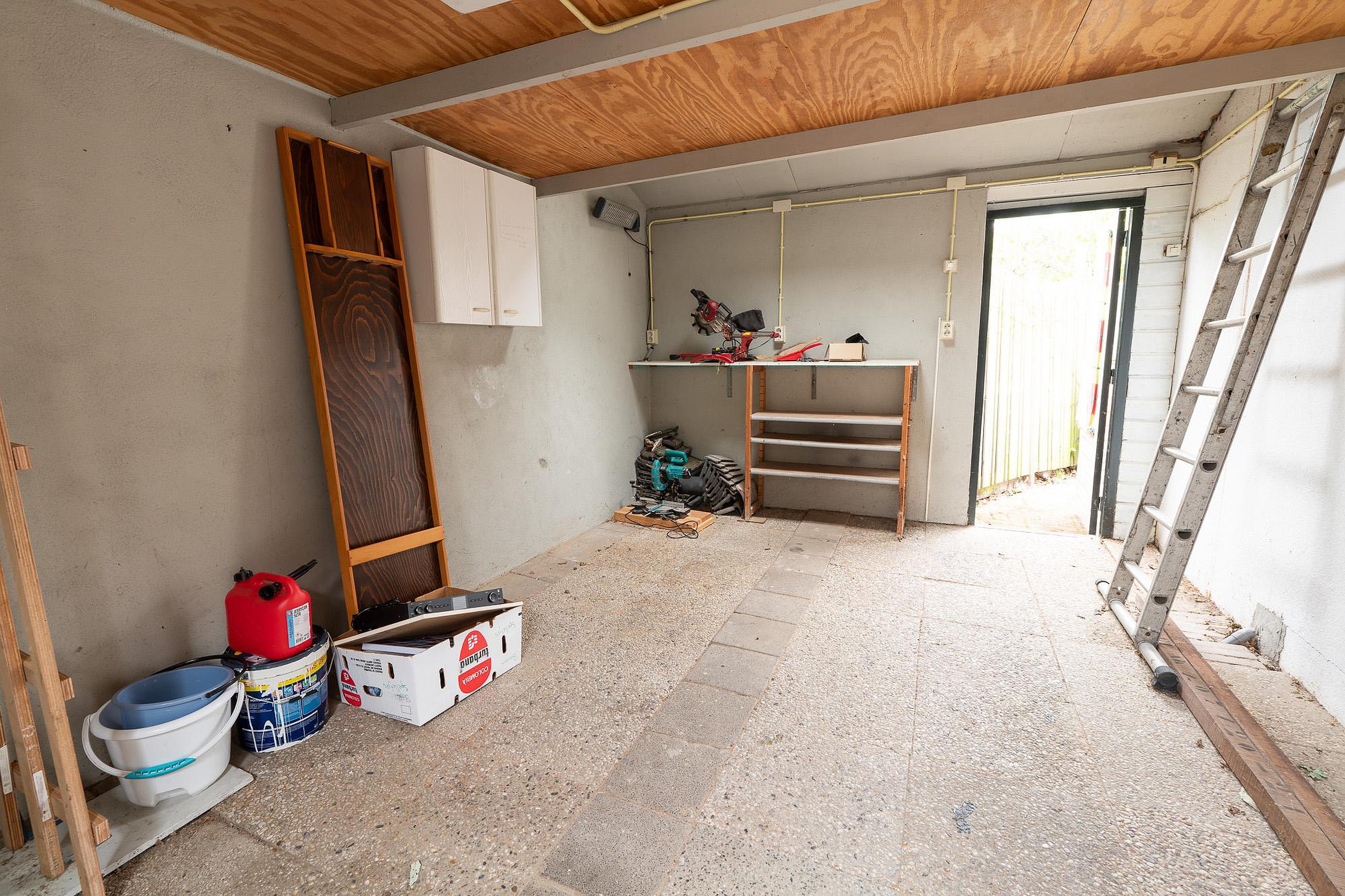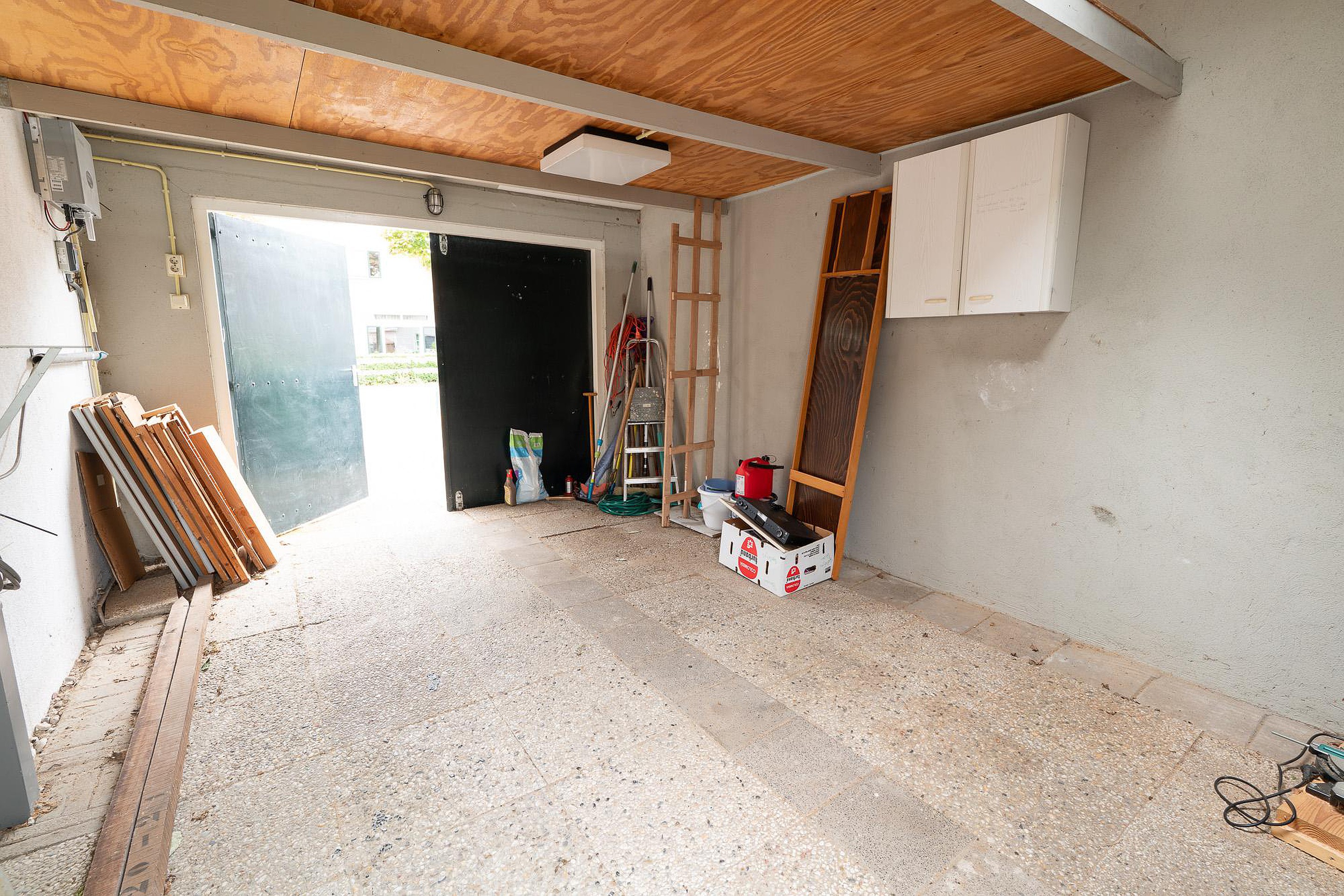 Parkeren op eigen erf is hier geen probleem. De garage, van ruim 16 m2, is een praktische toevoeging, niet alleen voor het stallen van een auto of fietsen, maar ook dankzij de opbergzolder die extra opslagruimte biedt voor al uw spullen.