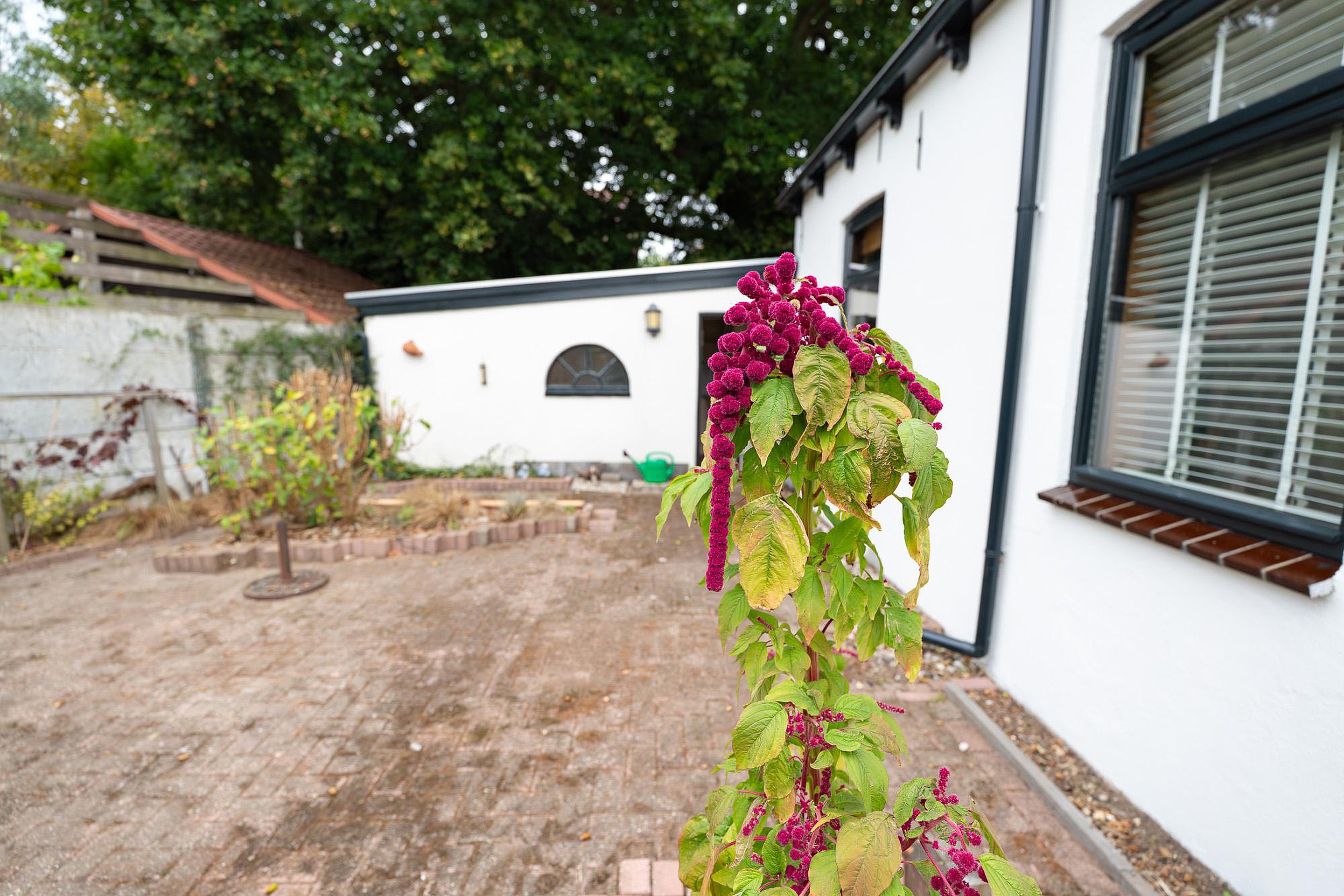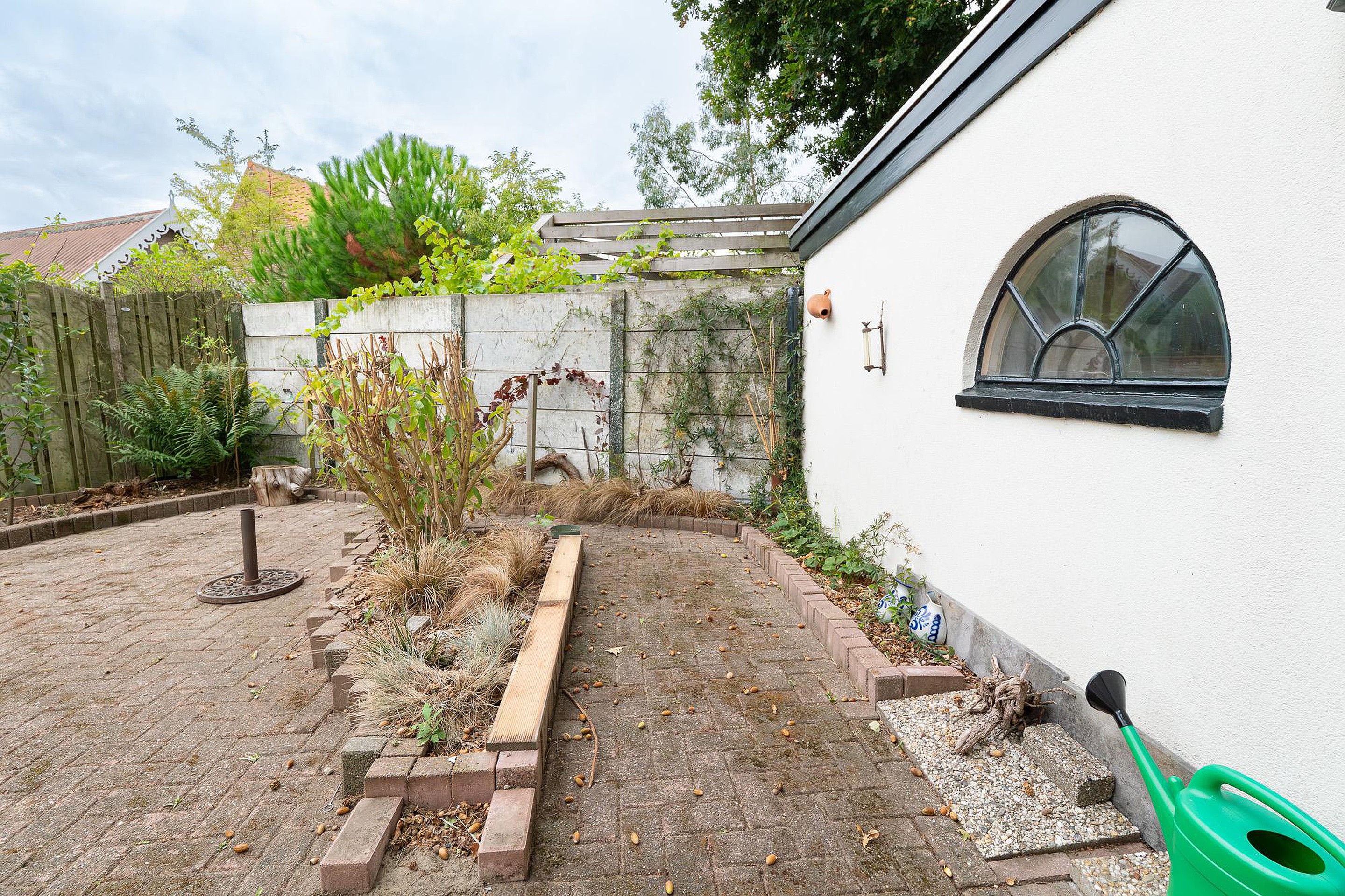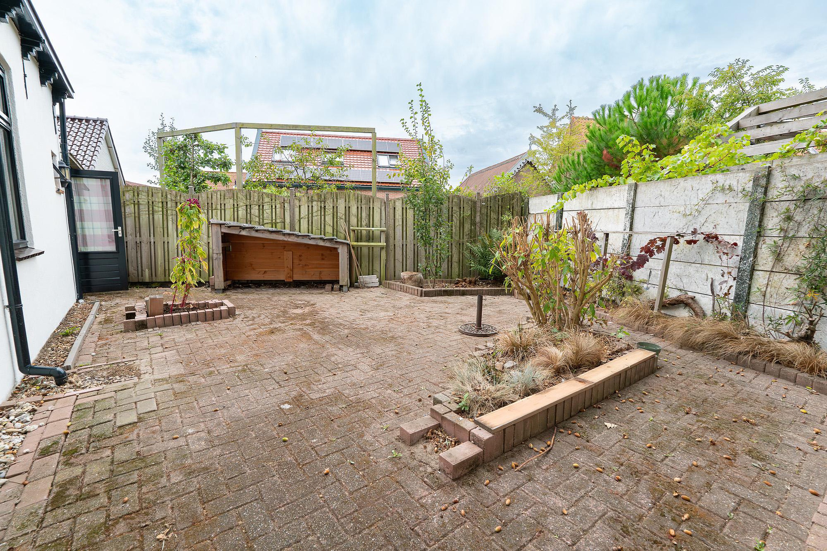 De achtertuin, gelegen op het zuidwesten, is een besloten oase van rust en privacy. Door de ligging kunt u hier van 's middags tot laat in de avond genieten van de zon. Het is de perfecte plek voor een zomerse barbecue, een borrel met vrienden of gewoon om in alle rust te genieten van het buitenleven.