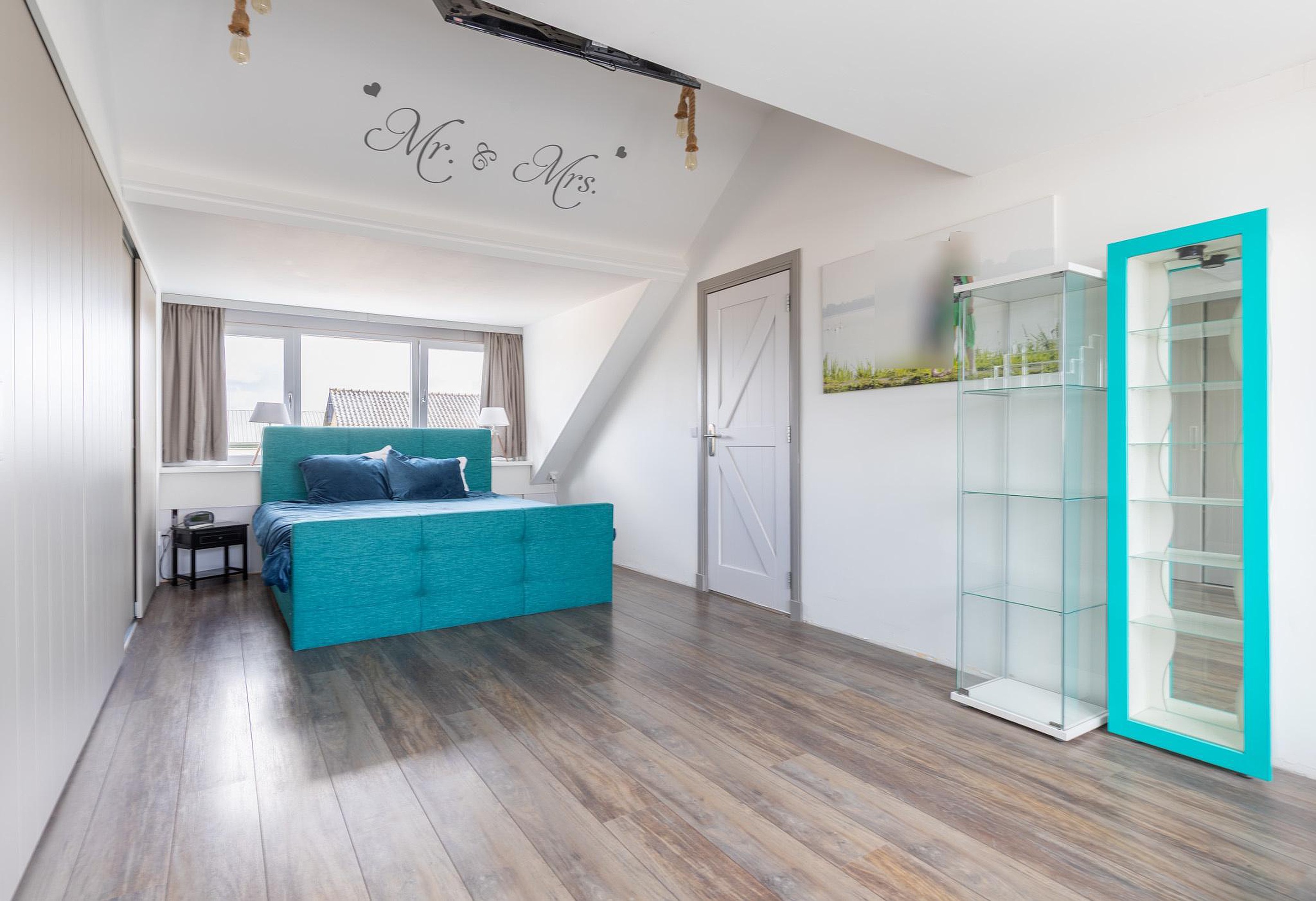 De hoofdslaapkamer is bijzonder ruim en kan desgewenst worden opgesplitst in twee kamers. Aan de andere zijde bevinden zich nog twee goed bemeten slaapkamers.