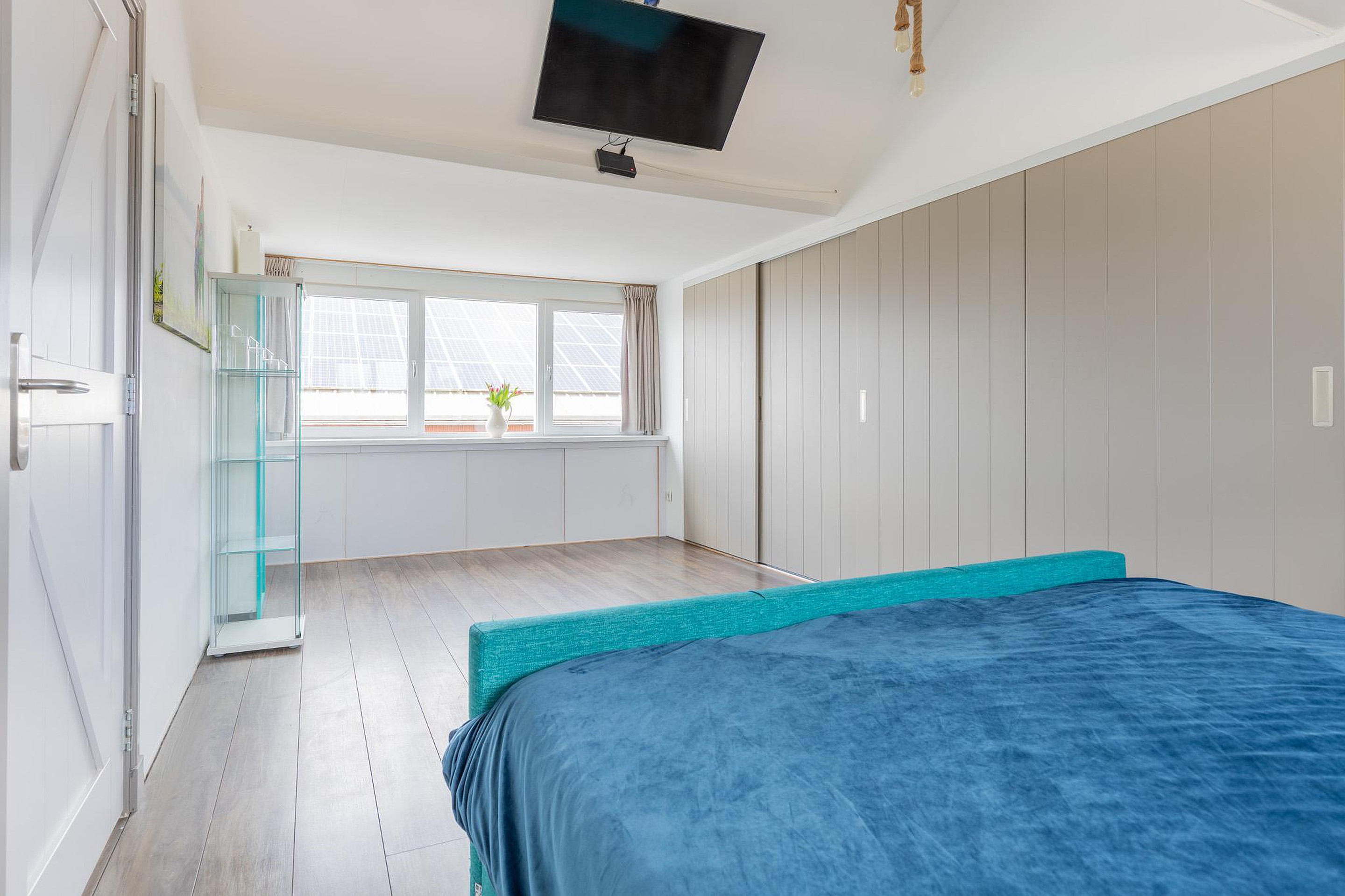 Alle slaapkamers op de eerste verdieping zijn volledig voorzien van elektrische rolluiken, aangedreven op zonnestroom, ideaal voor verduistering en extra privacy.