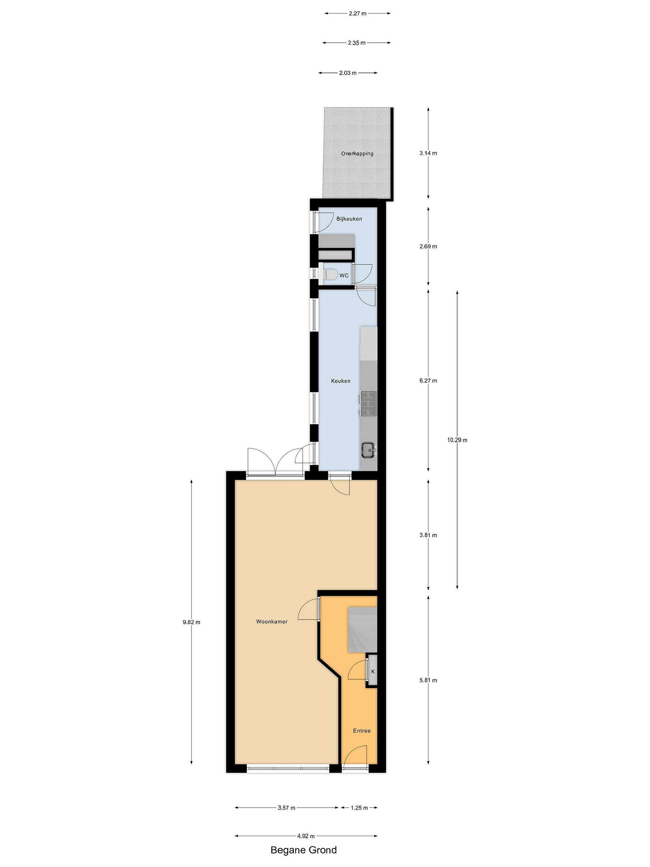 Wanneer je binnenkomt heb je een ruime entree met toegang tot de woonkamer en eerste verdieping. Ook bevind zich hier de meterkast.