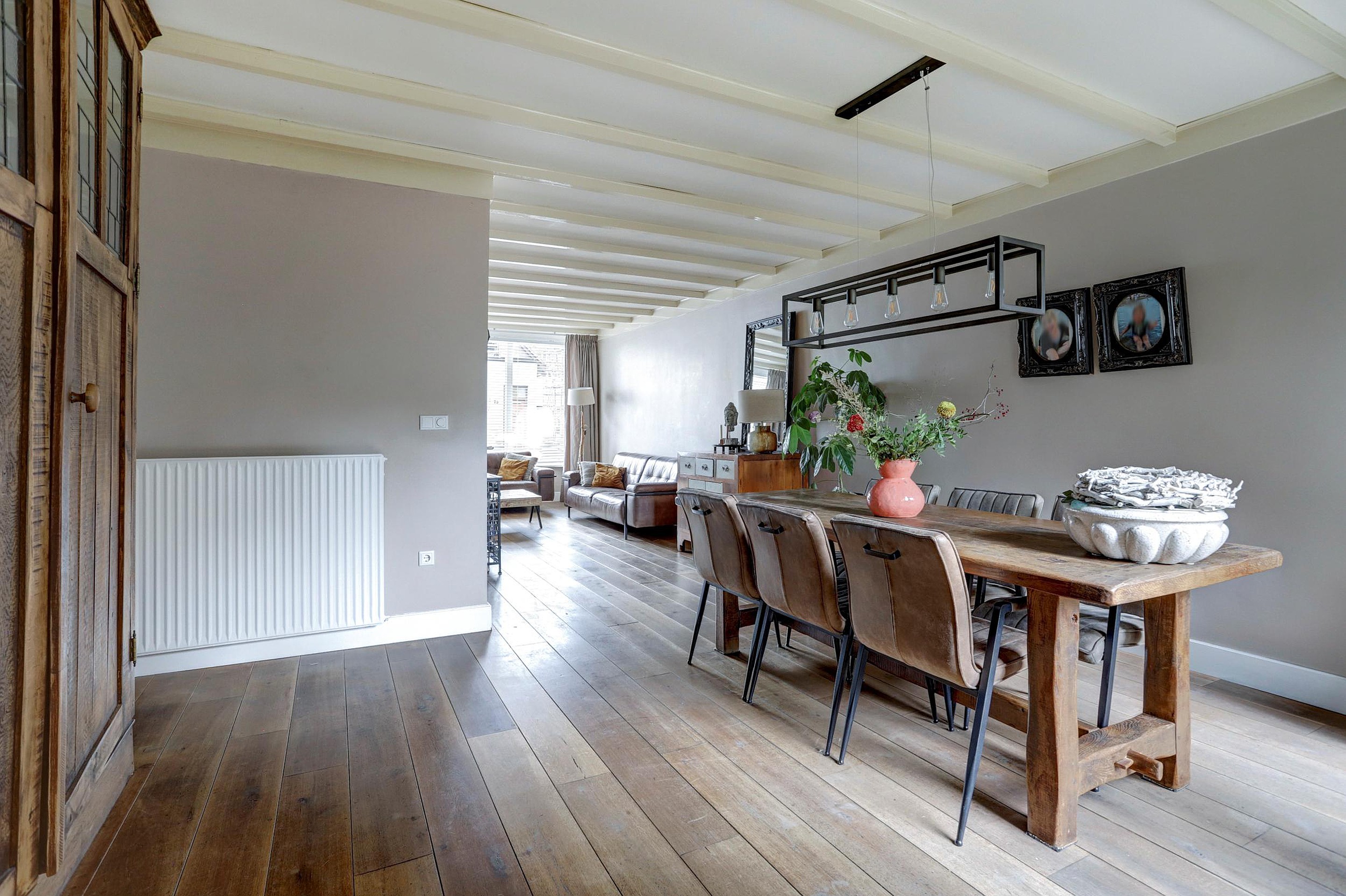 Door de grote raampartijen is er voldoende licht binnen. De woning is grotendeels gemoderniseerd. Het karakter van deze woning is zeker behouden. Zo is er een mooie zitkamer aan de voorzijde gemaakt. En aan achterkant is er een mooie zithoek gecreëerd. Deze kamer is voorzien van een mooie houten vloer en een balkenplafond.