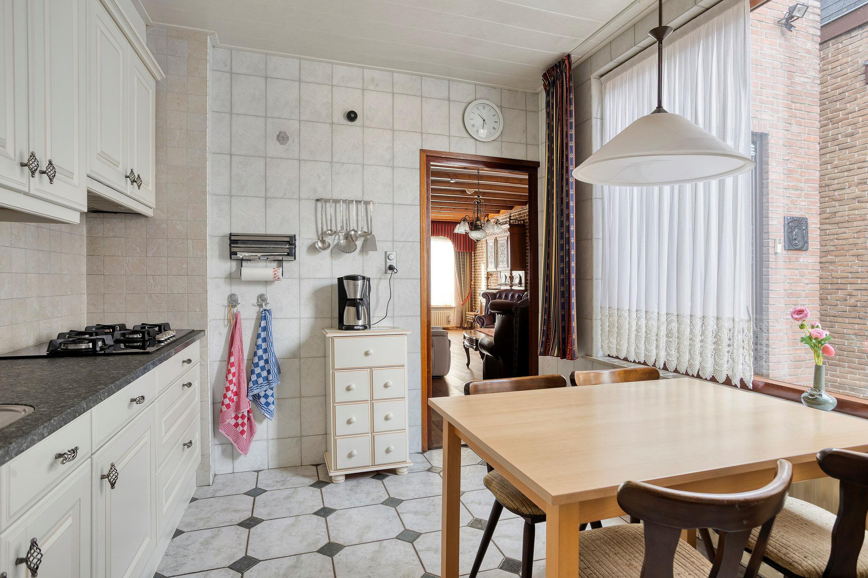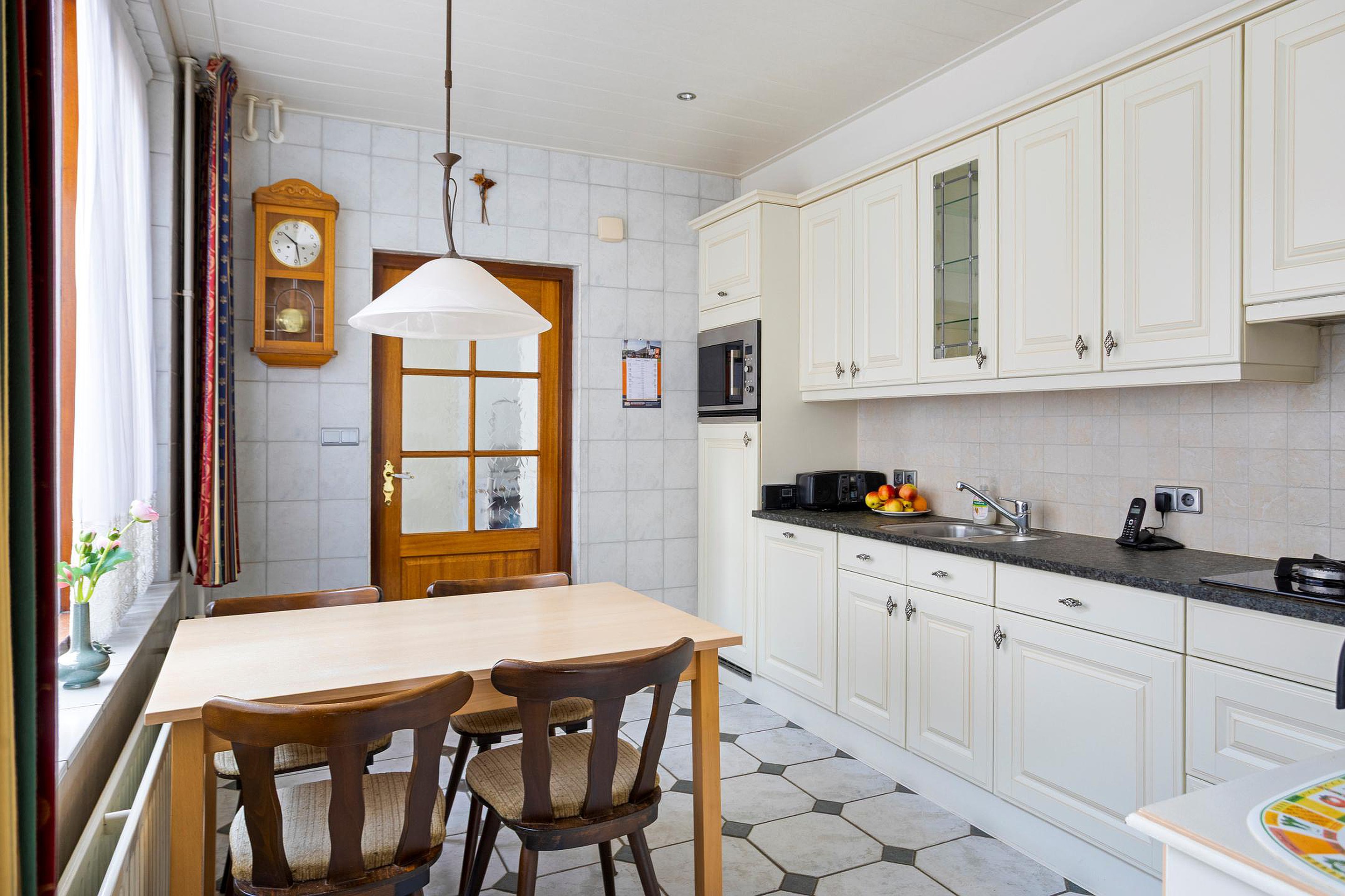 De moderne keuken is ruim opgezet en uitgerust met diverse inbouwapparatuur, waaronder een gaskookplaat, magnetron, koelkast en vaatwasser. Hier kunt u met gemak een smakelijke maaltijd bereiden.