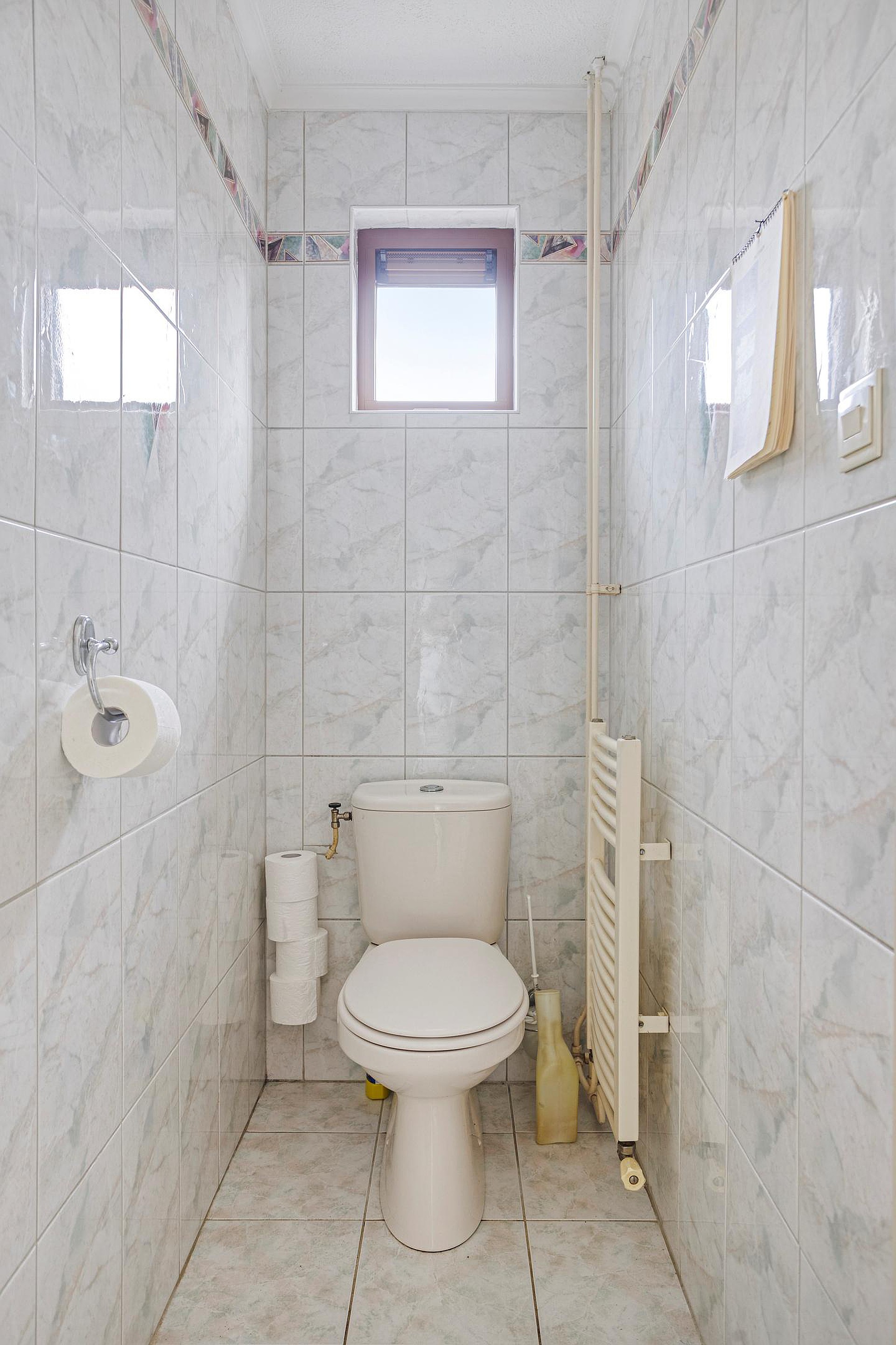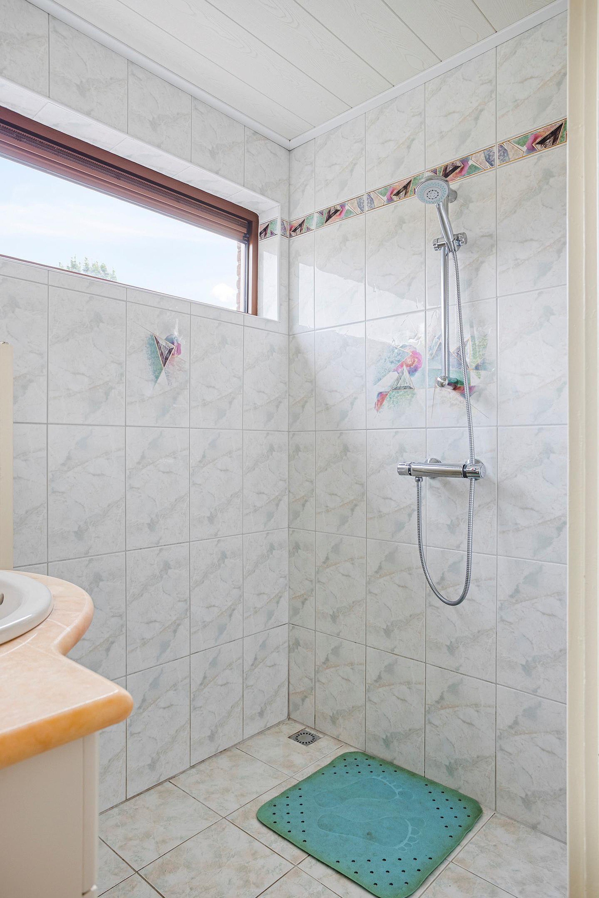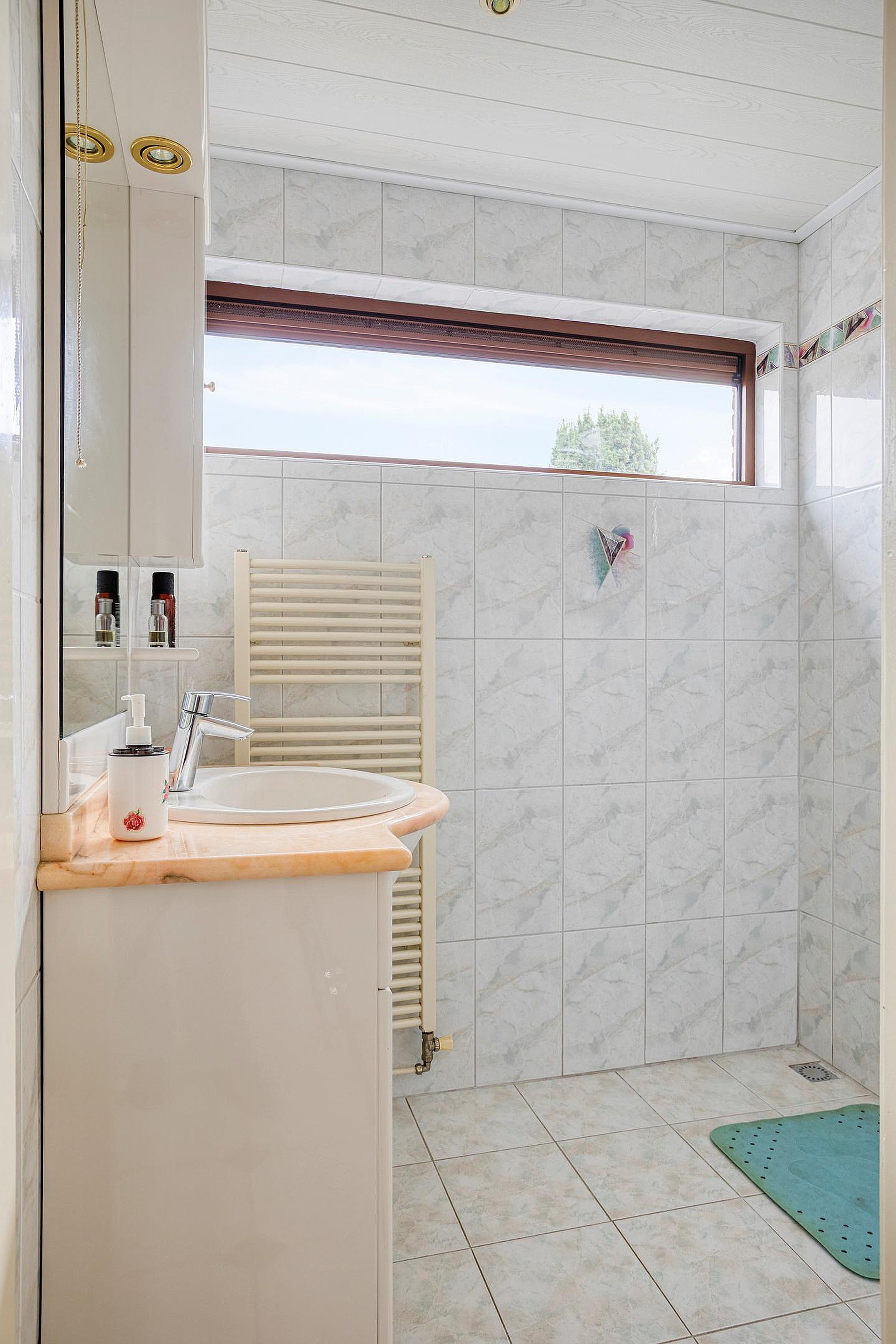 De volledig betegelde badkamer is voorzien van een wastafelmeubel, doucheruimte en designradiator. Vanuit de bijkeuken heeft u tevens directe toegang tot de achtertuin.