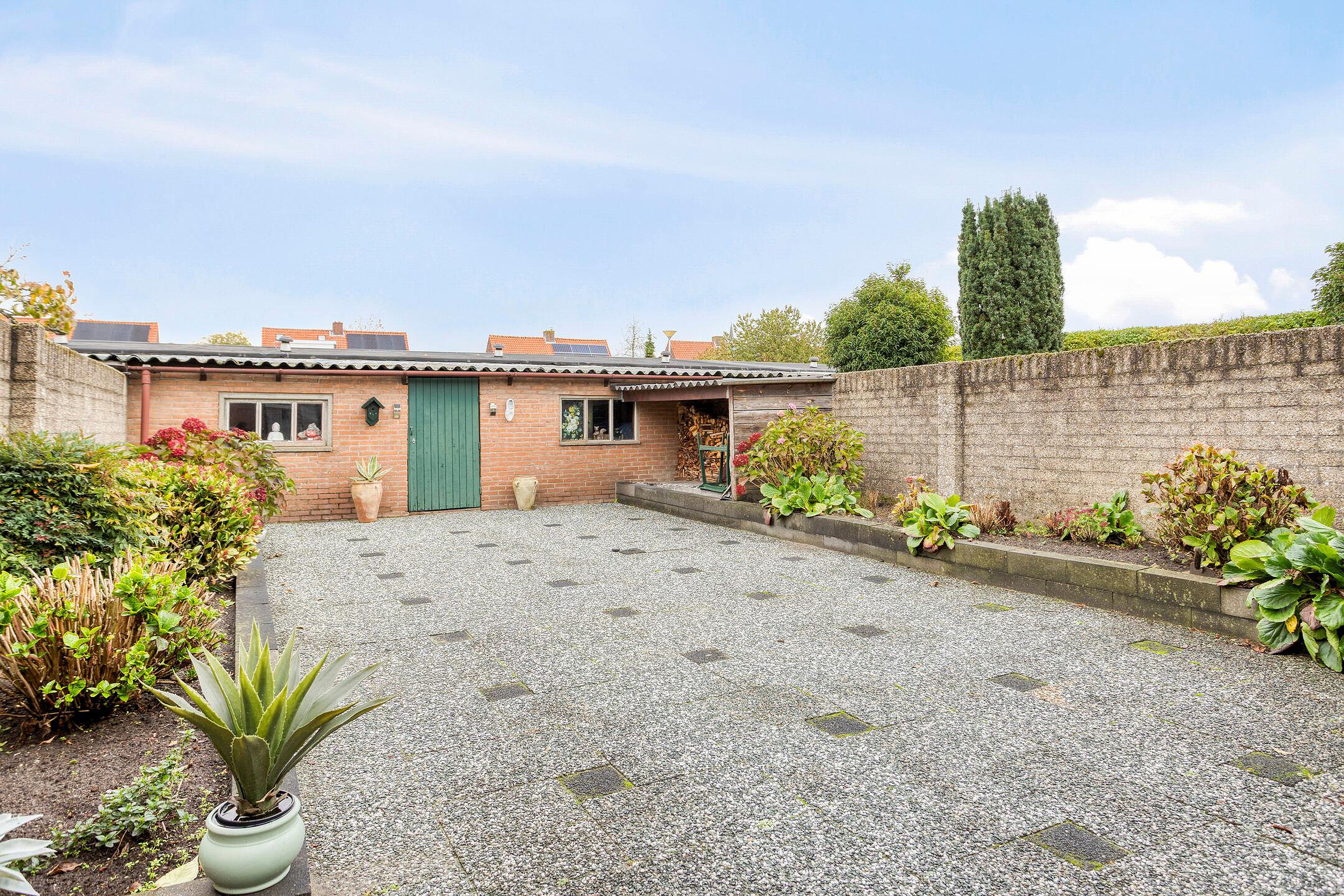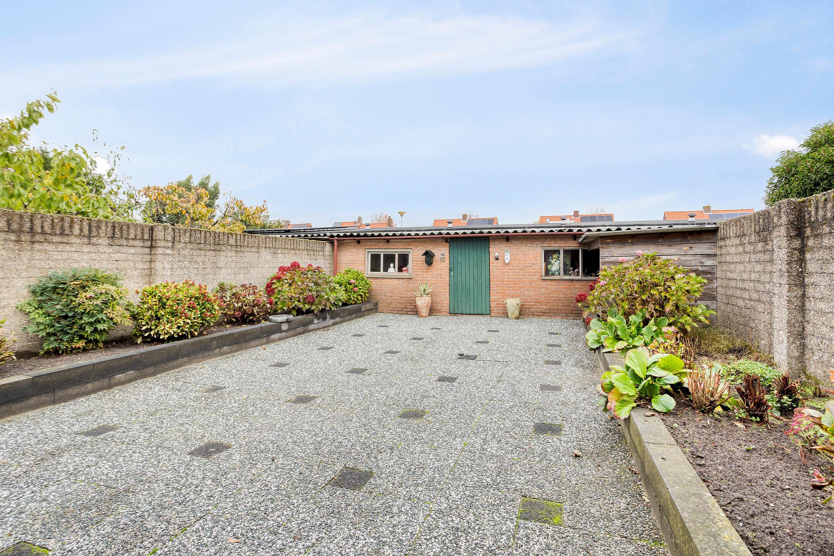 Achterin de tuin bevindt zich een grote, in spouw gebouwde stenen schuur over de volledige breedte van het perceel – ideaal voor opslag, hobby’s of als werkruimte. Daarnaast is er een praktisch haardhouthok aanwezig.