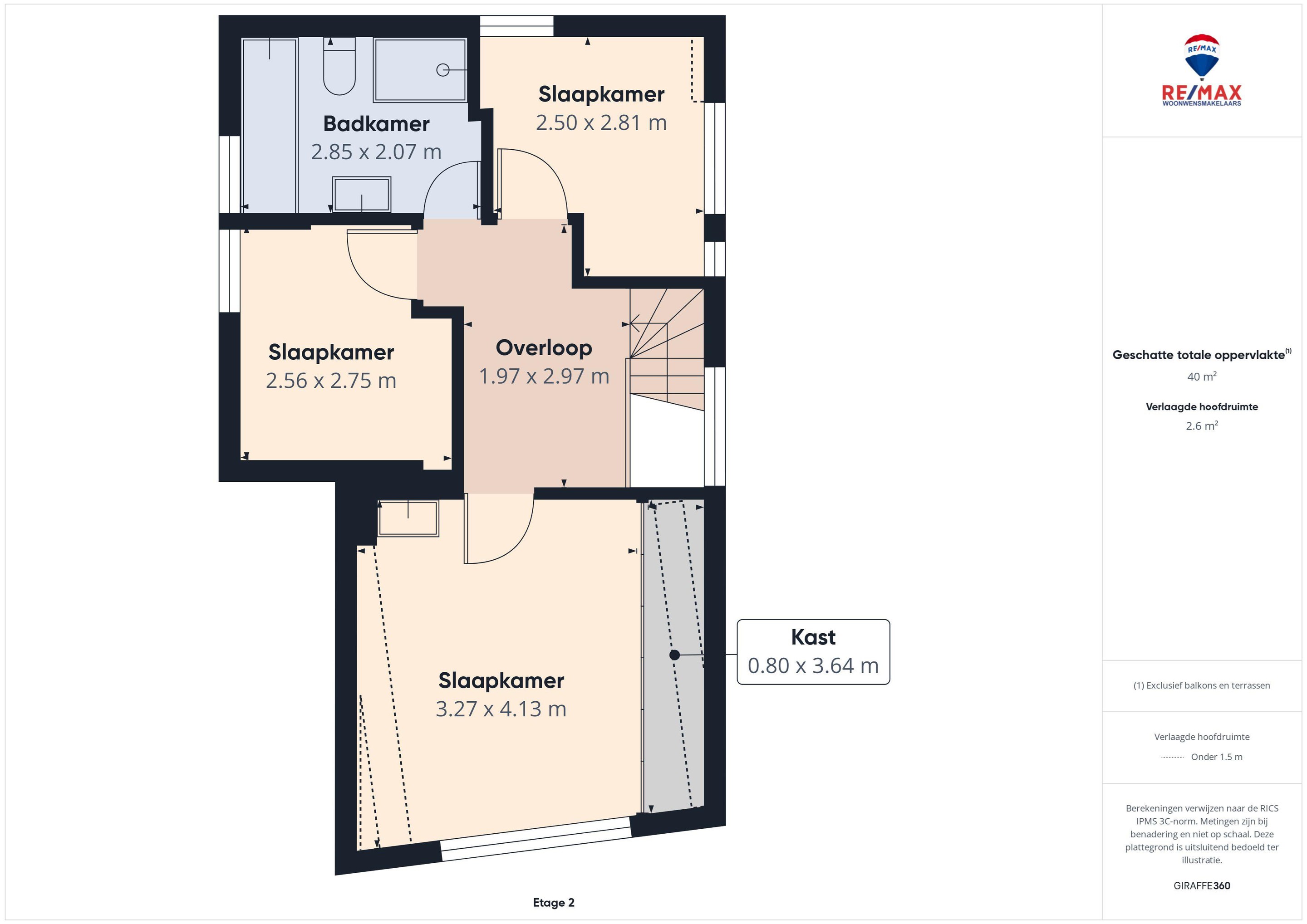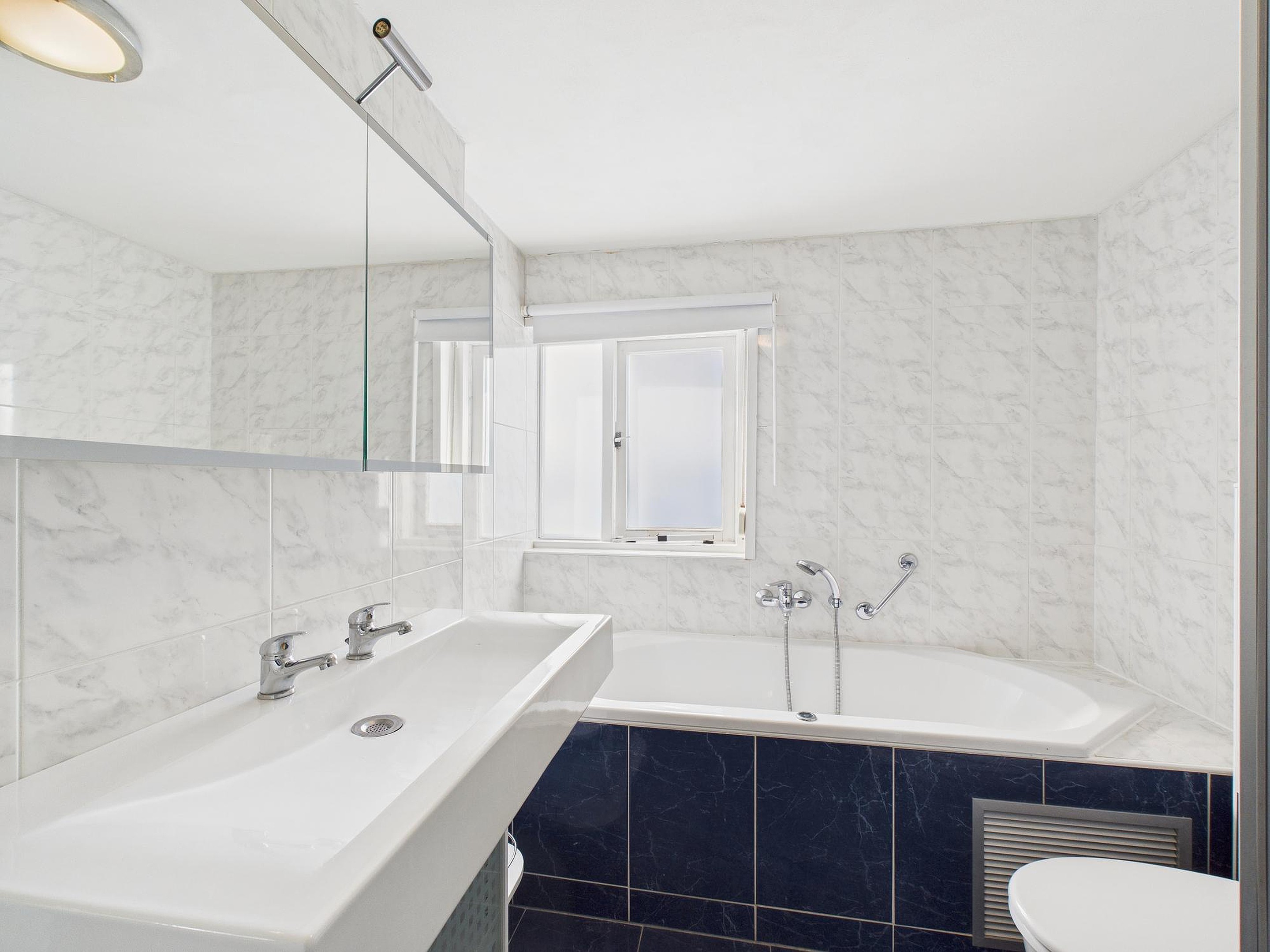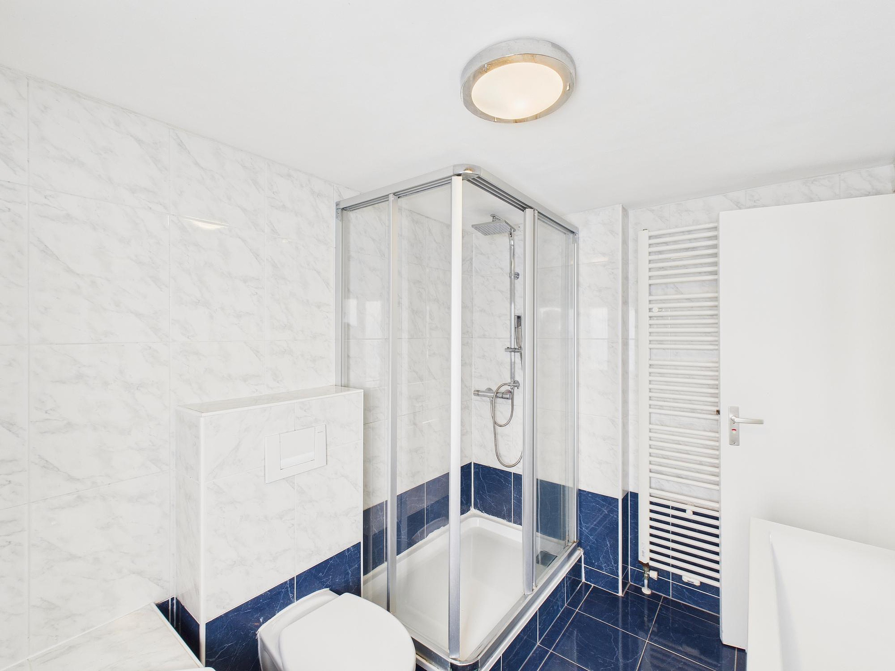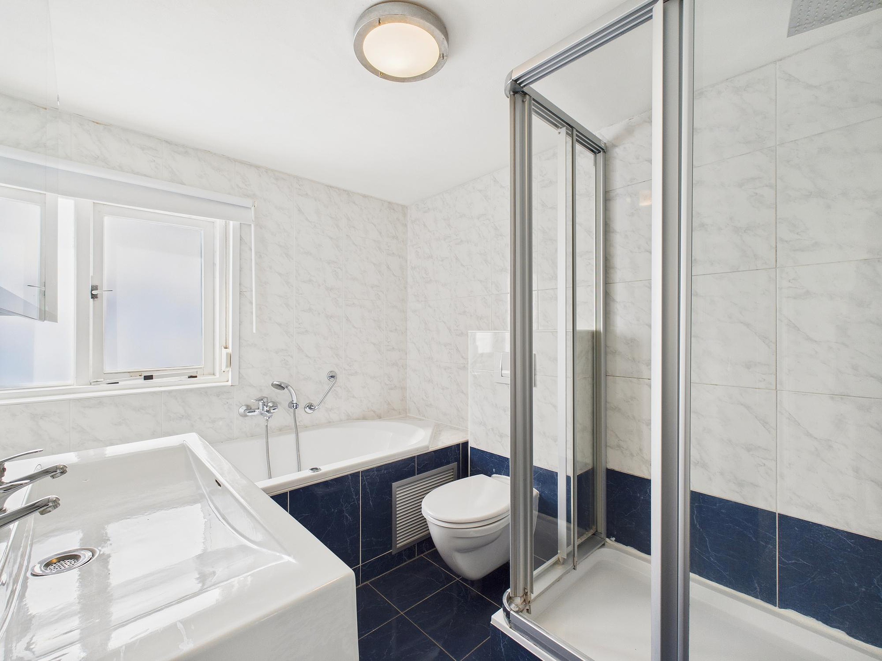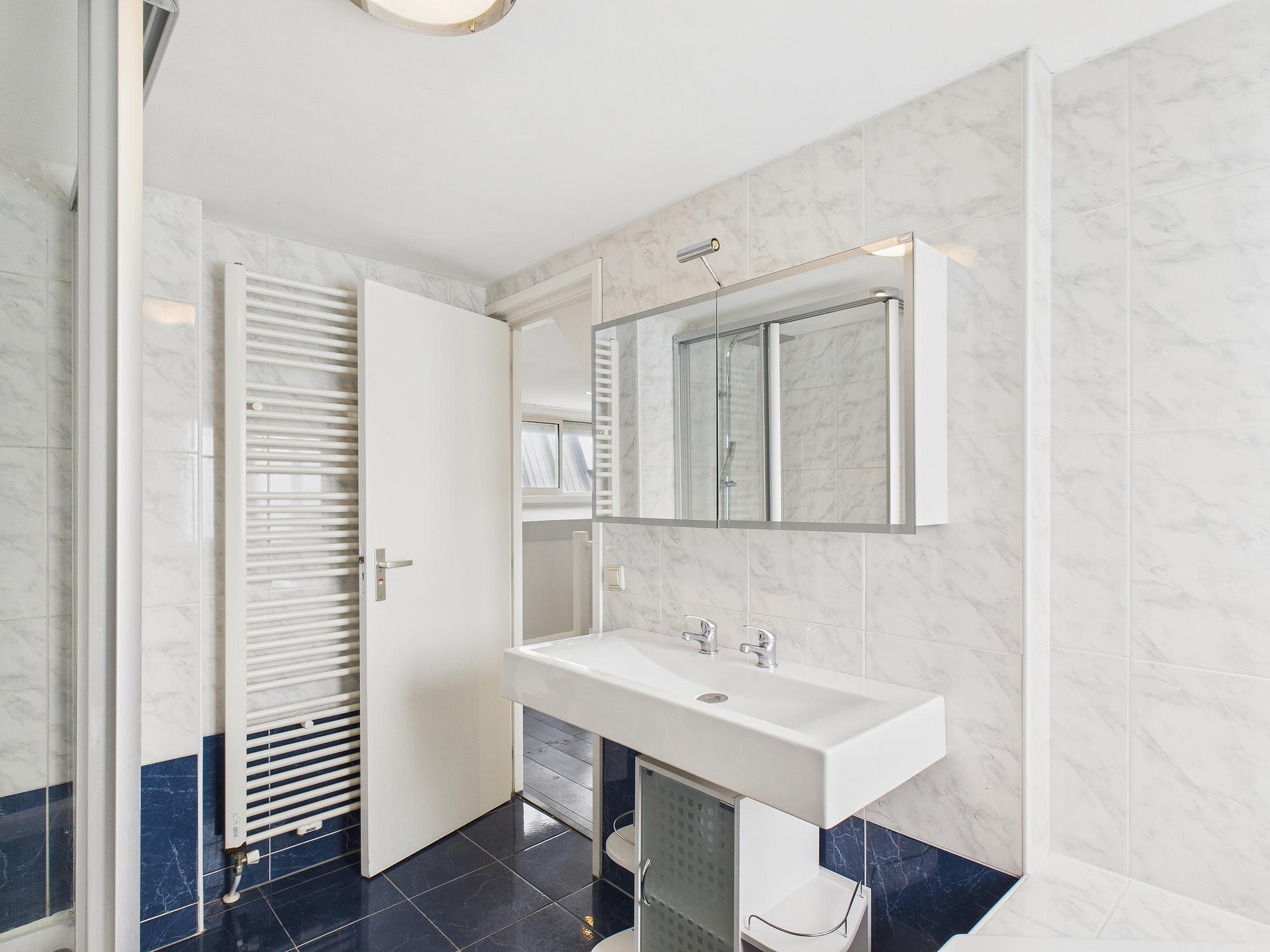 De tweede verdieping biedt nog eens drie slaapkamers. Twee knusse kamers van circa 6,5 m2 met een houten vloer en moderne afwerking, en een ruime vierde slaapkamer van circa 12,5 m2 met vaste kastenwand en wastafel. Ook de tweede badkamer is hier gesitueerd en is keurig betegeld. Je vindt er een ligbad, aparte douche, dubbele wastafel en een derde toilet.
