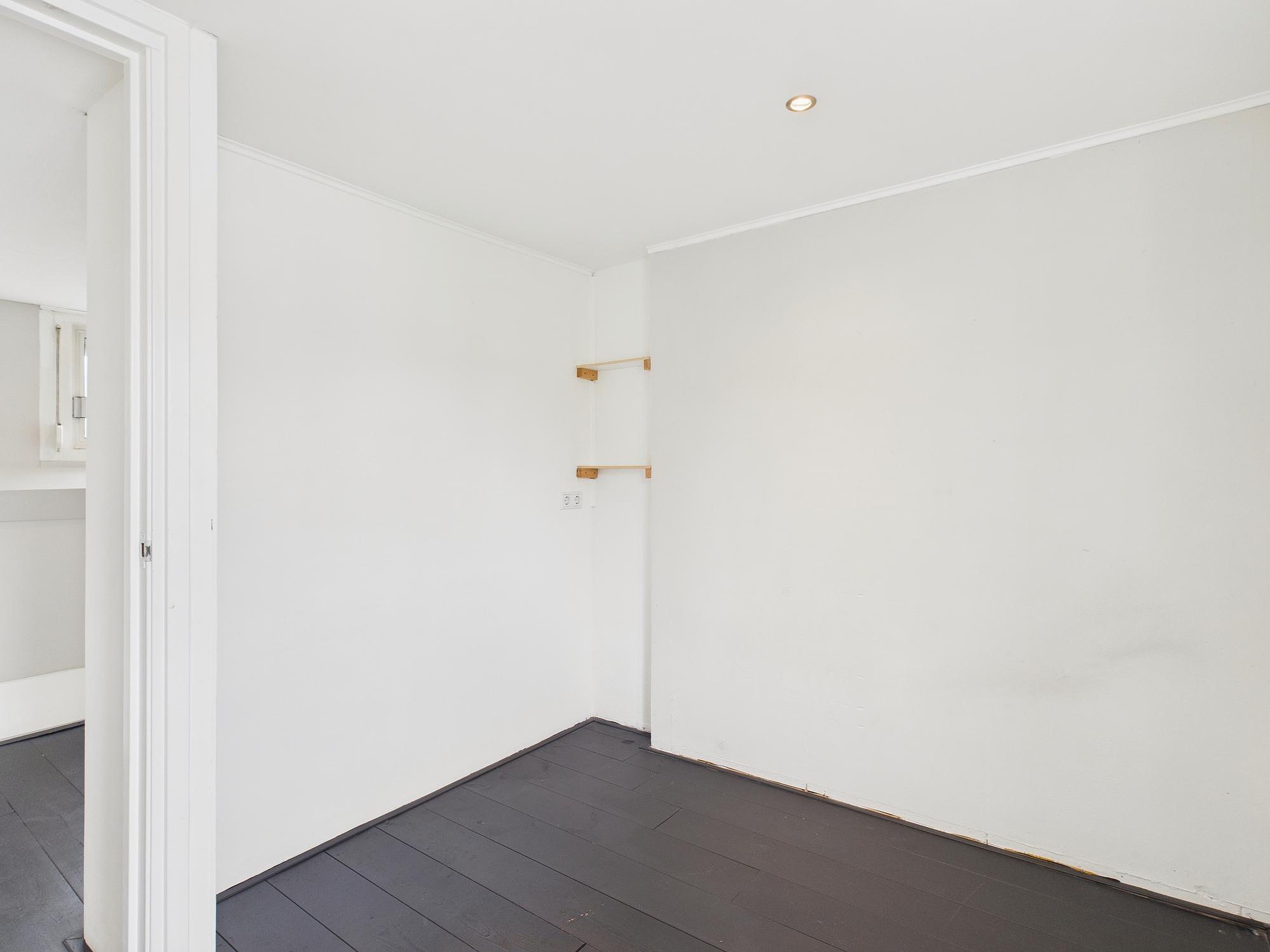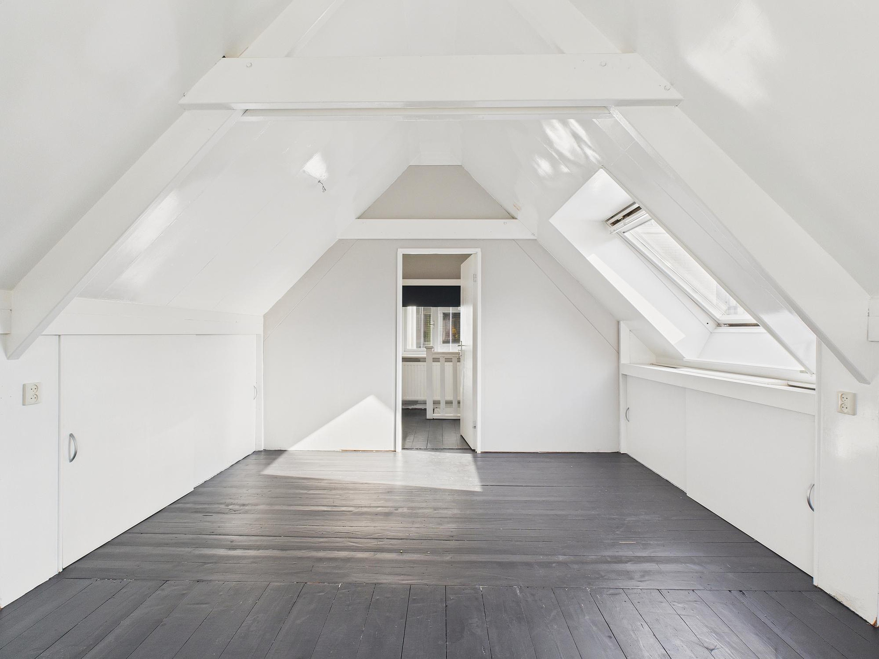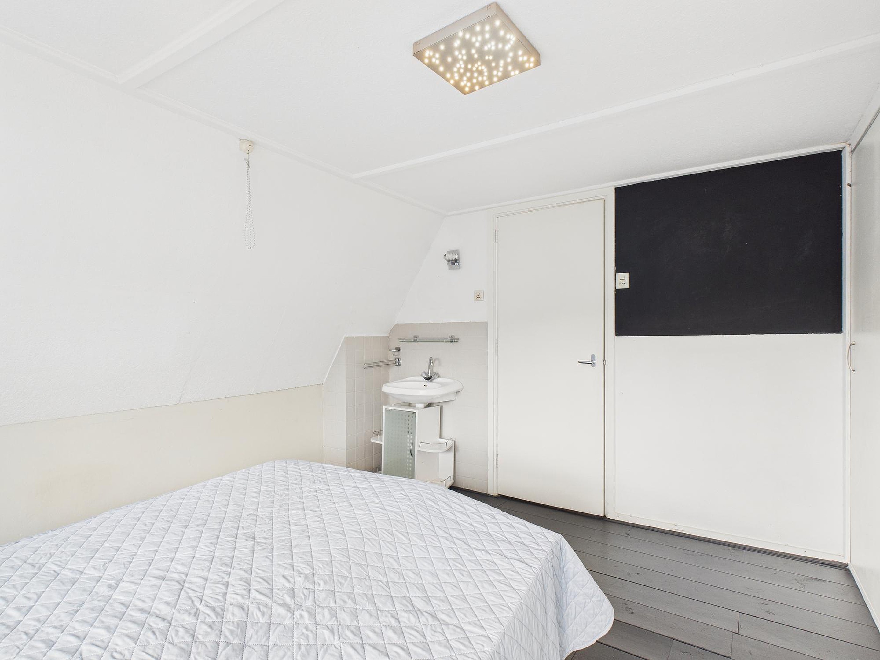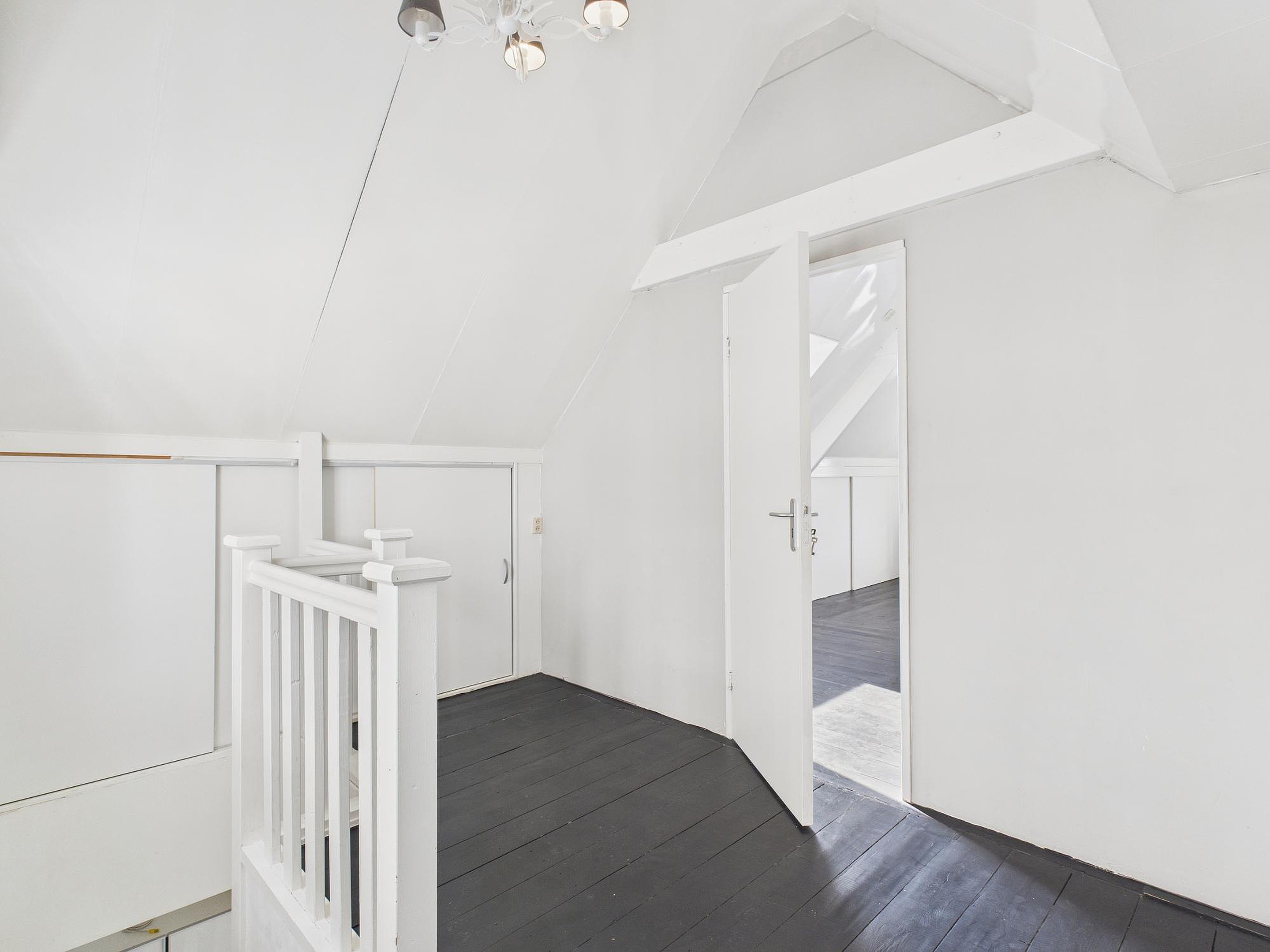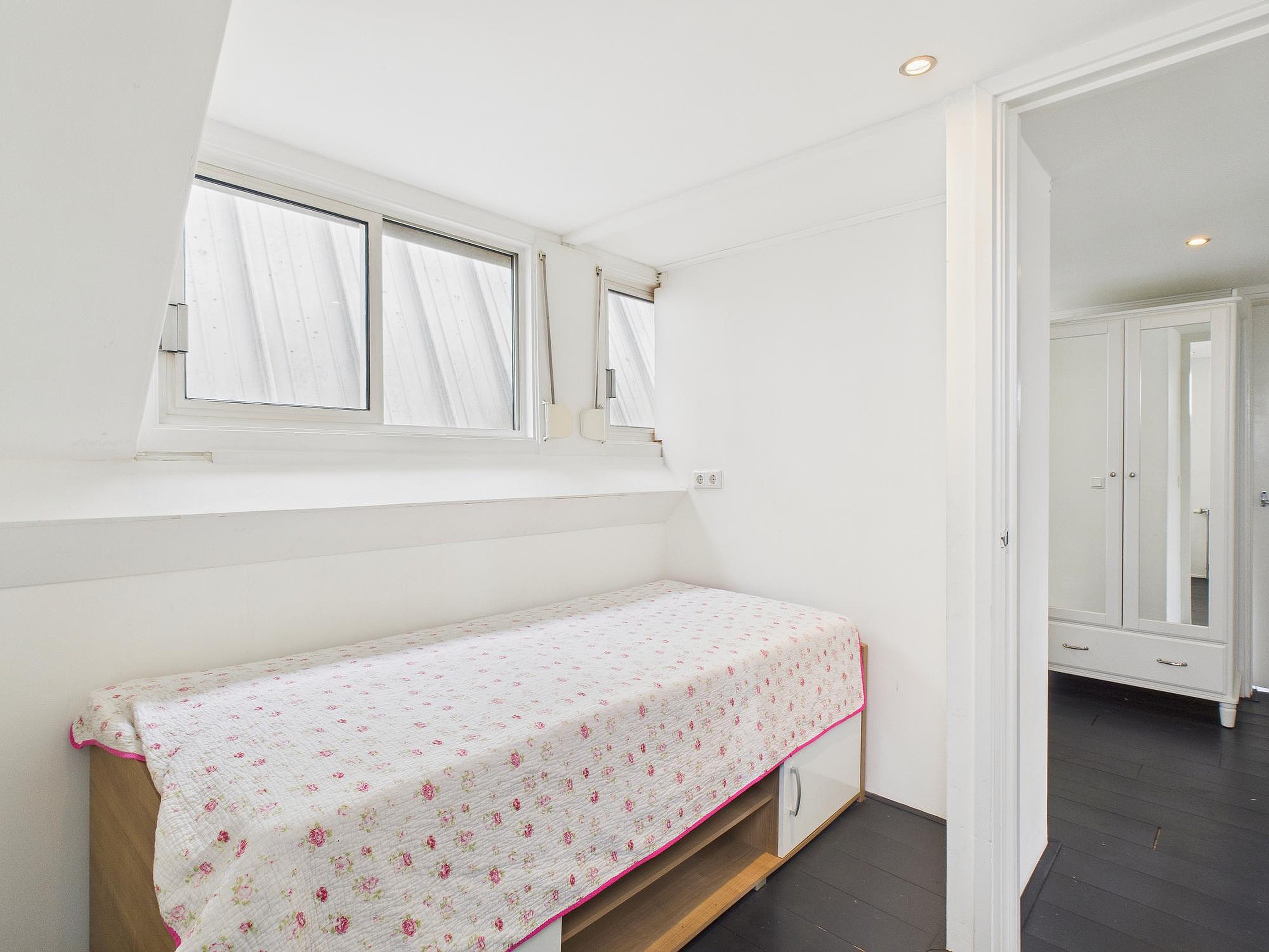 In deze ruimte van woonkamer en keuken is er een betegelde toiletruimte met fonteintje. Vanuit de tussenkamer, die ook nog als fijne werkplek kan dienen, stap je zo het zonnige dakterras op van circa 10 m2 – een heerlijke plek voor een kop koffie of een borrel in de buitenlucht. Tot slot vind je op deze verdieping een ruime slaapkamer met houten vloer, dakraam en vaste kastruimte.