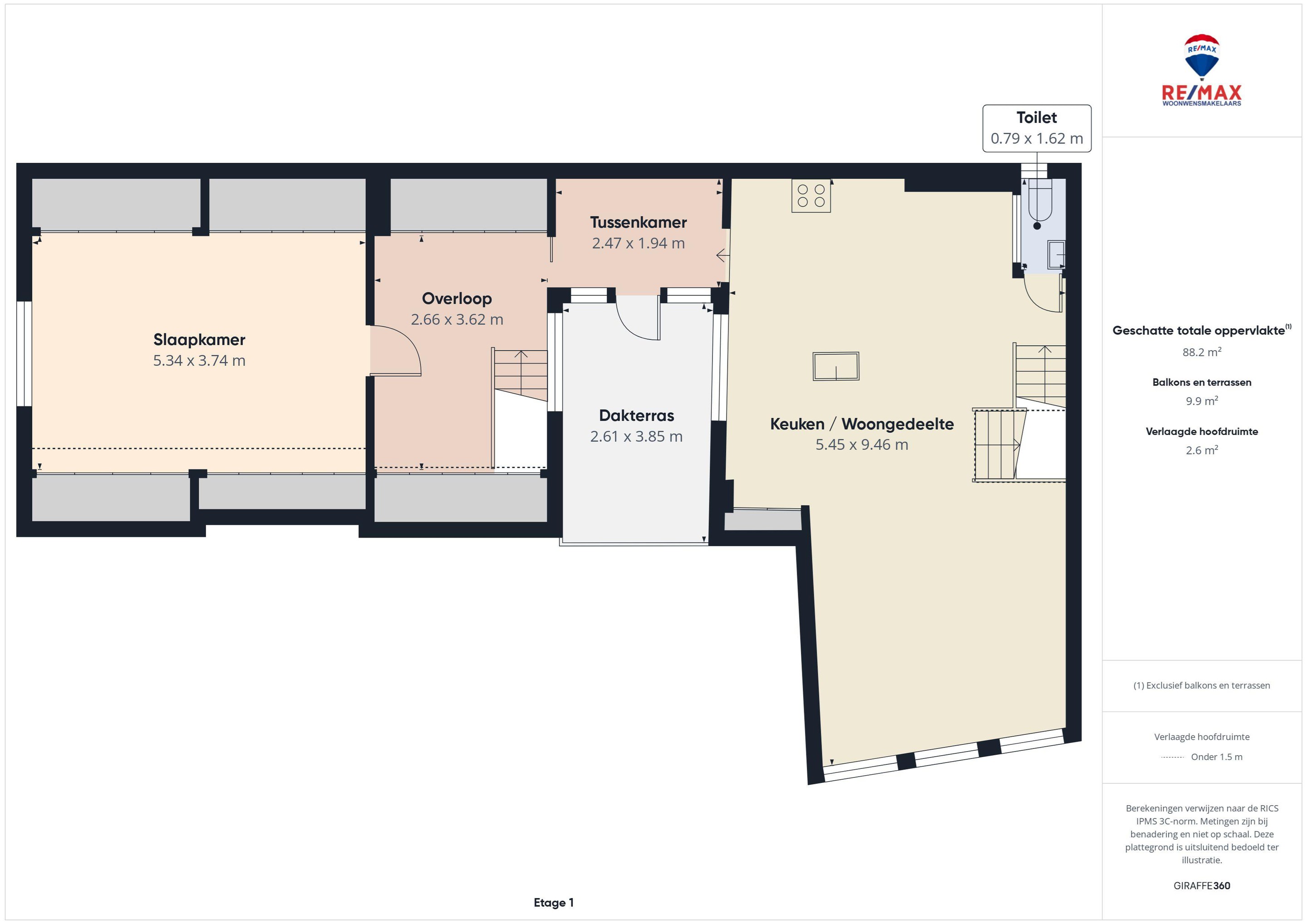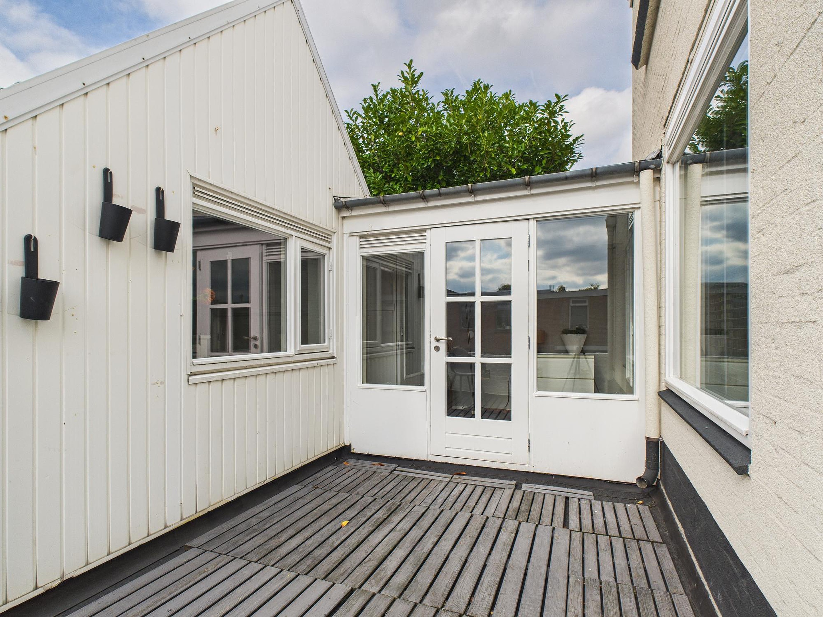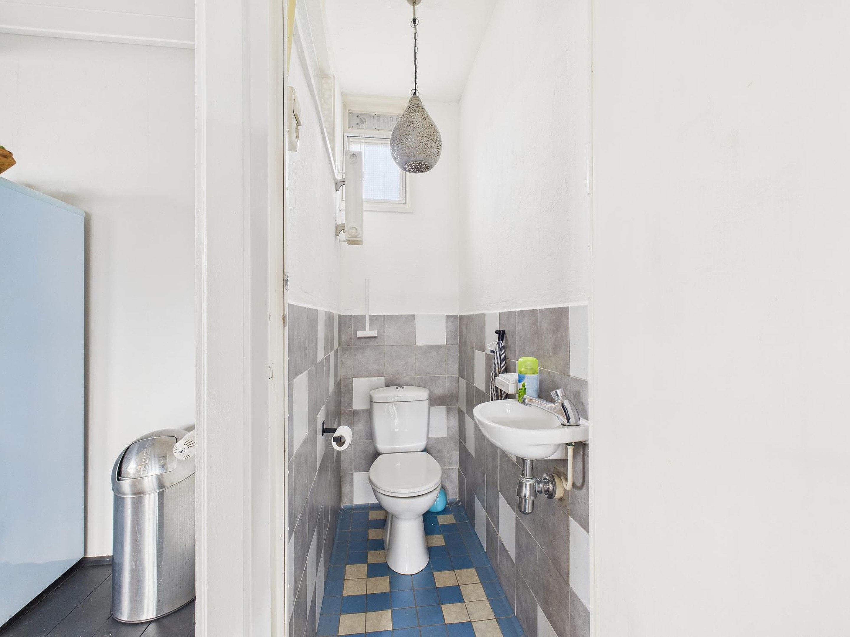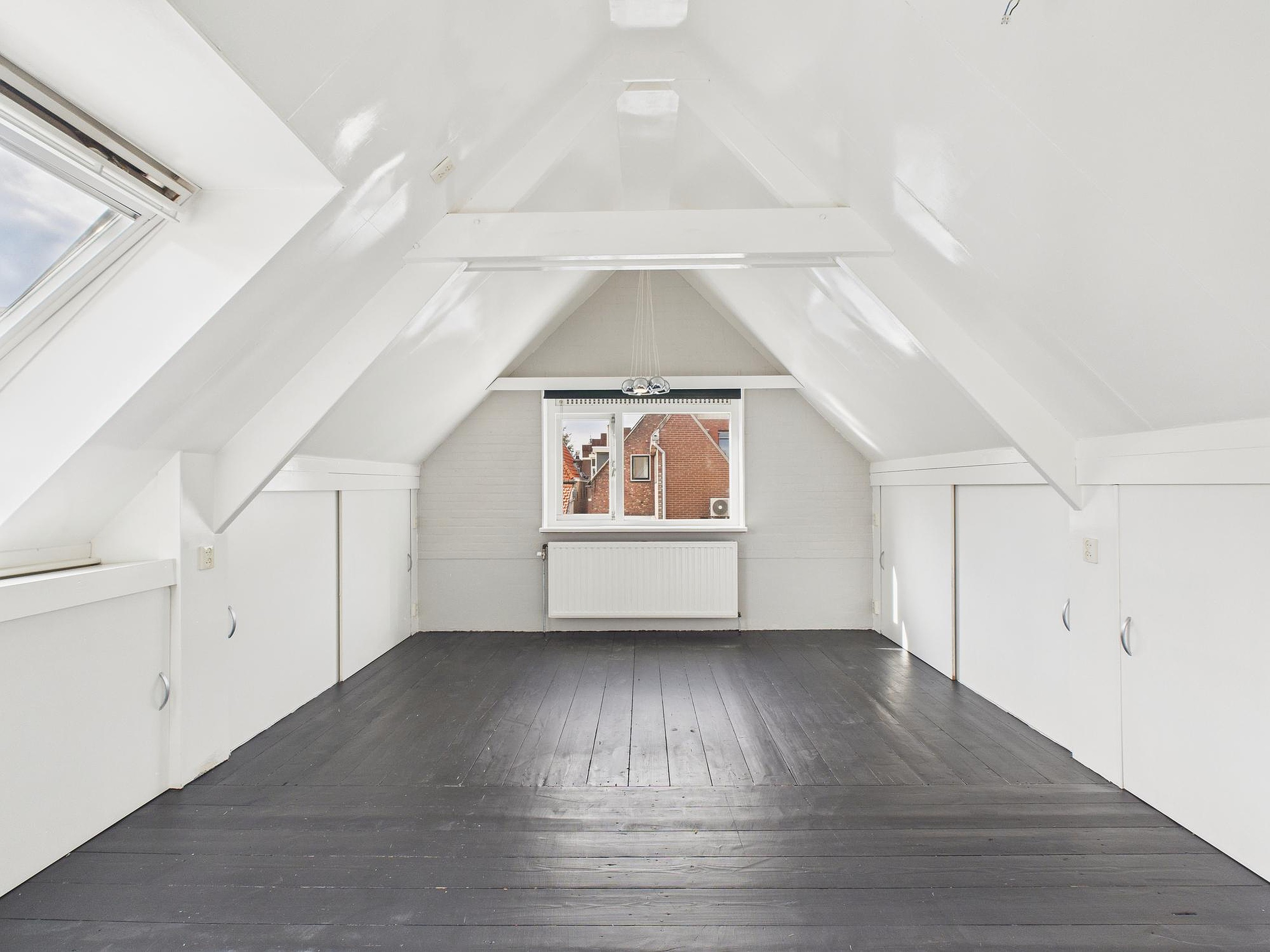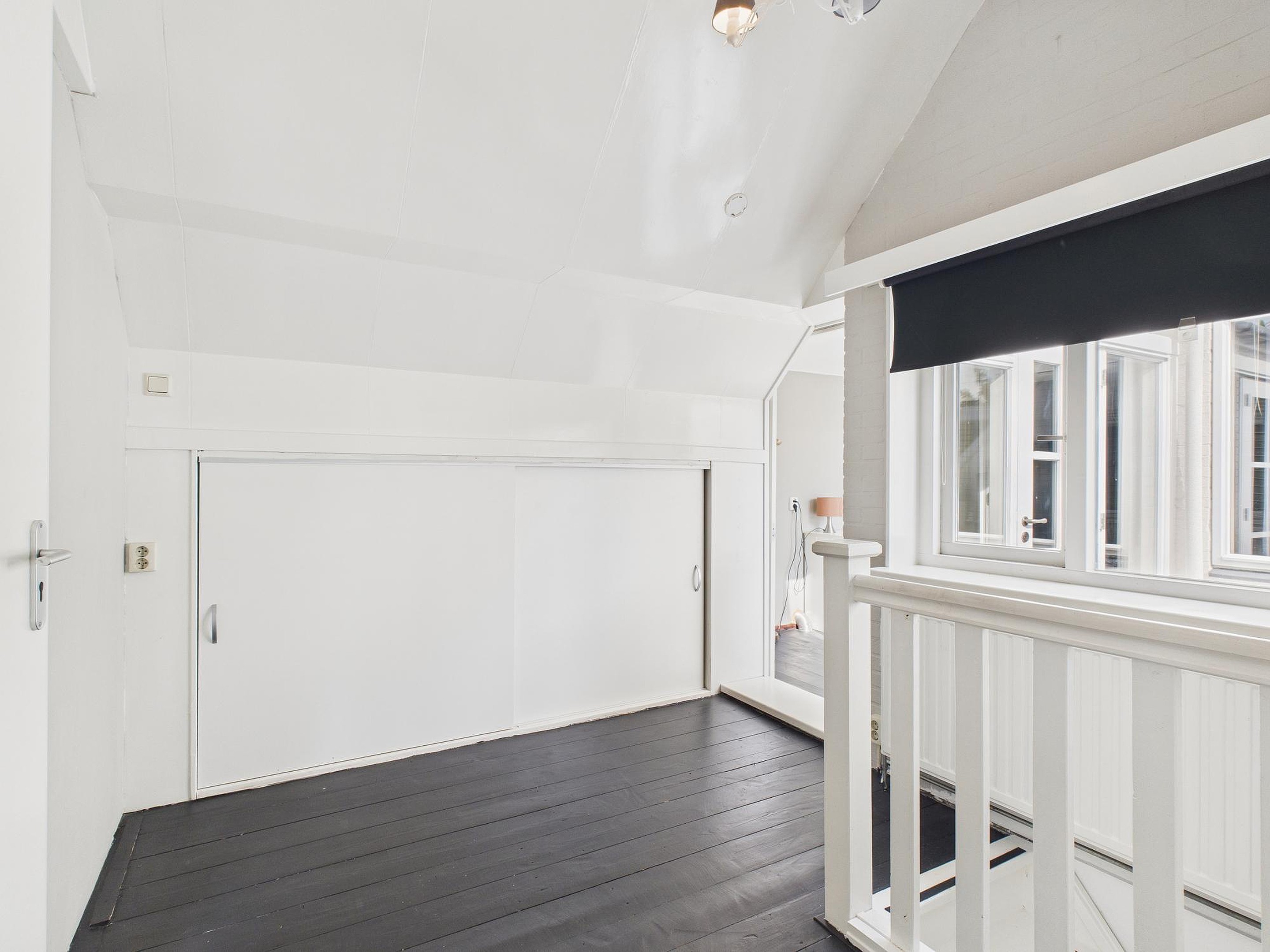 In deze ruimte van woonkamer en keuken is er een betegelde toiletruimte met fonteintje. Vanuit de tussenkamer, die ook nog als fijne werkplek kan dienen, stap je zo het zonnige dakterras op van circa 10 m2 – een heerlijke plek voor een kop koffie of een borrel in de buitenlucht. Tot slot vind je op deze verdieping een ruime slaapkamer met houten vloer, dakraam en vaste kastruimte.