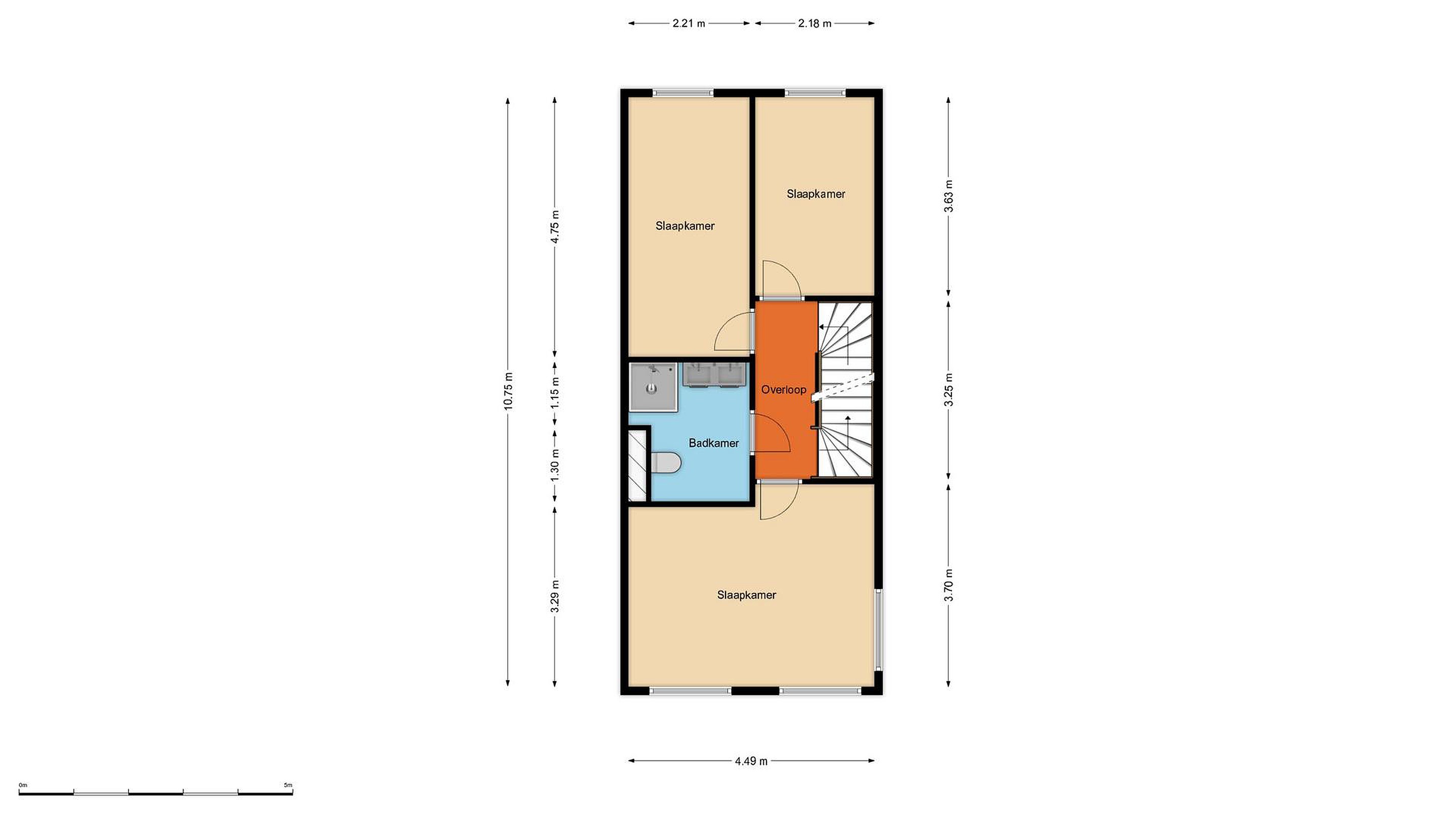 Op de eerste verdieping bevinden zich drie ruime slaapkamers en een nette badkamer, bereikbaar via de overloop.