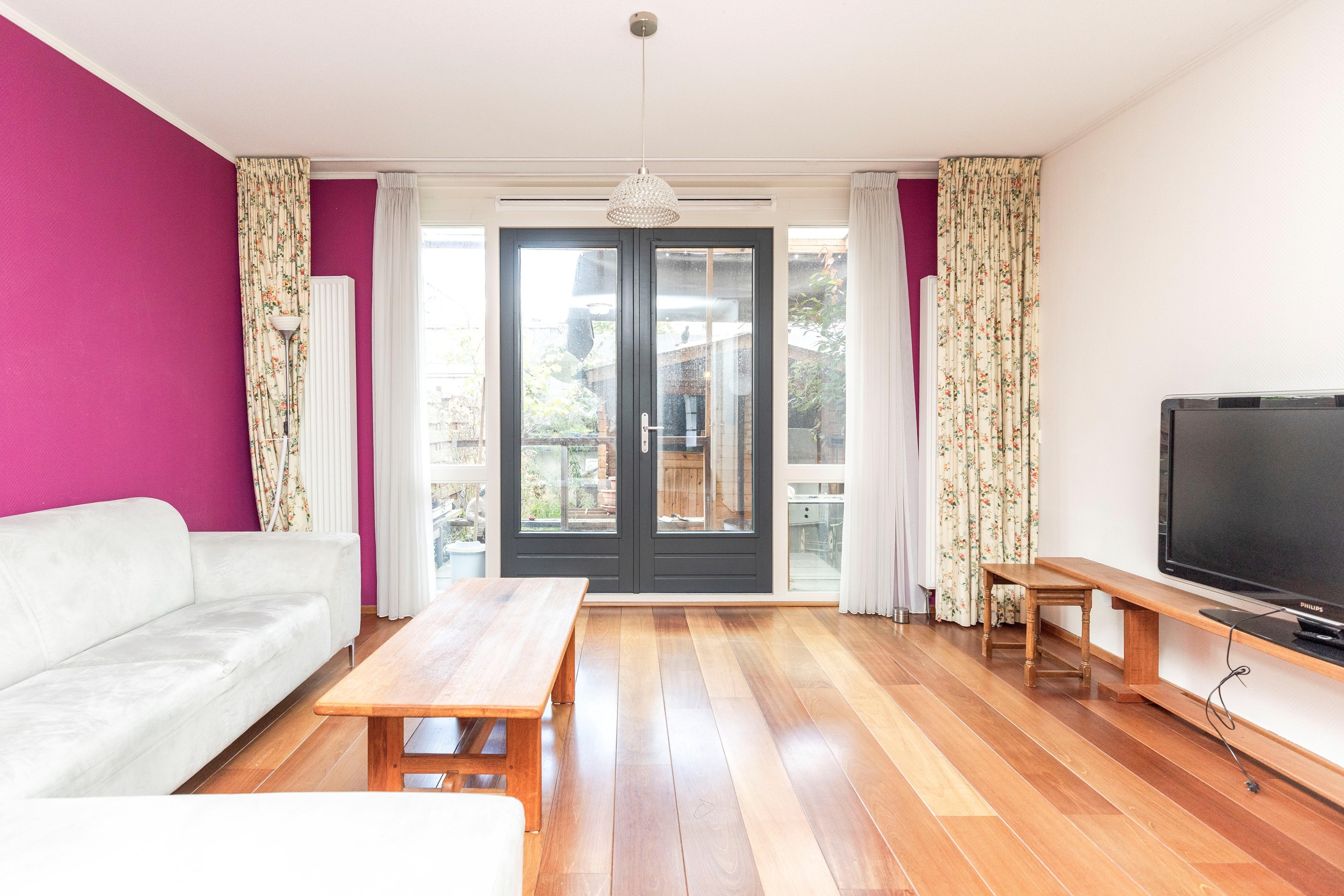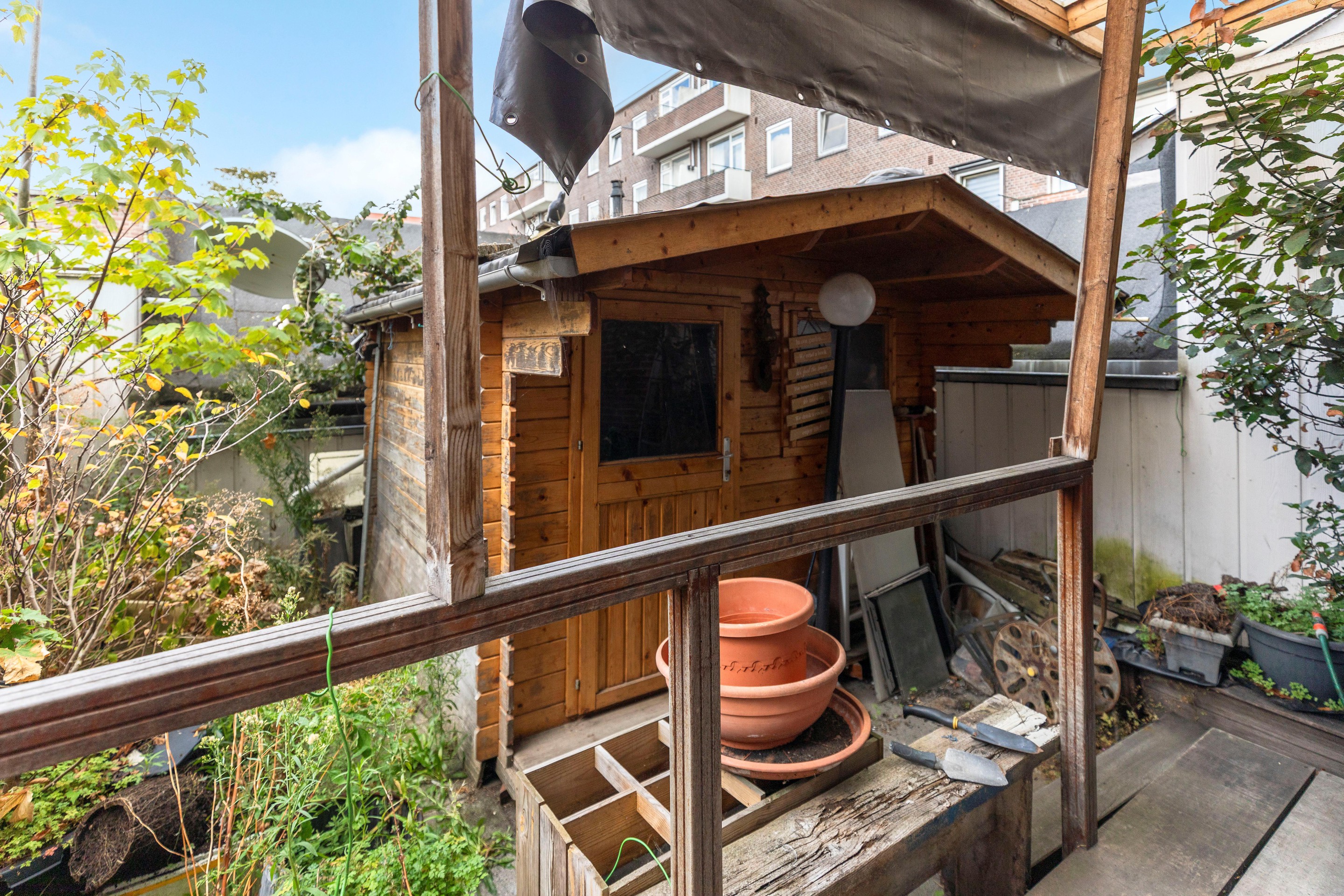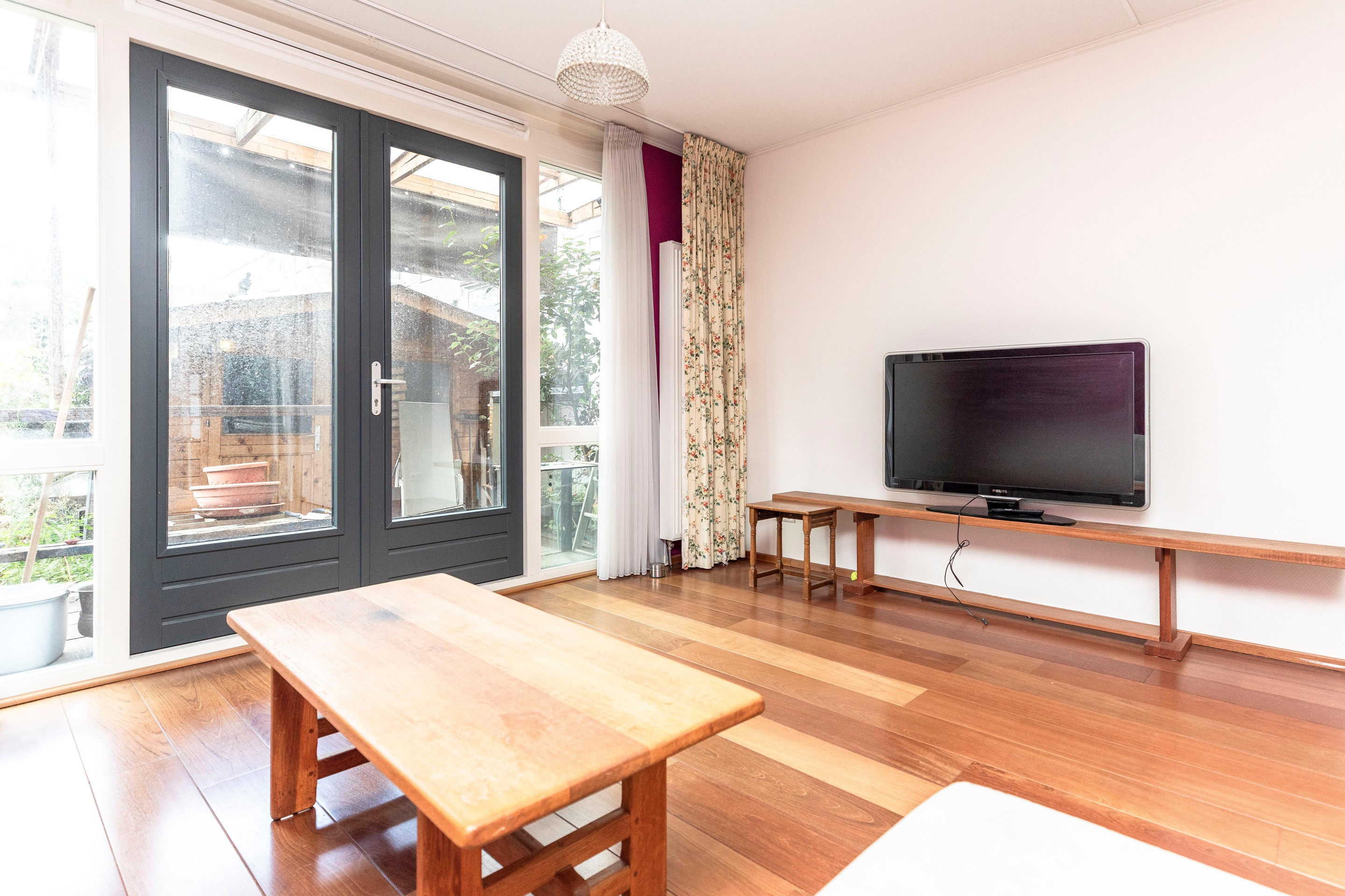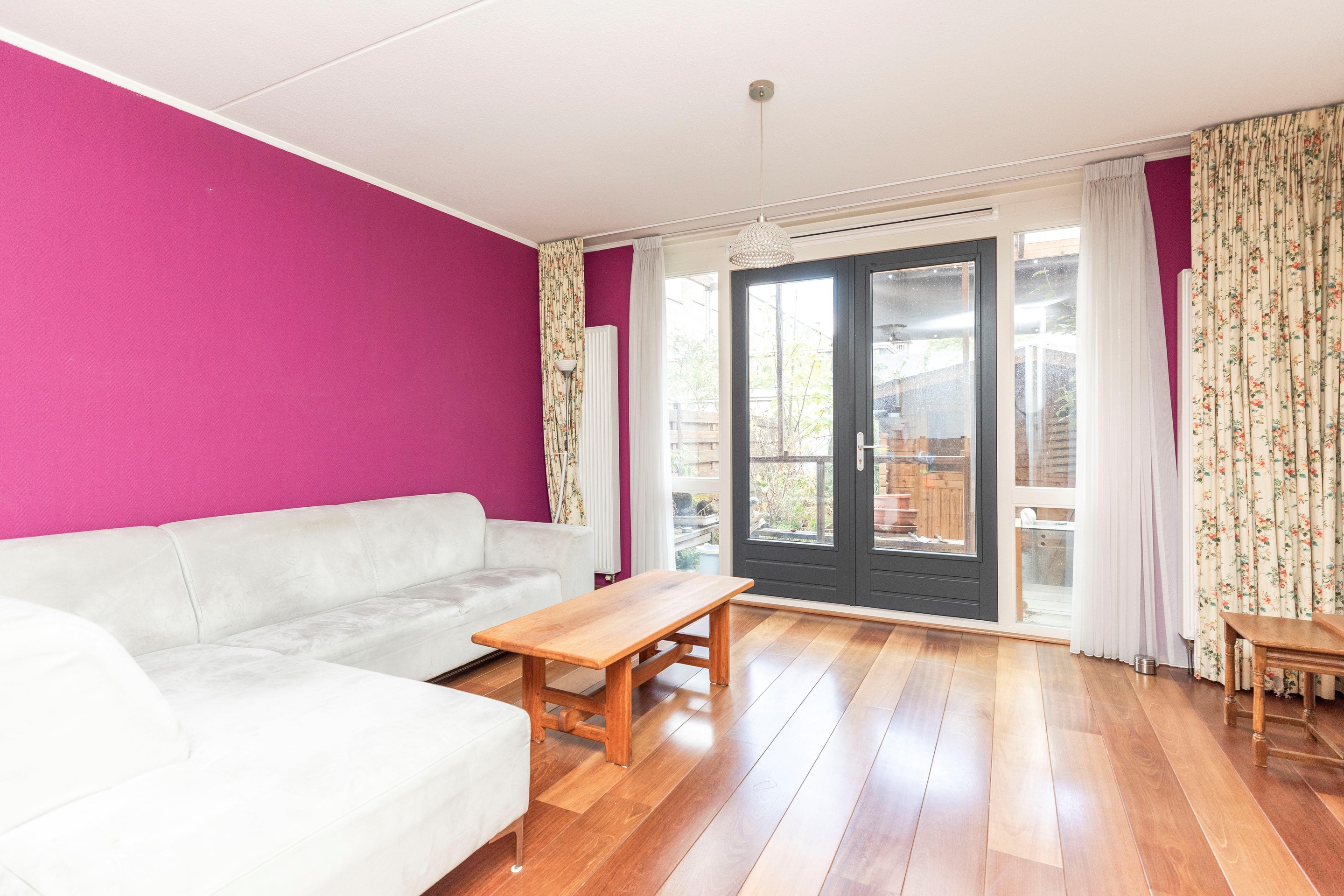 De woonkamer is voorzien van een fraaie houten vloer die doorgelegd is over de gehele woning en direct zorgt voor een warme en moderne uitstraling. De woonkamer heeft middels openslaande deuren naar de achtertuin. De tuin is gelegen op het noordwesten. Een heerlijke plek om buiten te genieten. Achterin bevindt zich een praktische schuur, en aan de voorzijde beschikt de woning bovendien over een extra berging, perfect voor fietsen of extra opslag.