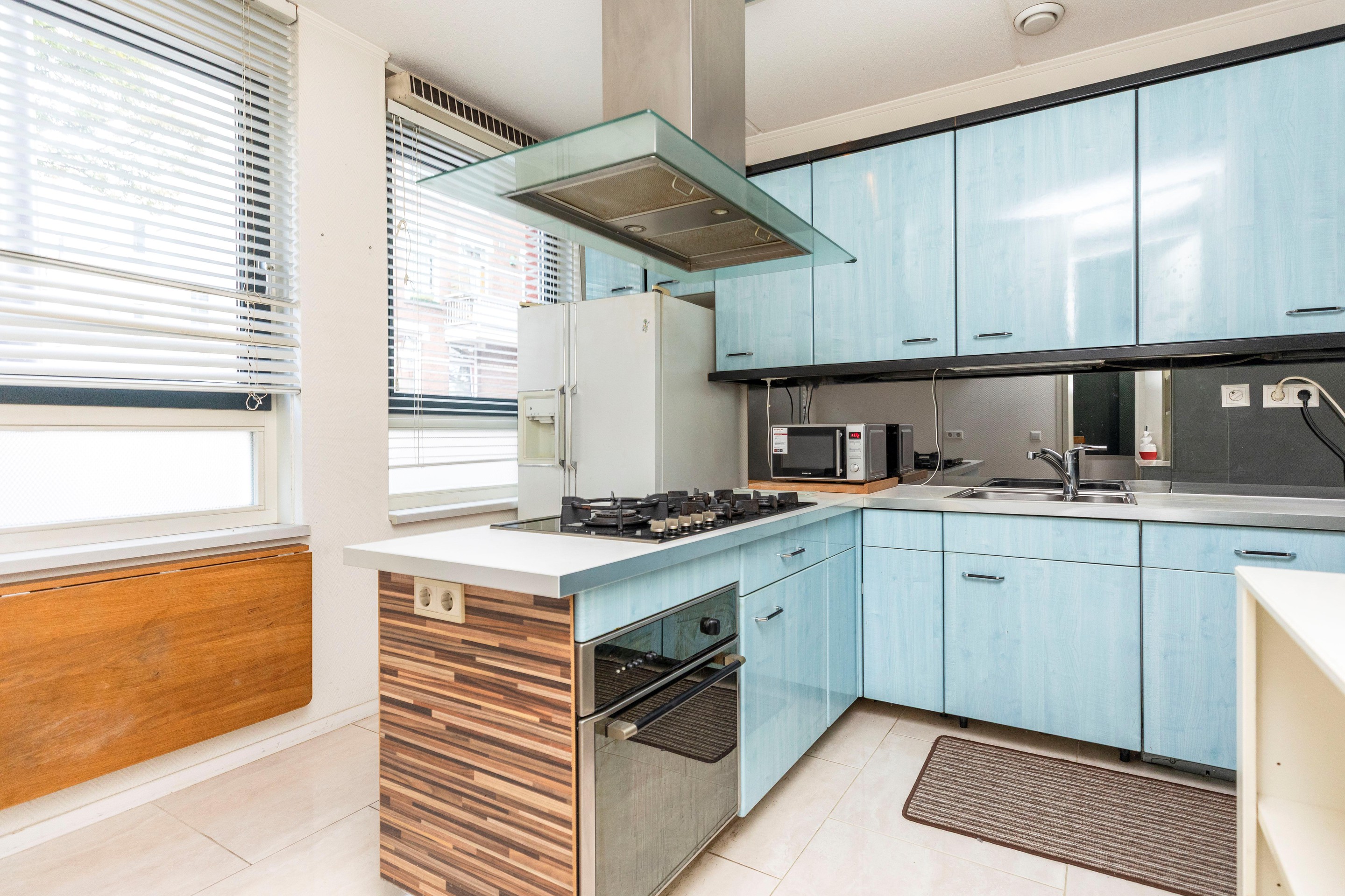 De keuken bevindt zich aan de voorzijde en is een echte eyecatcher. Dankzij de twee grote ramen komt er veel daglicht binnen en heeft u vrij uitzicht op de straat. De moderne keuken is royaal opgezet, beschikt over diverse inbouwapparatuur en biedt voldoende ruimte om als woonkeuken te gebruiken. Een gezellige plek om samen te koken, te eten en te genieten.