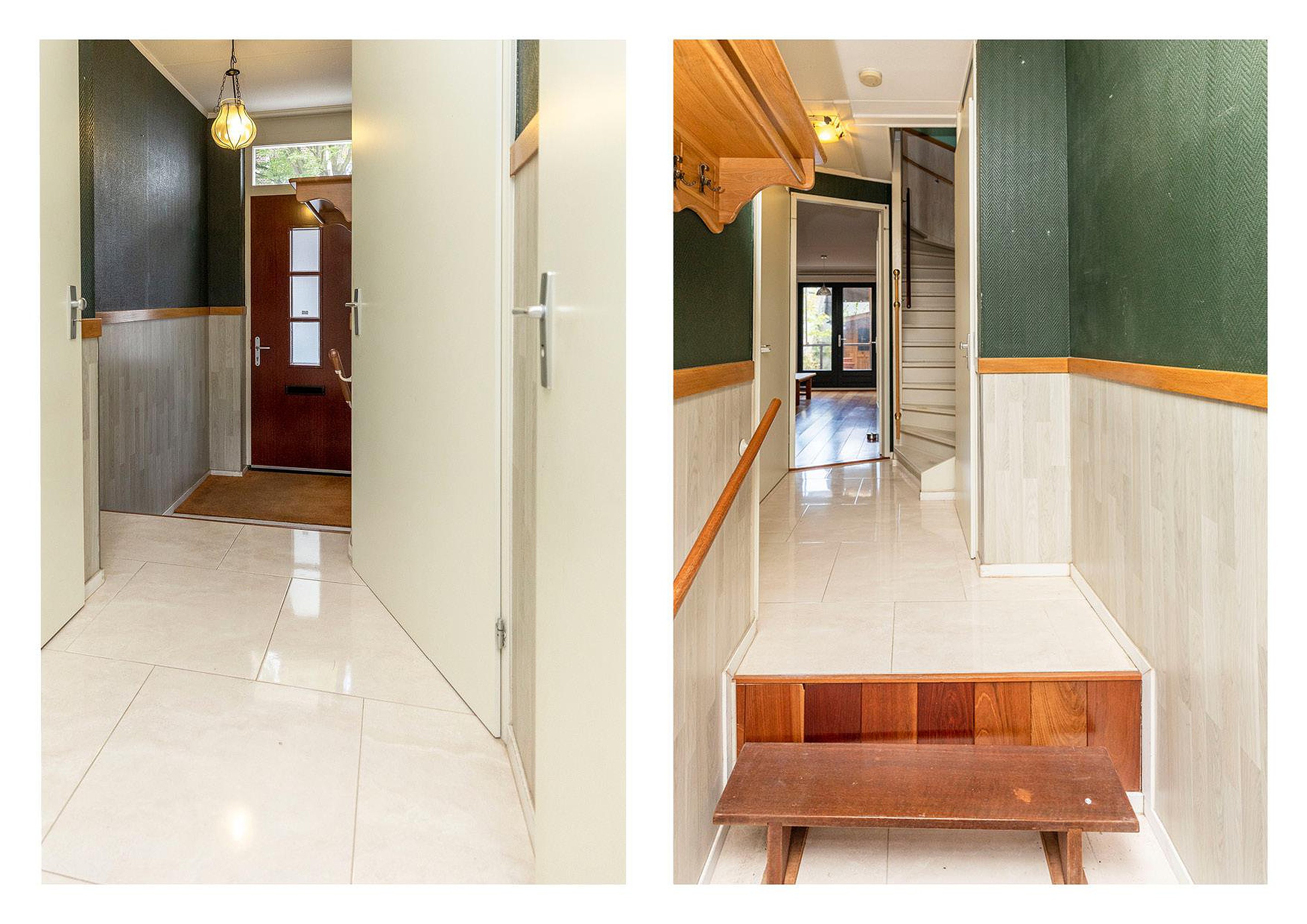 Via de entree met hoogglans stenen vloer, die stijlvol doorloopt naar de keuken, bereikt u de ruime, lichte woonkamer aan de achterzijde.
