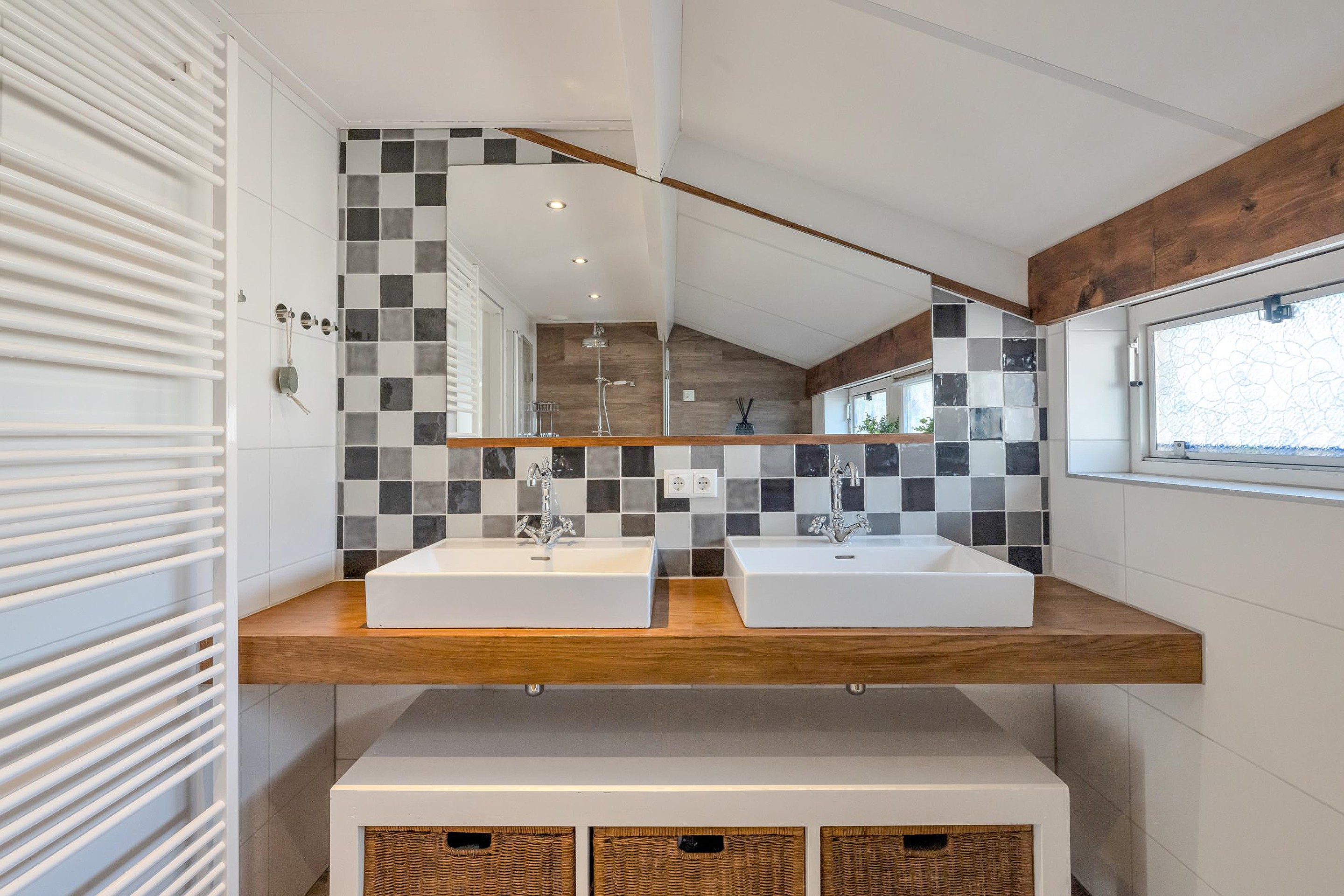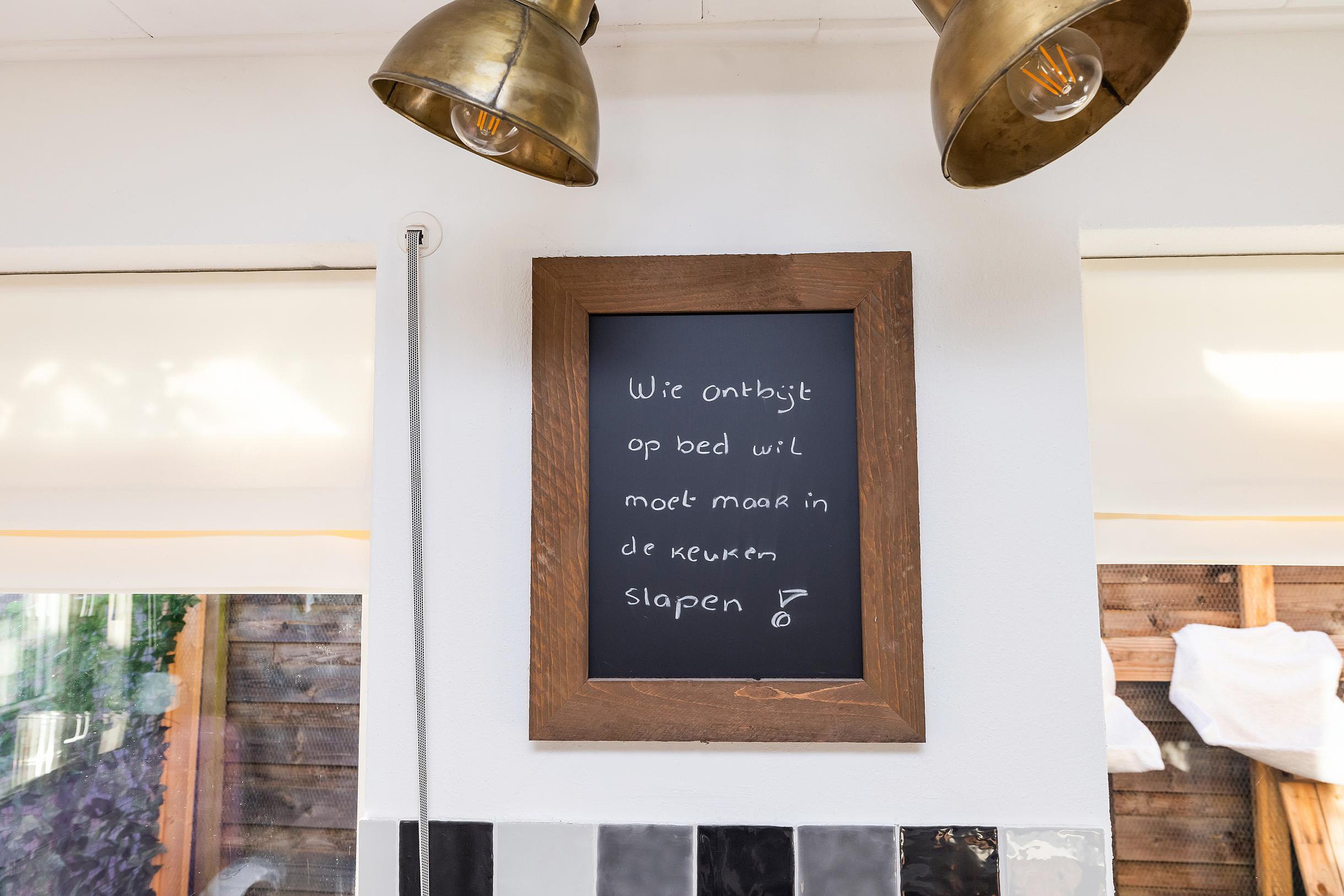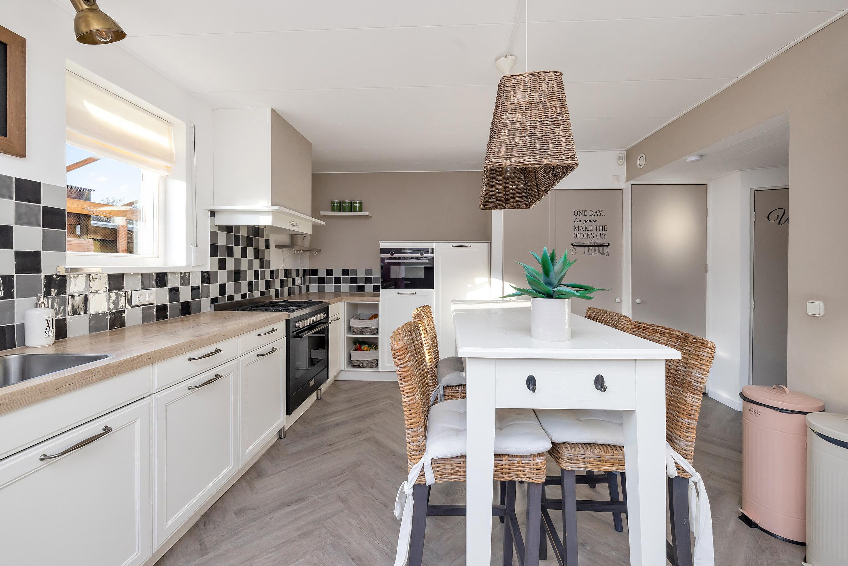 De eetkamer vormt een centrale plek in de woning en biedt toegang tot de keuken. De keuken is praktisch ingericht en voorzien van diverse inbouwapparatuur en voldoende werk- en kastruimte. Aansluitend bevindt zich de wasruimte met witgoedaansluitingen. Vanuit de keuken bereikt u tevens de bijkeuken, die extra bergruimte en functionaliteit biedt. Tevens zit hier het toilet met een toilet, wasbak en urinoir.