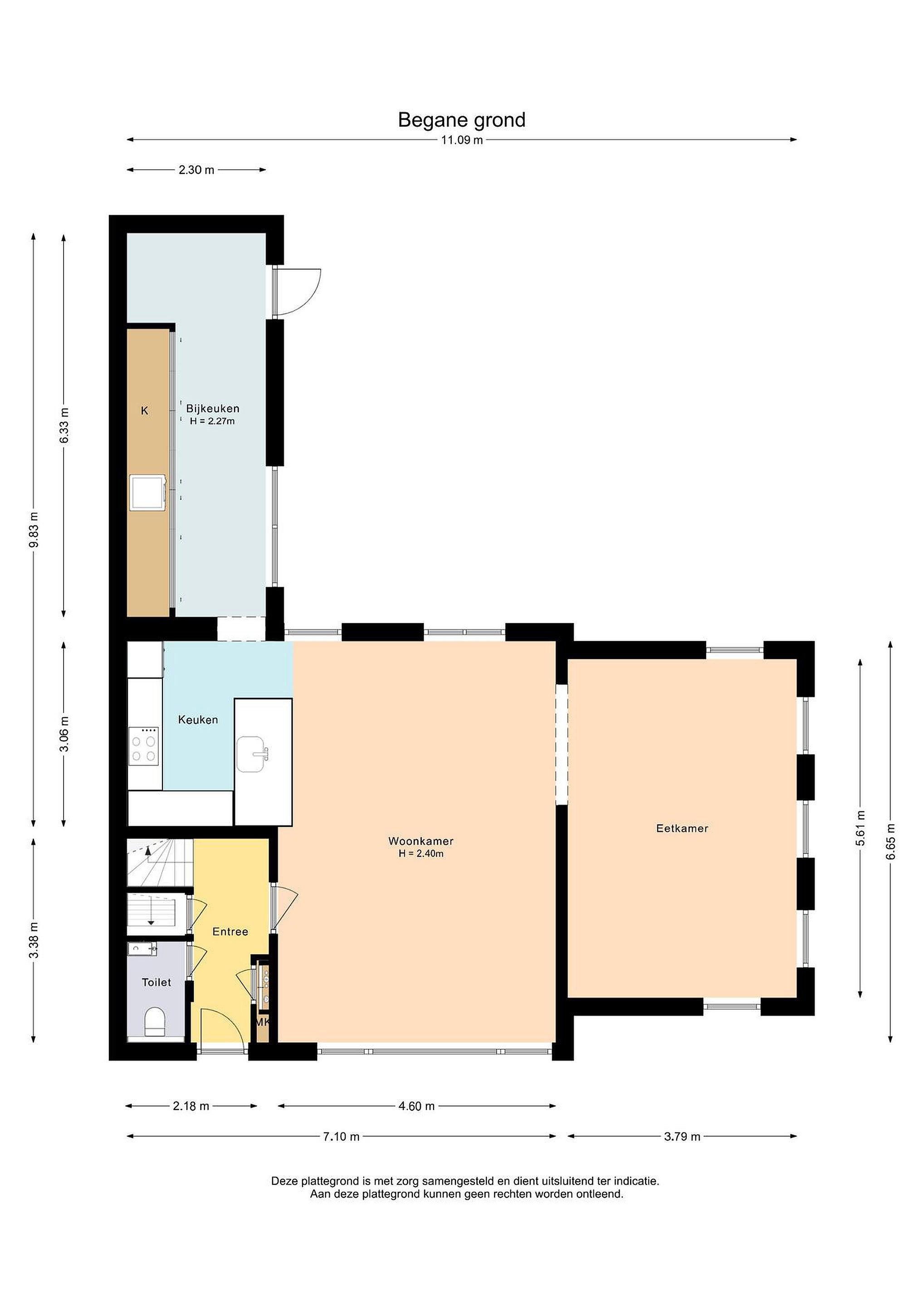Begane grond entree/hal, meterkast, toilet met fontein, kelder, trapopgang, sfeervolle en lichte woonkamer met aangebouwde eetkamer voorzien van airco, moderne keuken met schiereiland en diverse inbouwapparatuur zoals: inductie kookplaat, koelkast, vaatwasser, oven en Quooker. Via de keuken komt u in de bijkeuken met kastenwand voor de wasmachine opstelling.