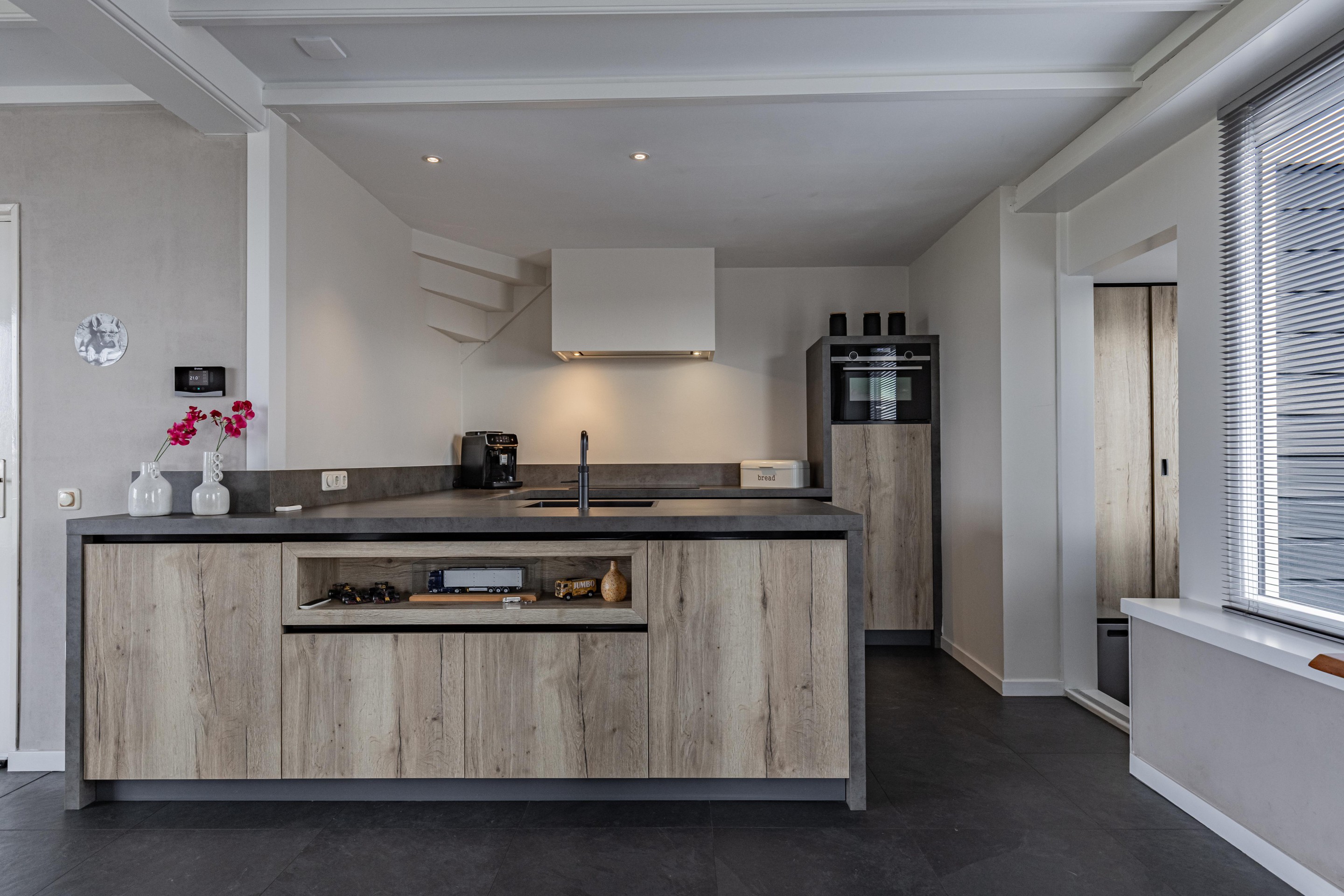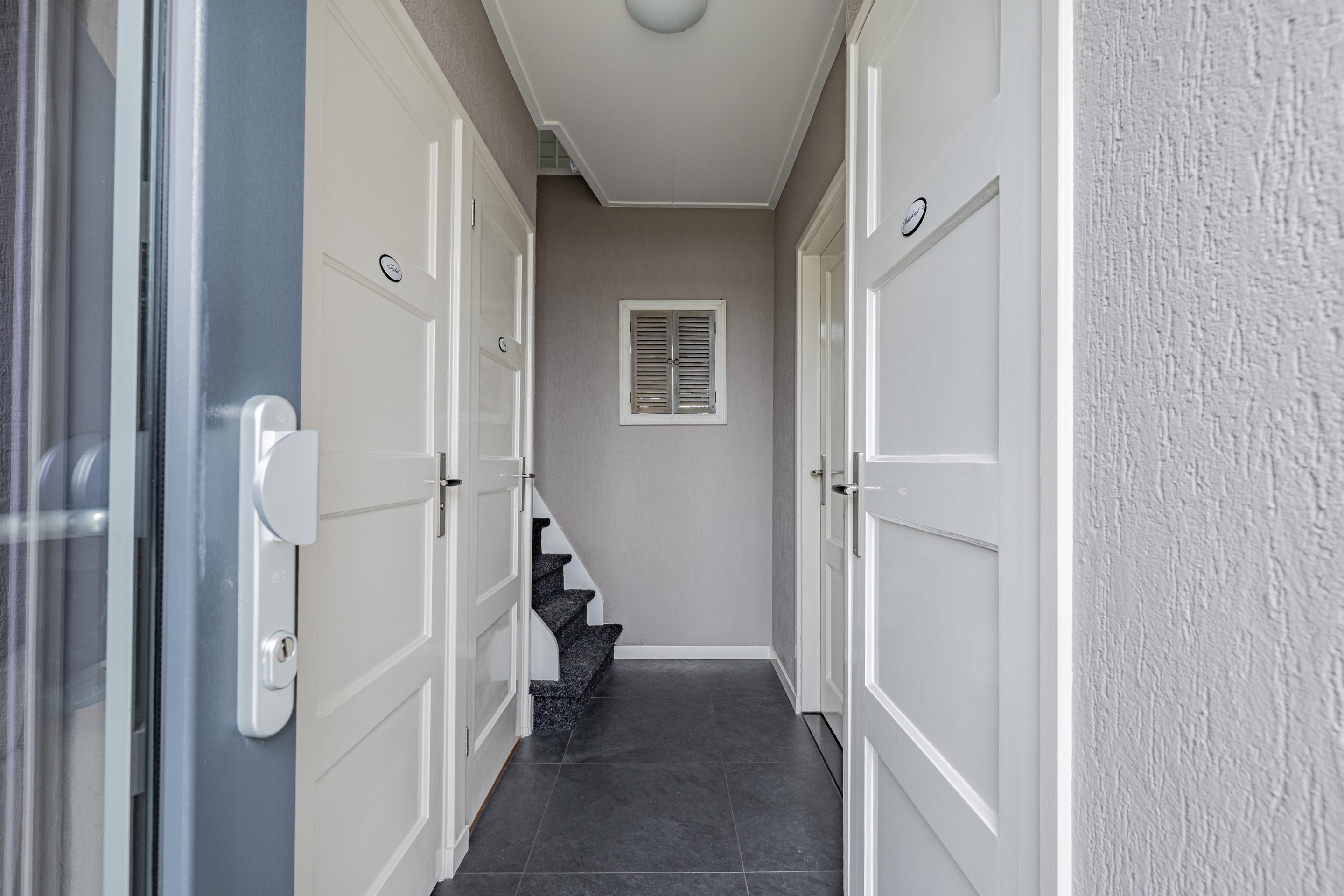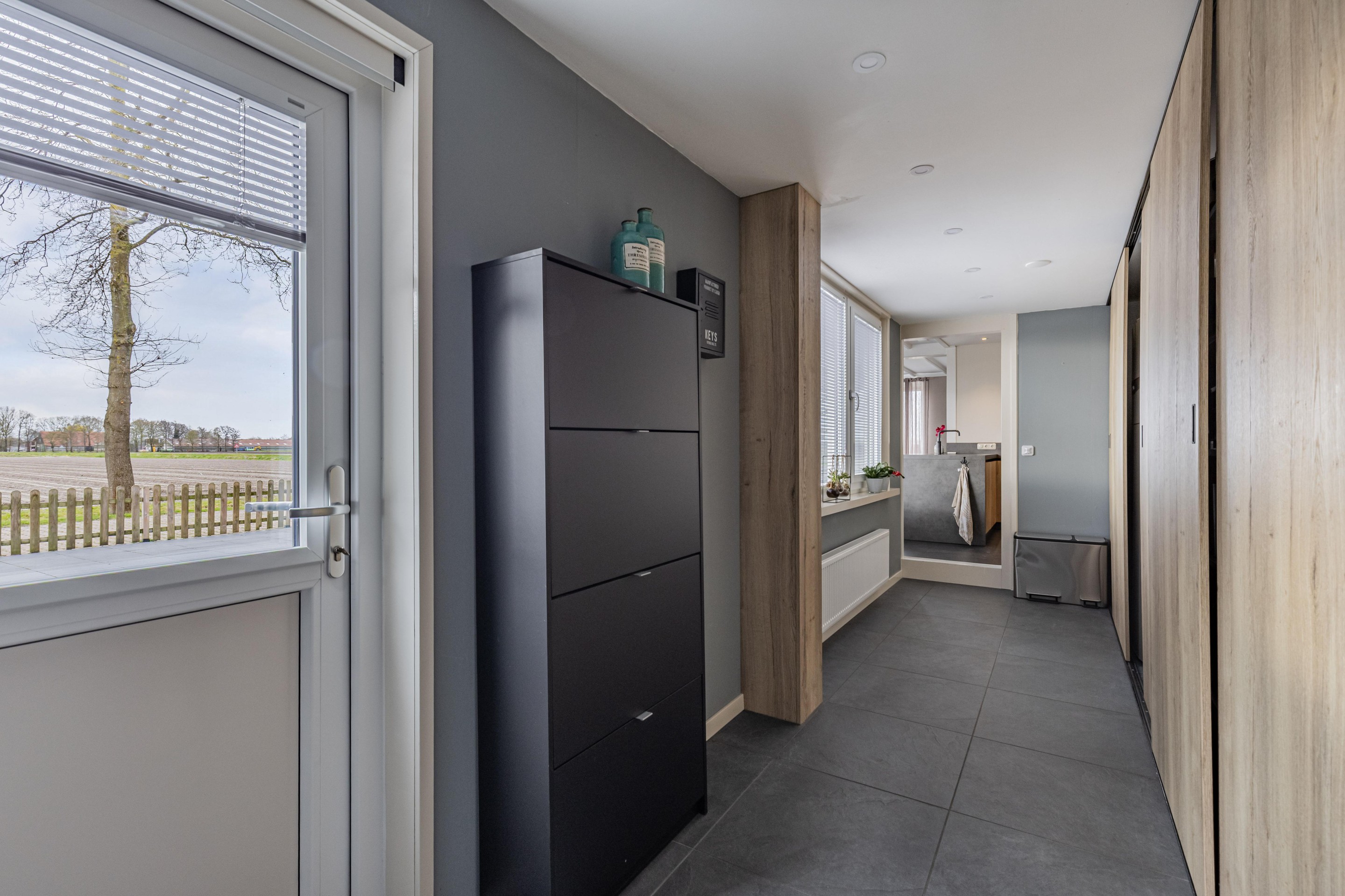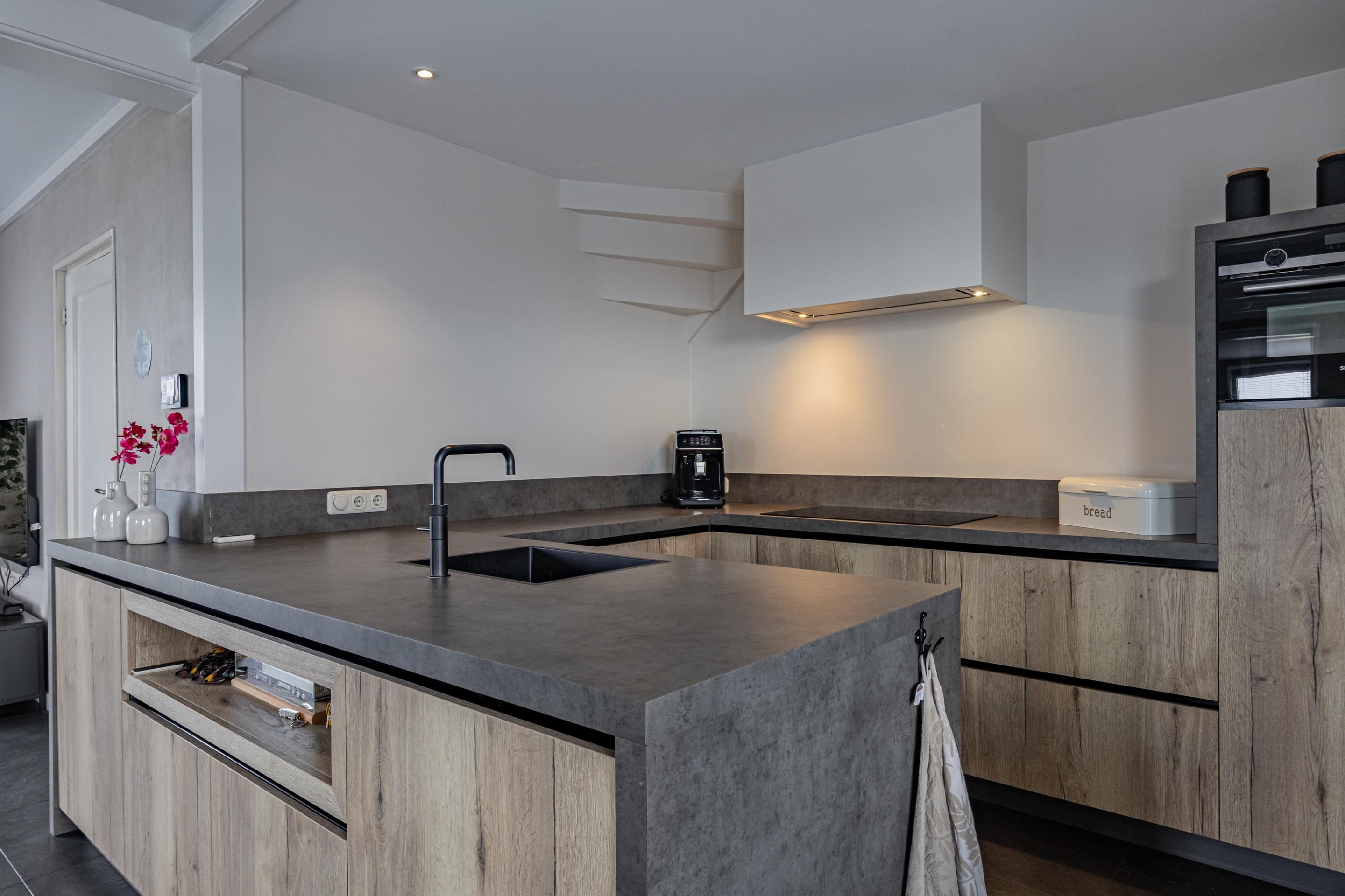 Binnen wordt u verwelkomd door een lichte en sfeervolle woonkamer met balken plafond en uitgebouwde eetkamer. De moderne keuken vormt een fijne plek om te koken en samen te komen. Aansluitend vindt u een praktische, lange bijkeuken met een kastenwand, wasmachineopstelling en volop bergruimte.