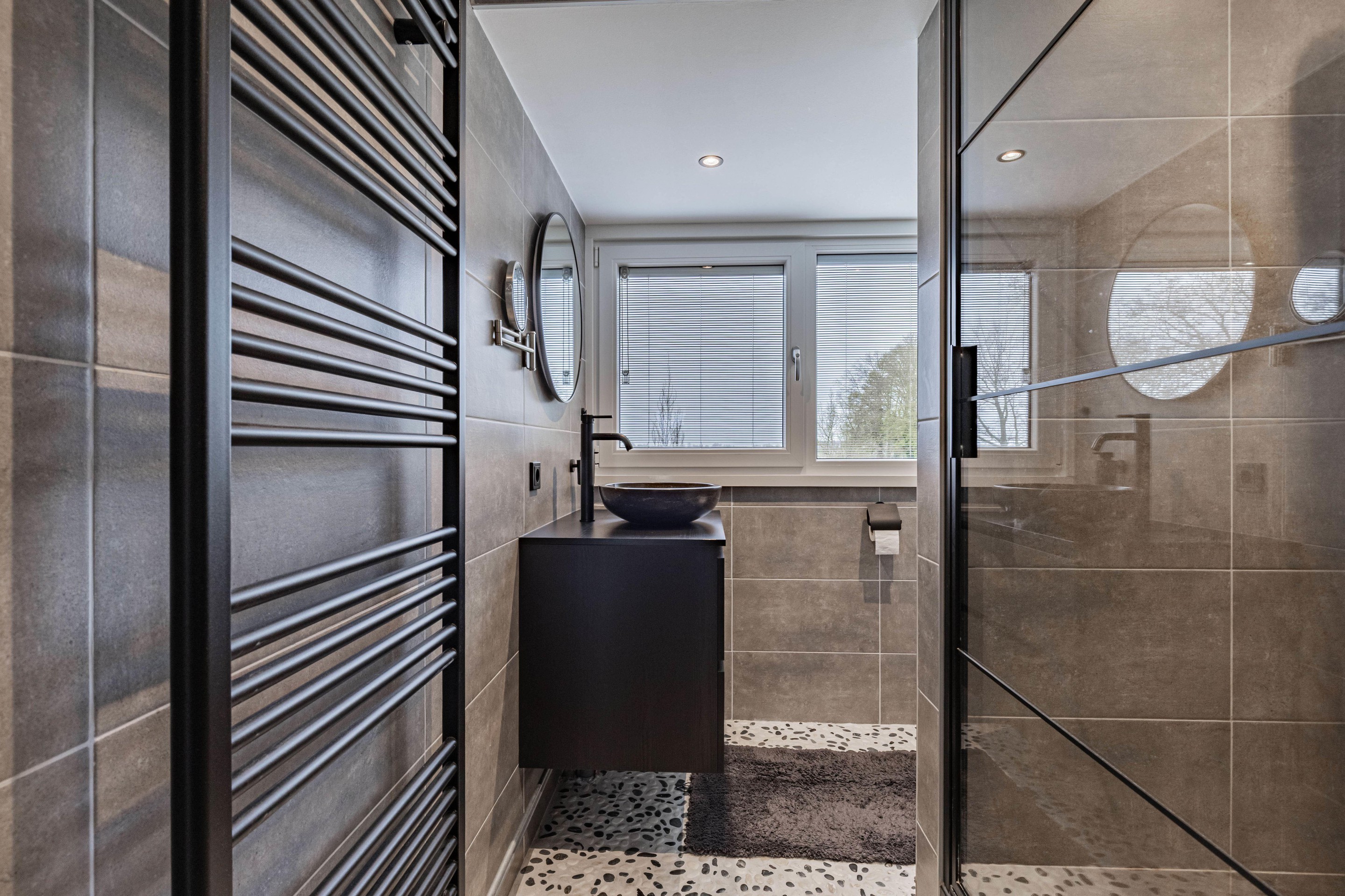 Op de verdieping zijn drie comfortabele slaapkamers en een moderne badkamer, compleet met inloopdouche, toilet en een stijlvol wastafelmeubel. Daarnaast beschikt de woning over een handige bergzolder.