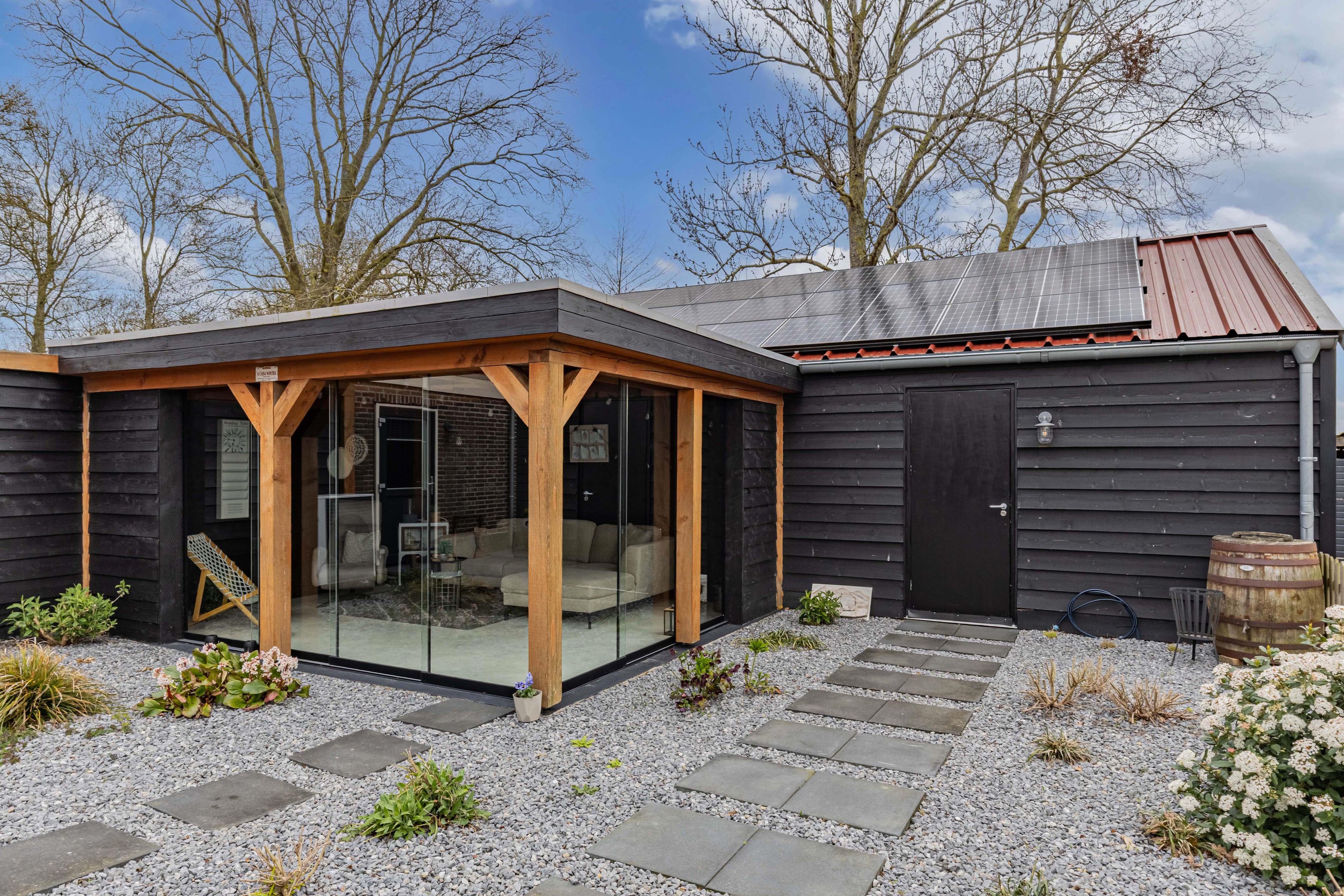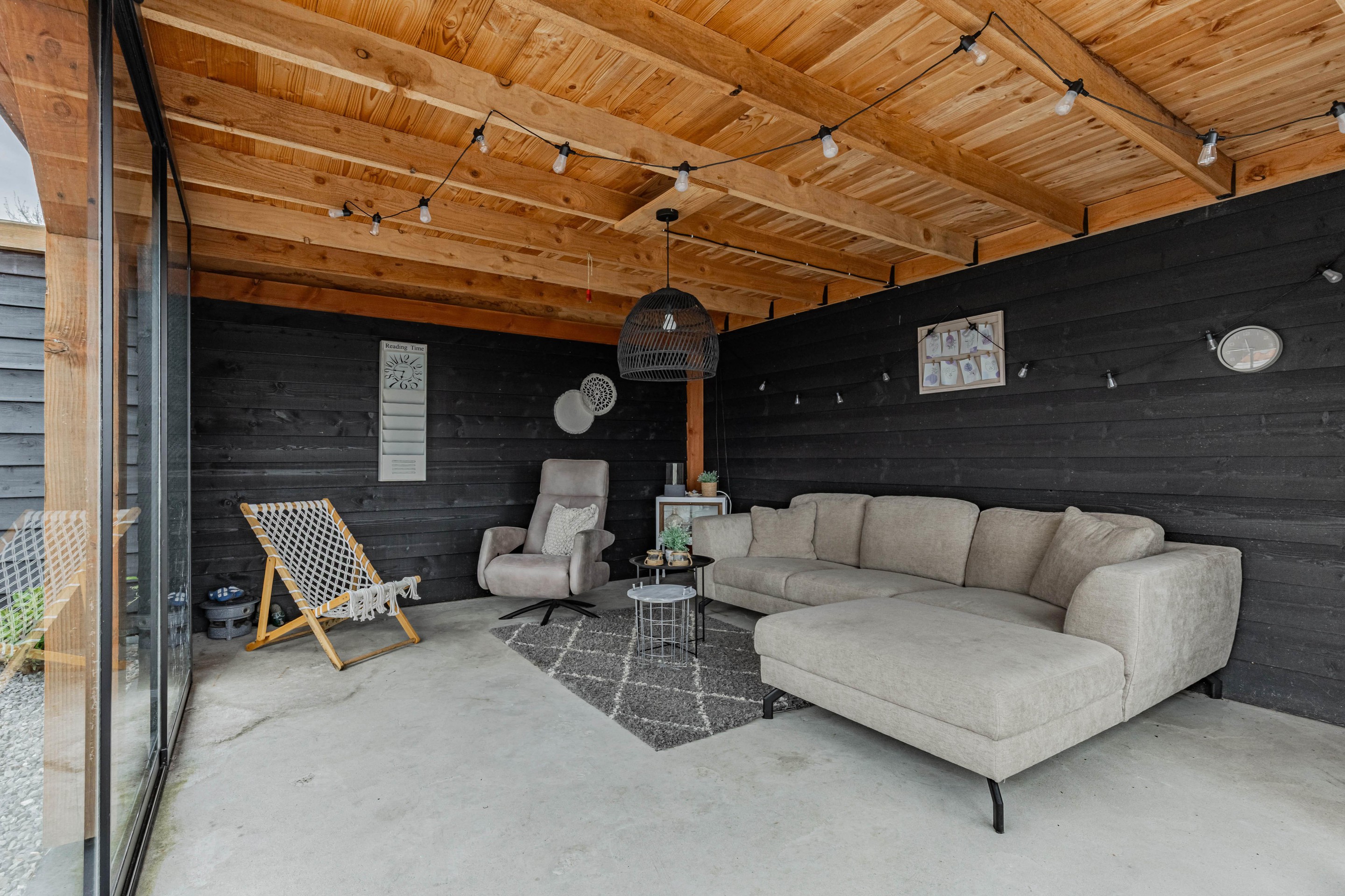 Ook buiten is het genieten. De ruime tuin biedt alle mogelijkheden om te ontspannen, te tuinieren of te genieten van het uitzicht. De grote schuur met aangrenzend tuinhuis en glazen pui maakt het geheel compleet en biedt tal van gebruiksmogelijkheden, van hobbyruimte tot sfeervolle buitenplek.