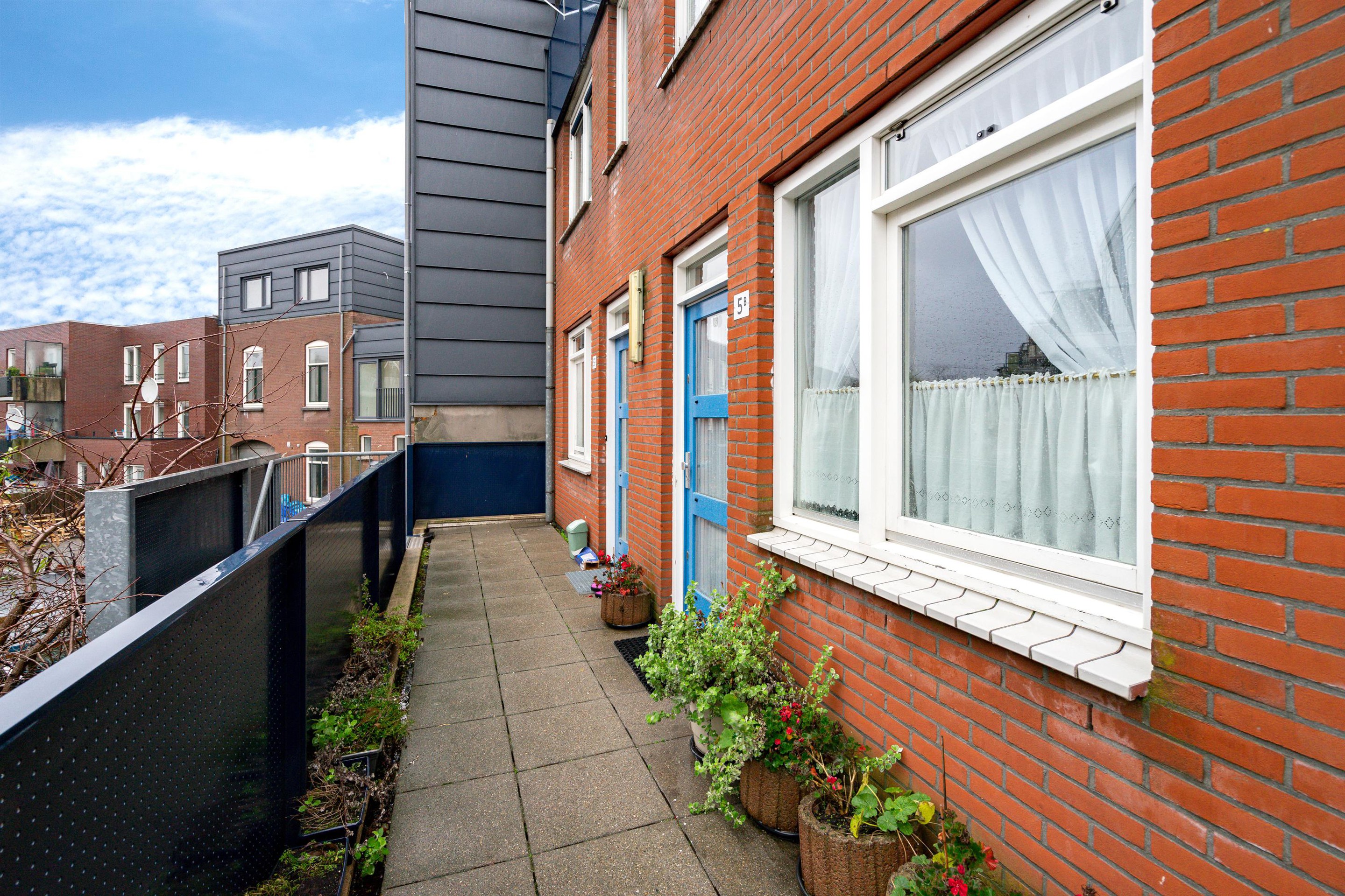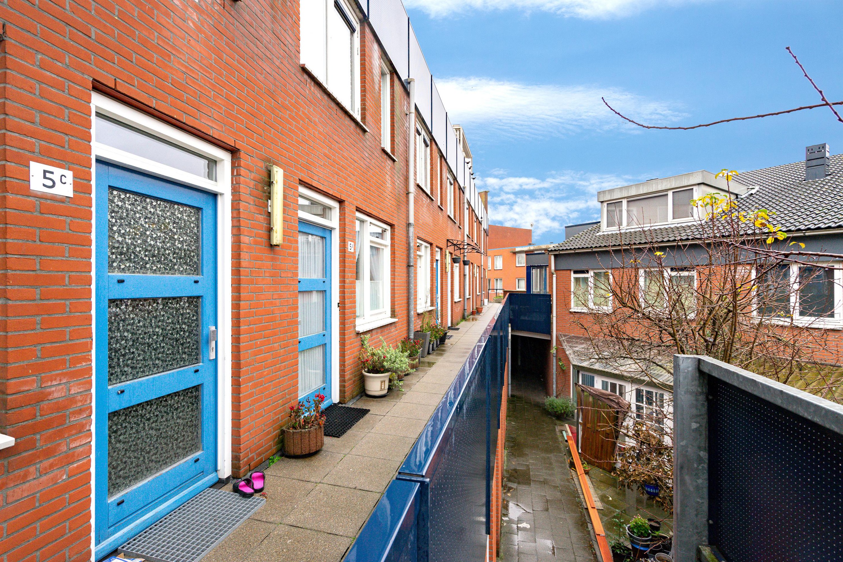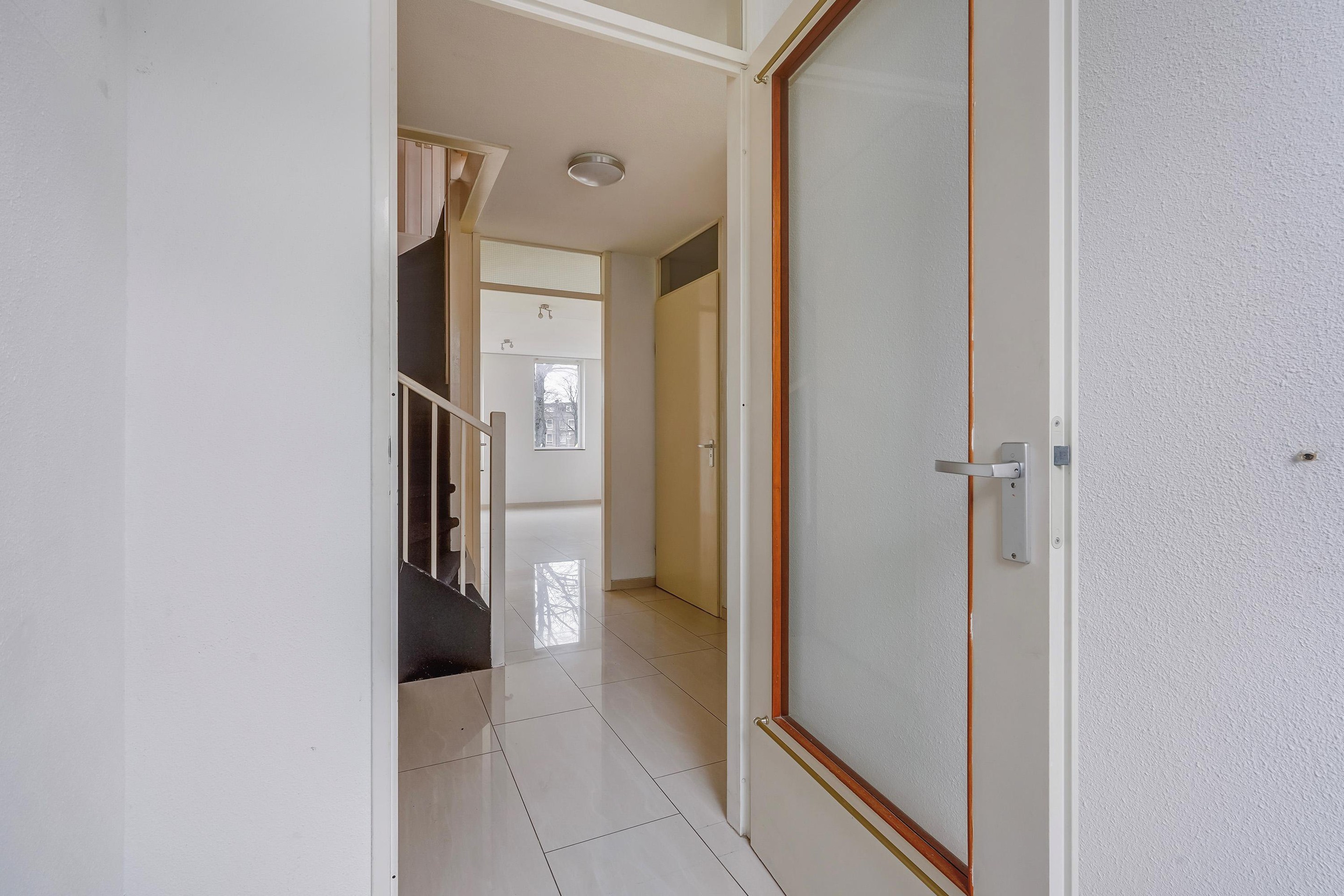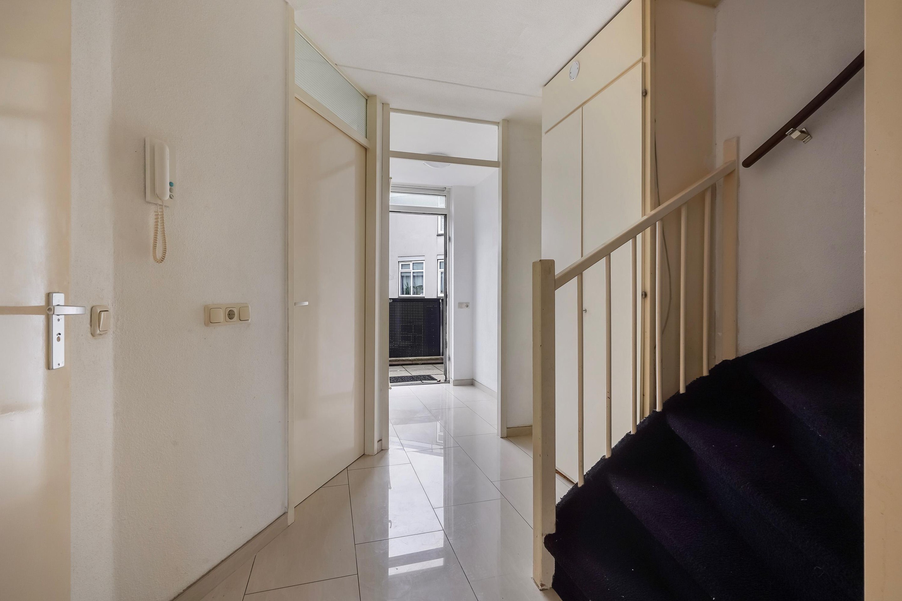 Eenmaal boven aangekomen loop je naar links en zul je de deur naar de woning aan uw rechterhand vinden (tenzij je achteruit loopt).