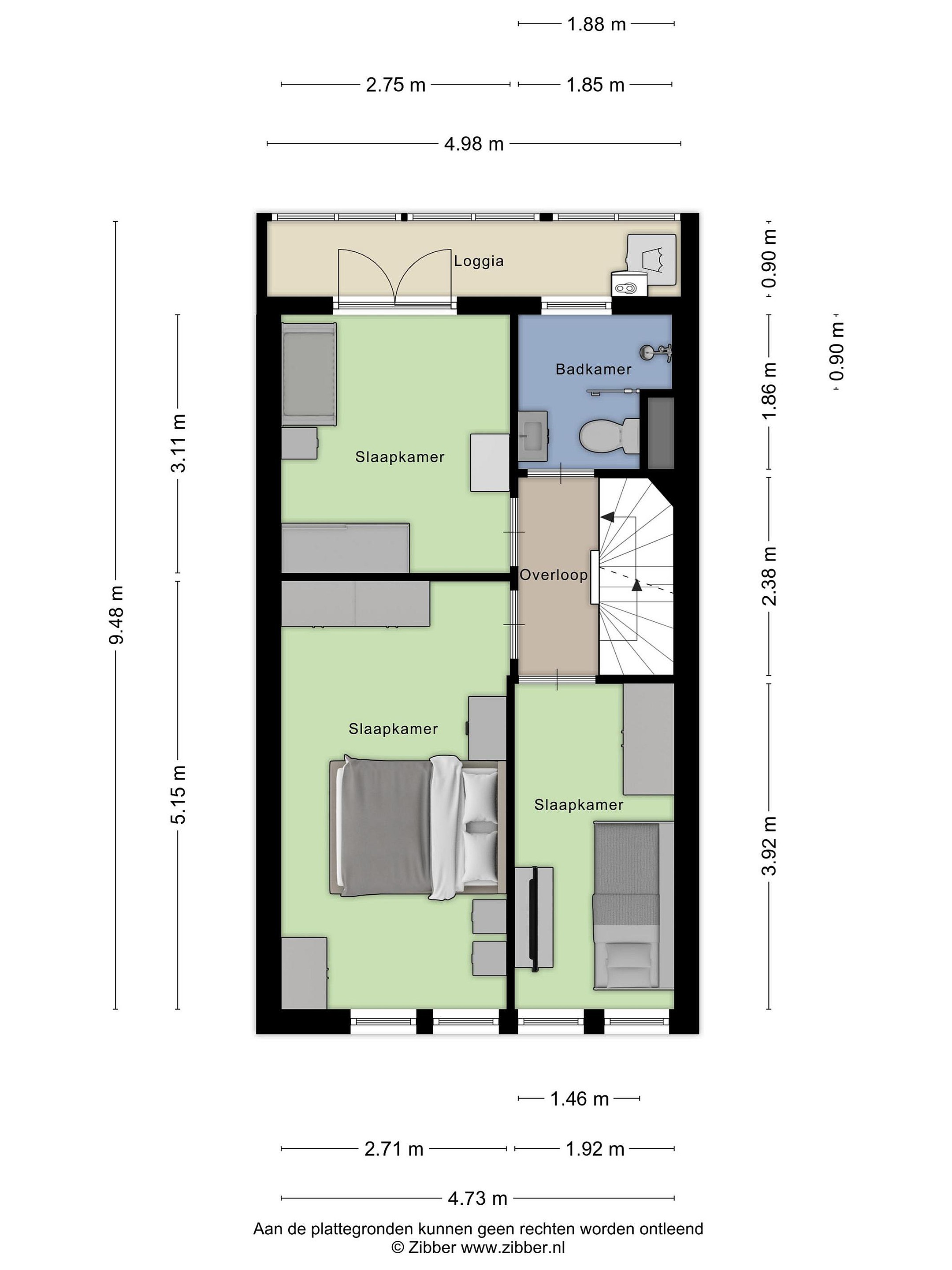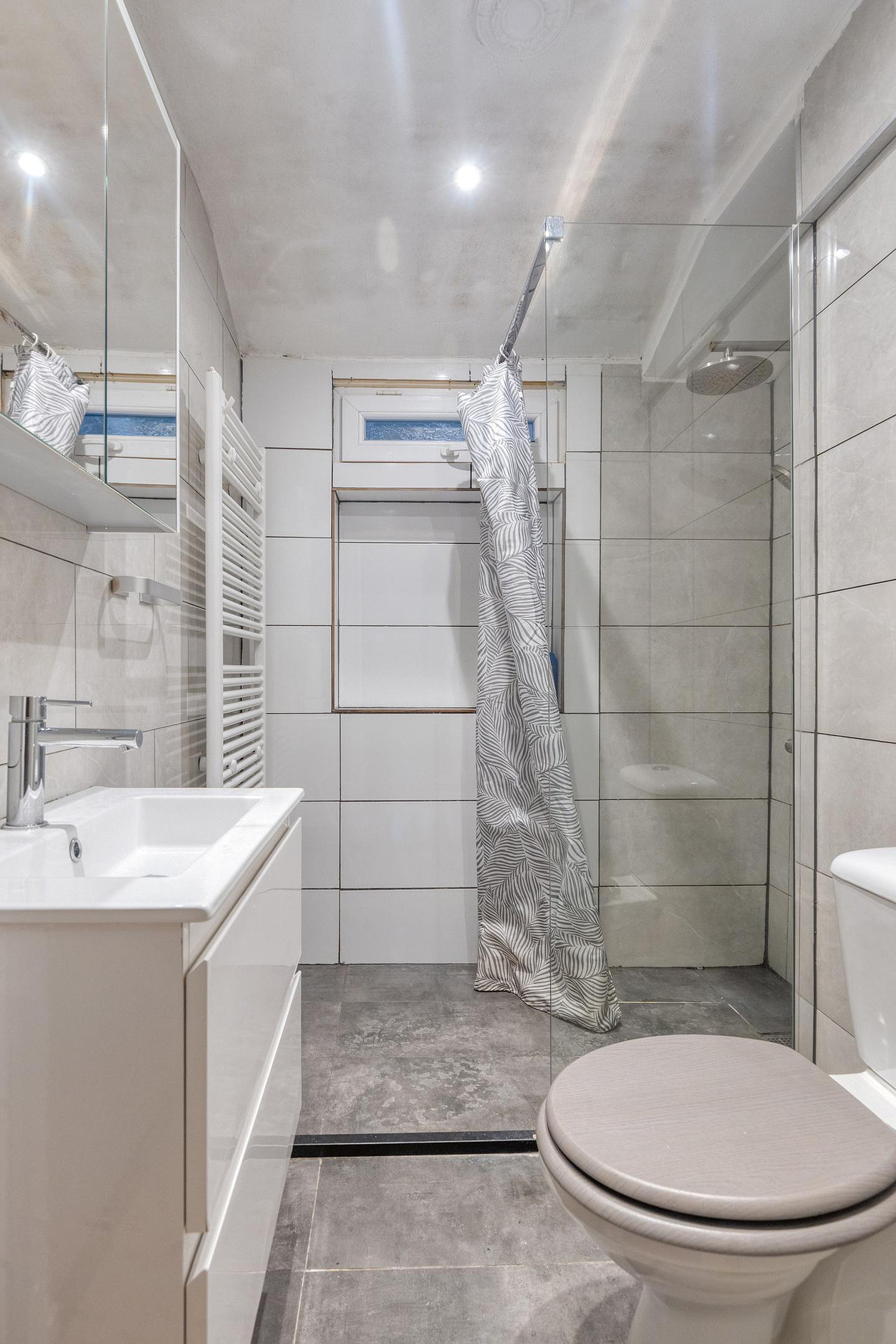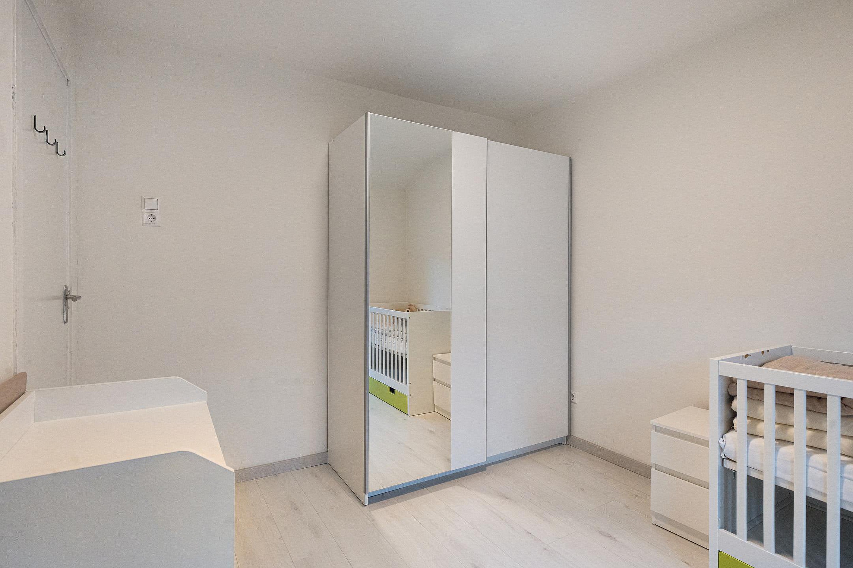 Op de eerste verdieping bevinden zich drie ruime slaapkamers, elk met voldoende ruimte om in te richten als babykamer, logeerkamer, hobbyruimte of werkplek. Daarnaast is hier een moderne badkamer aanwezig, voorzien van een inloop regendouche en een badkamermeubel met veel opbergruimte. Ook is er een loggia met de CV-ketel en extra bergruimte.