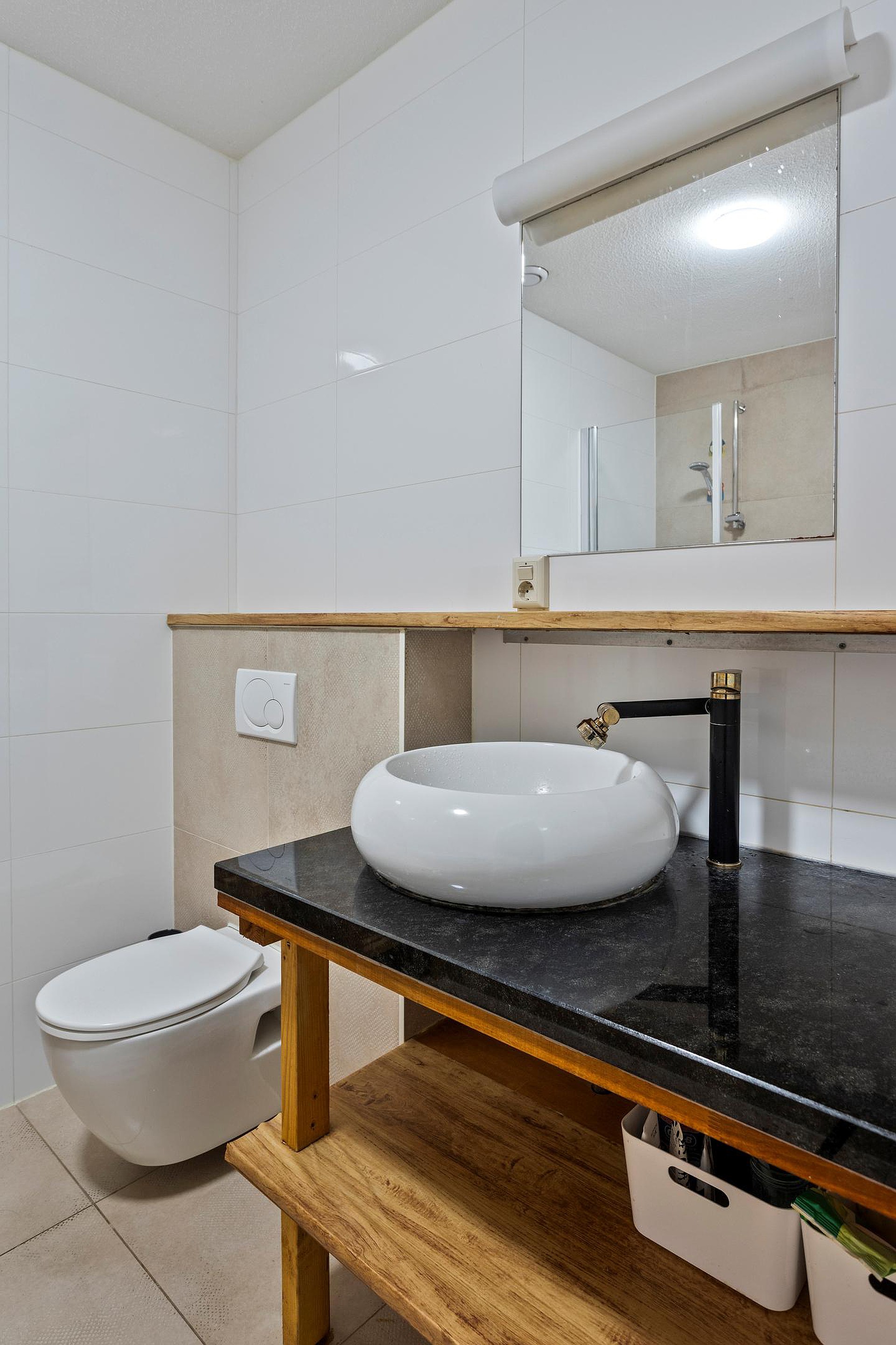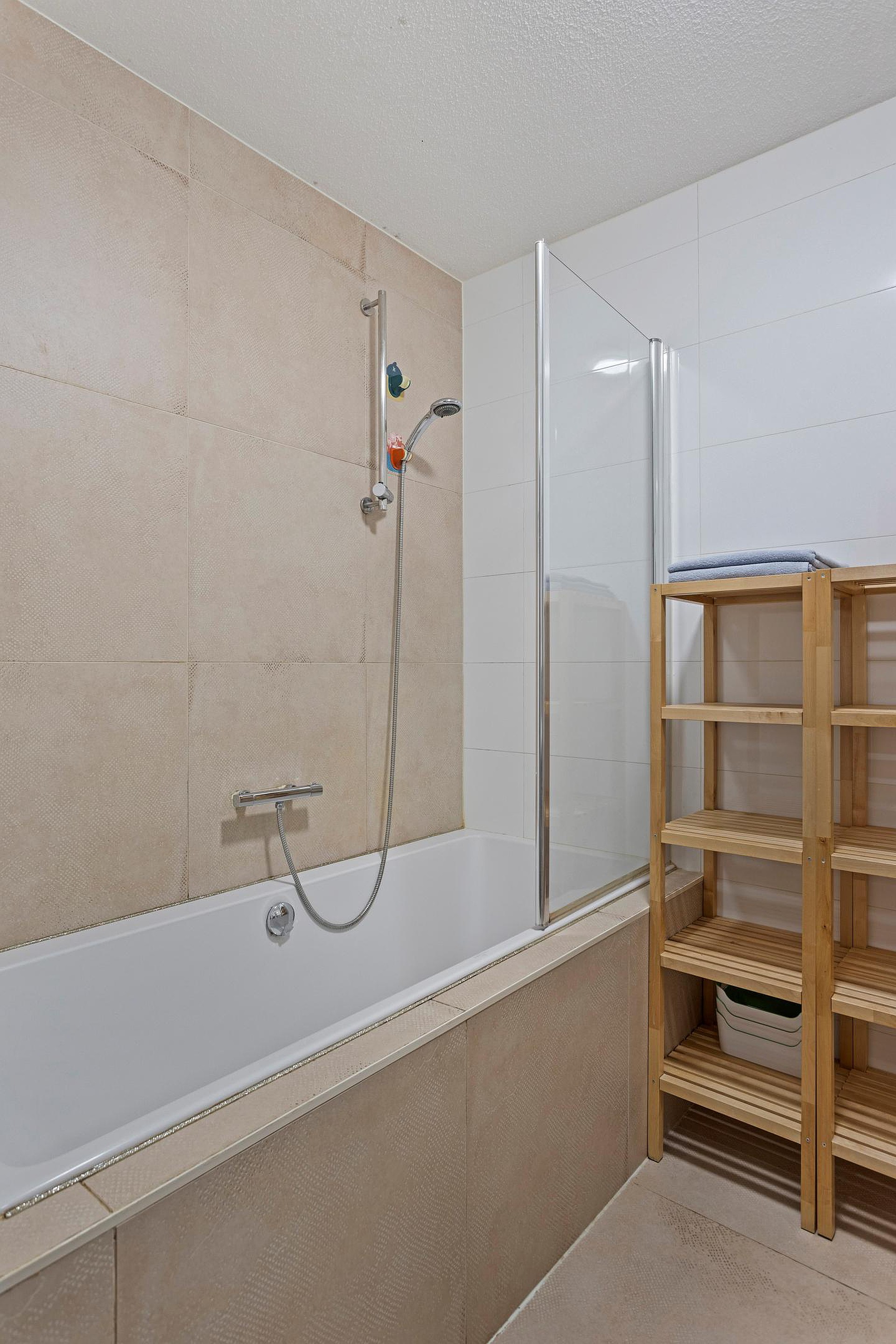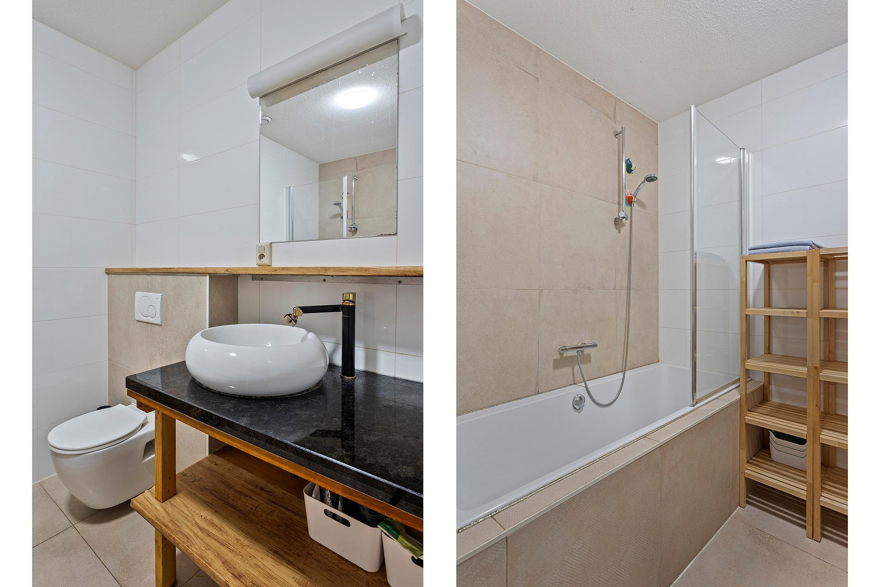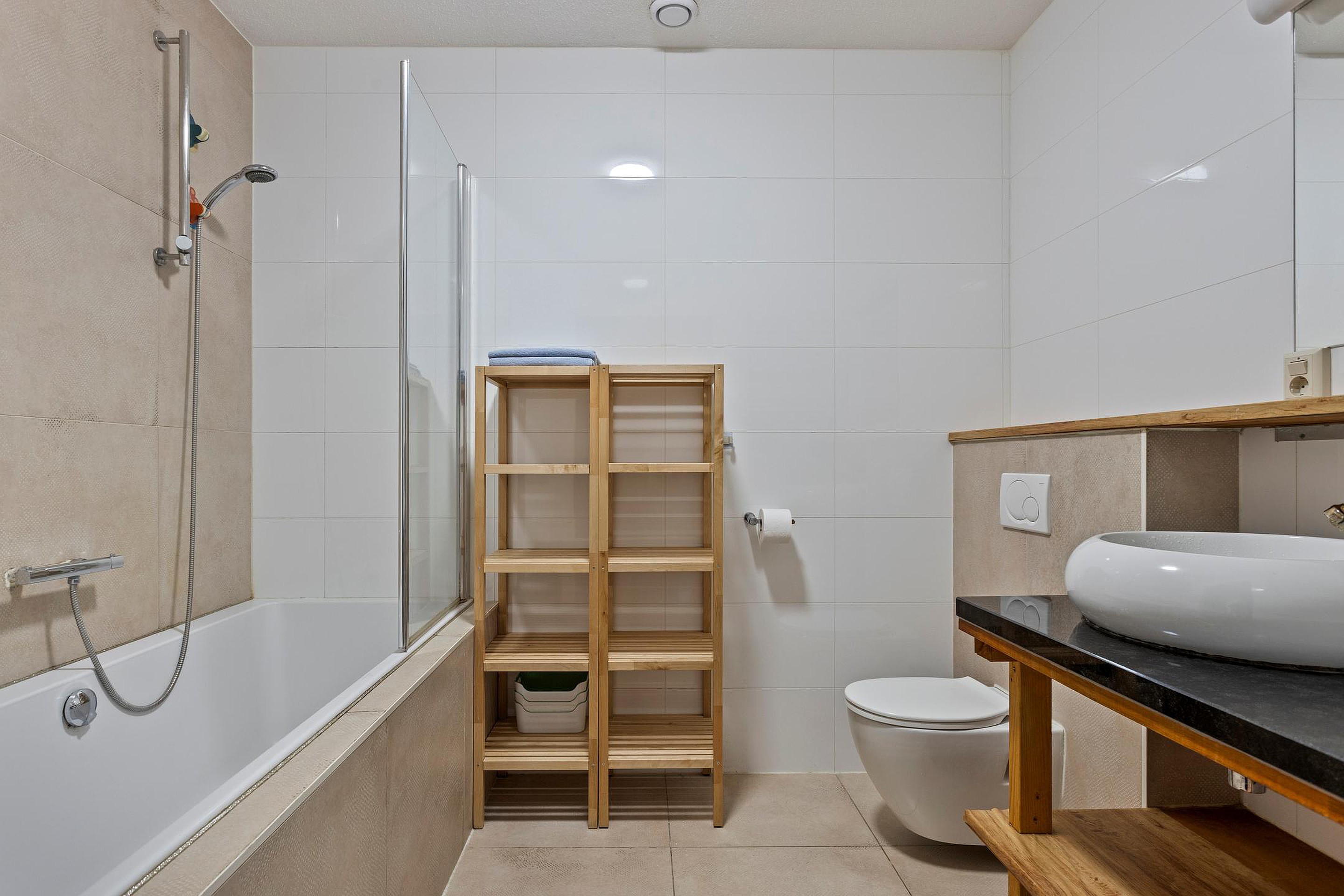 - Moderne badkamer met bad/douche en wasmachine- en drogeraansluiting