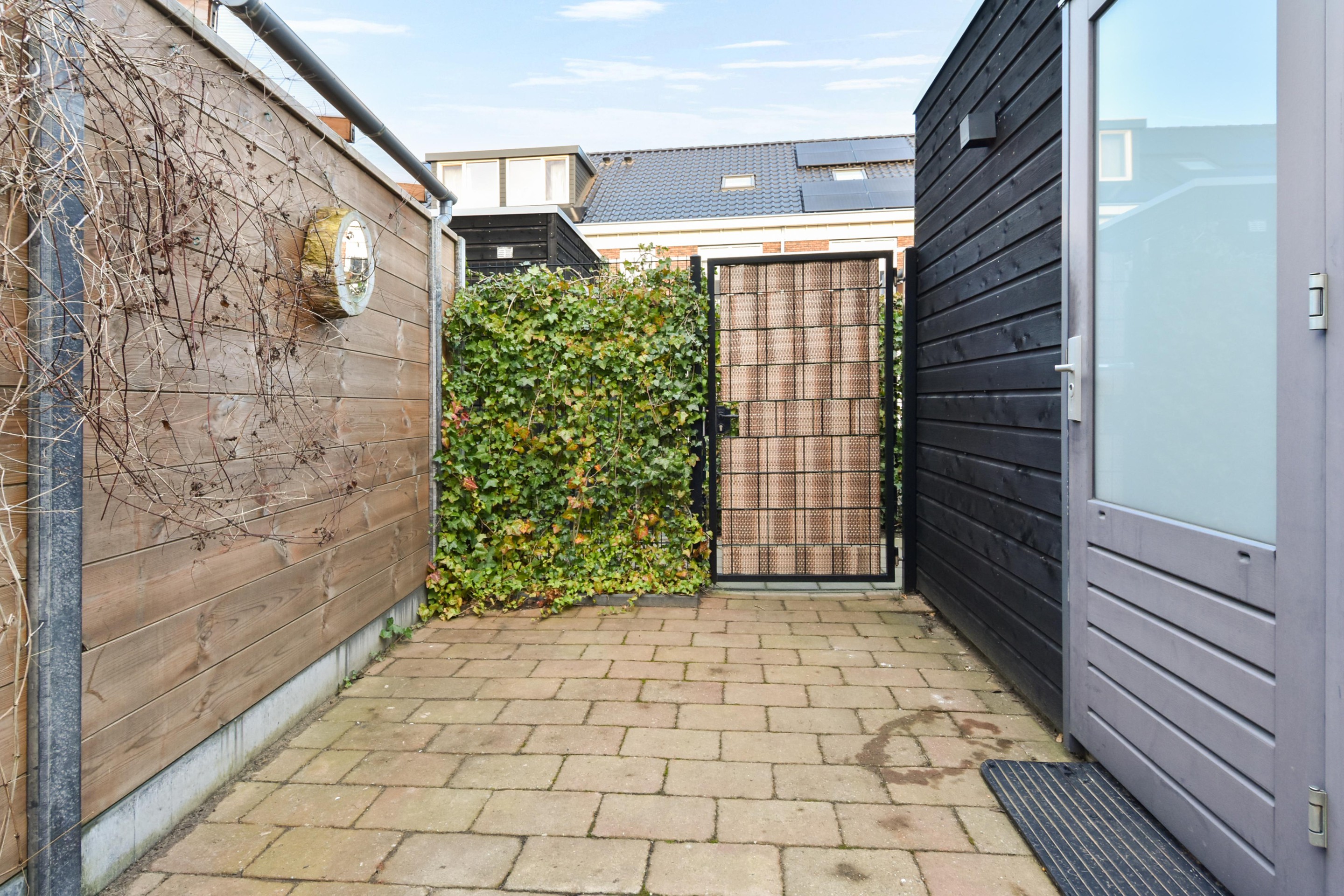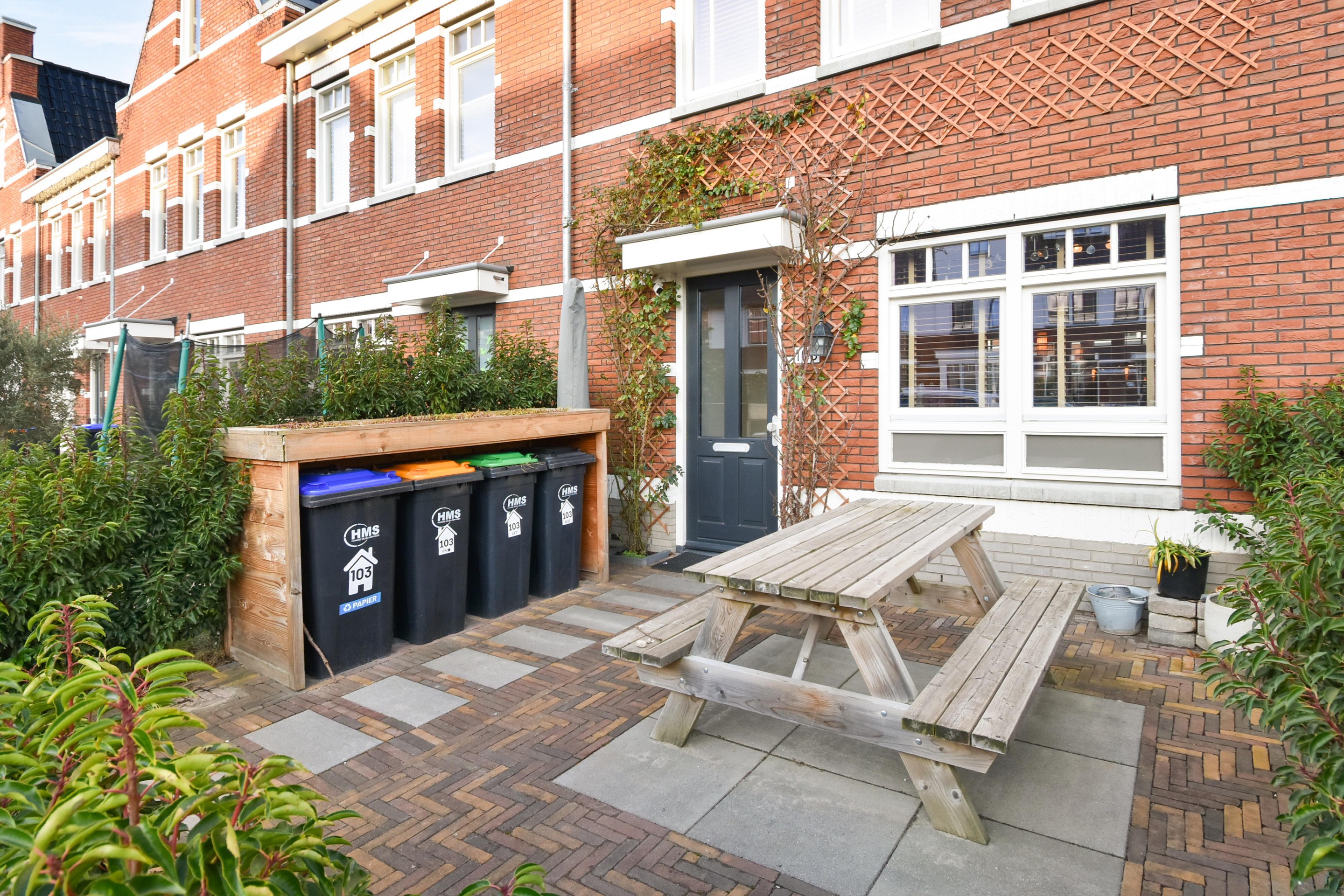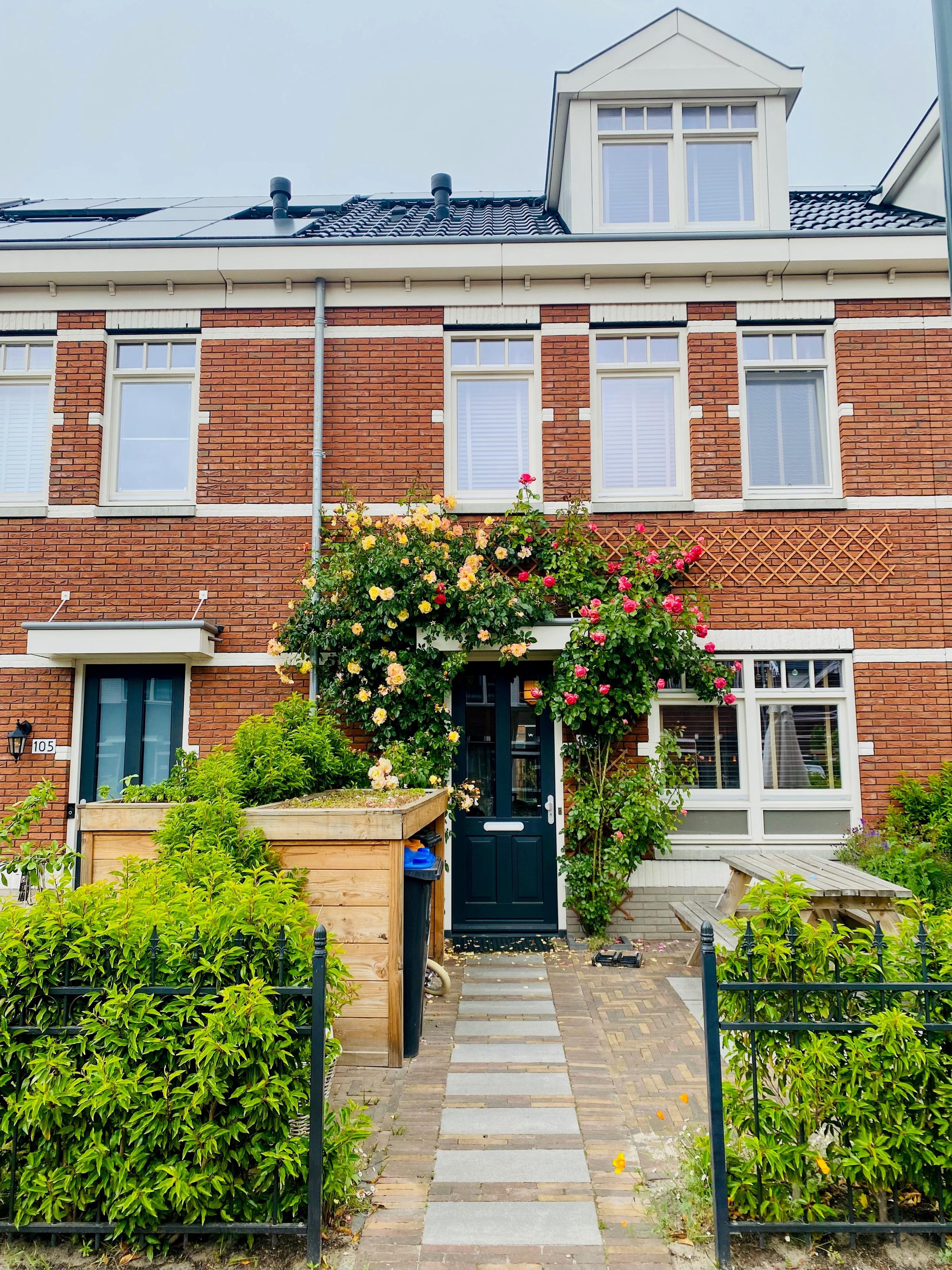 De fraai aangelegde achtertuin is diep, groen en zonnig. Met een vrijstaande berging en achterom – ideaal voor fietsen, speelgoed of tuingereedschap.