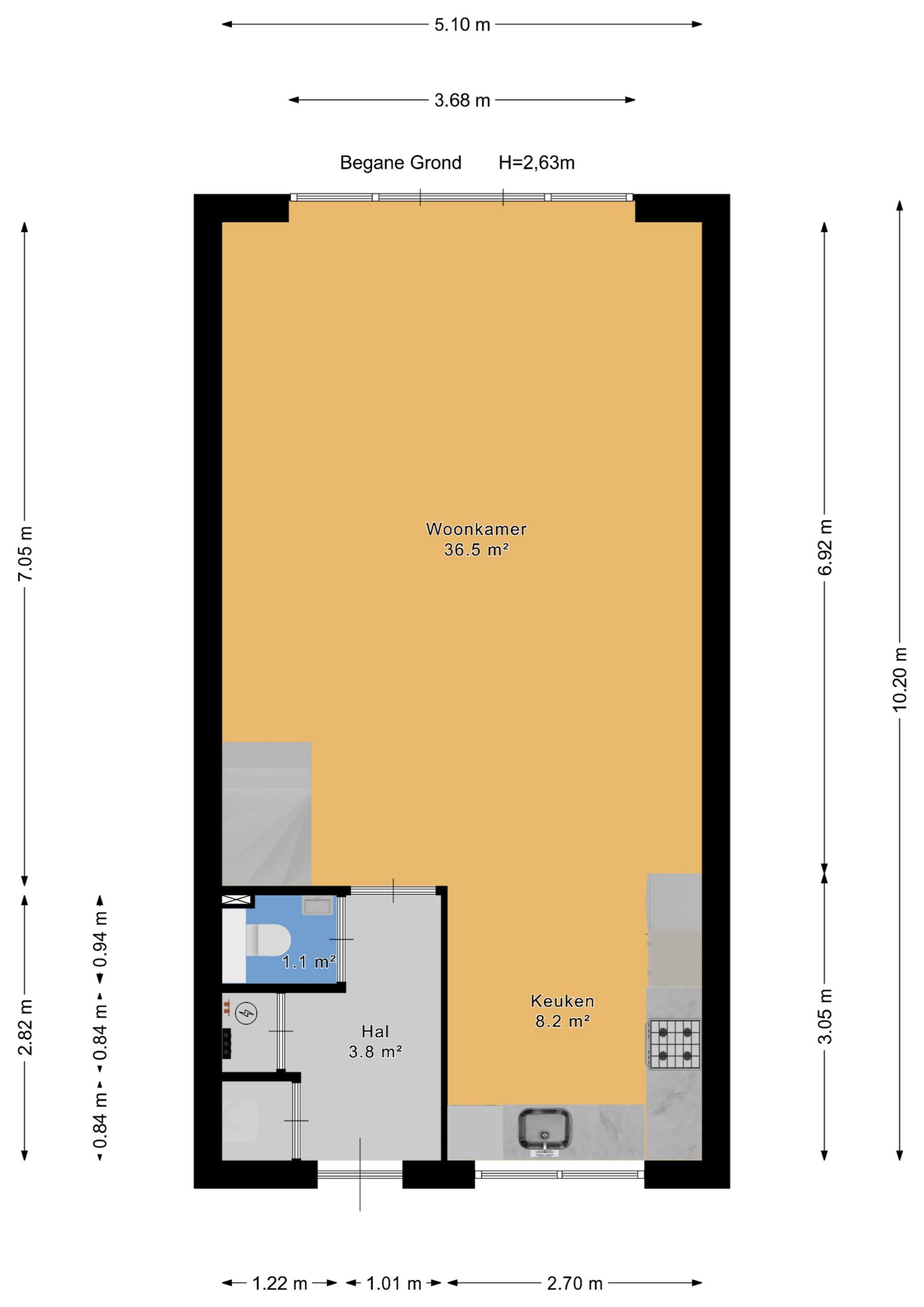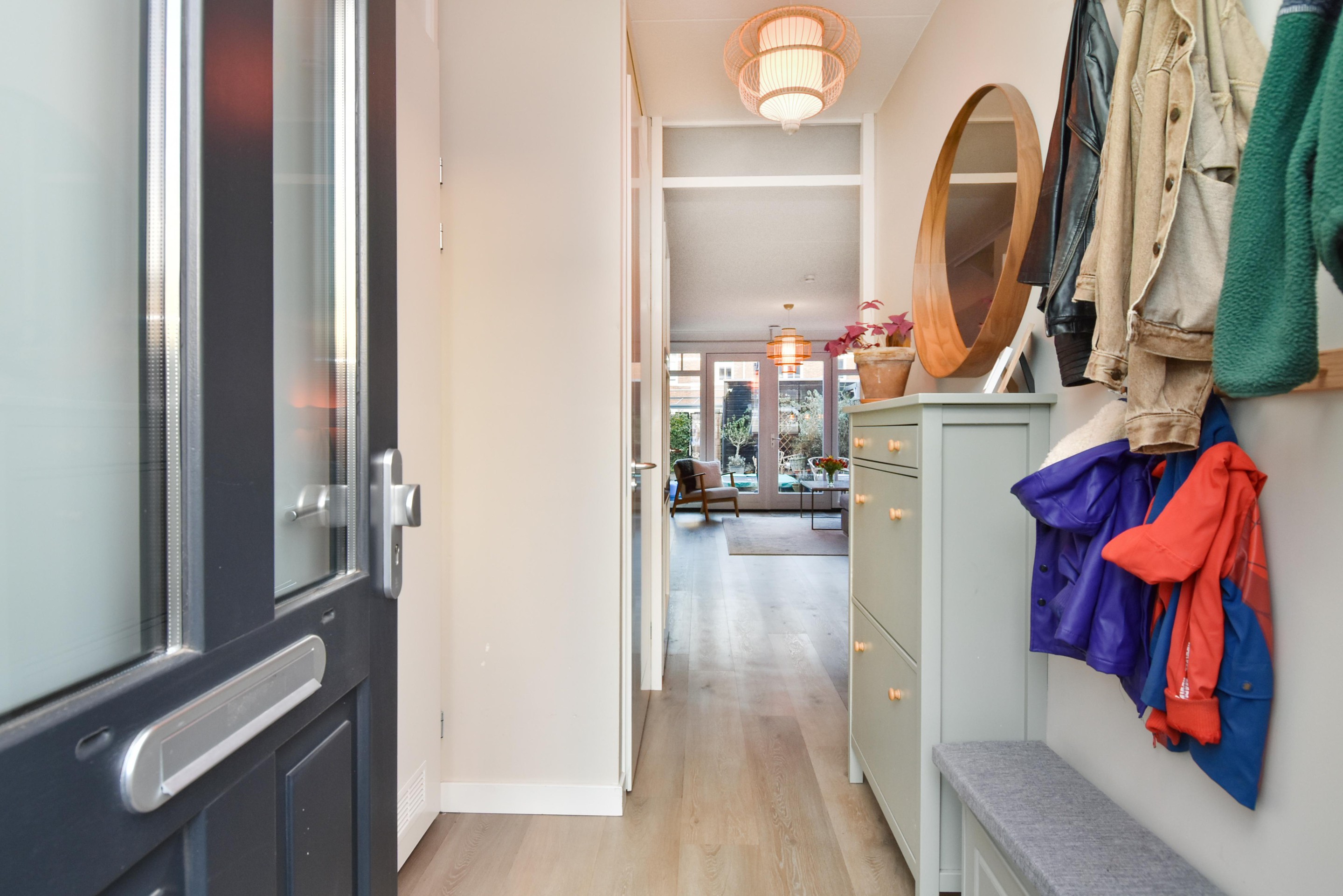 Binnenkomst via een nette hal met meterkast, modern toilet en praktische berging/technische ruimte met warmtepompinstallatie (eigendom).