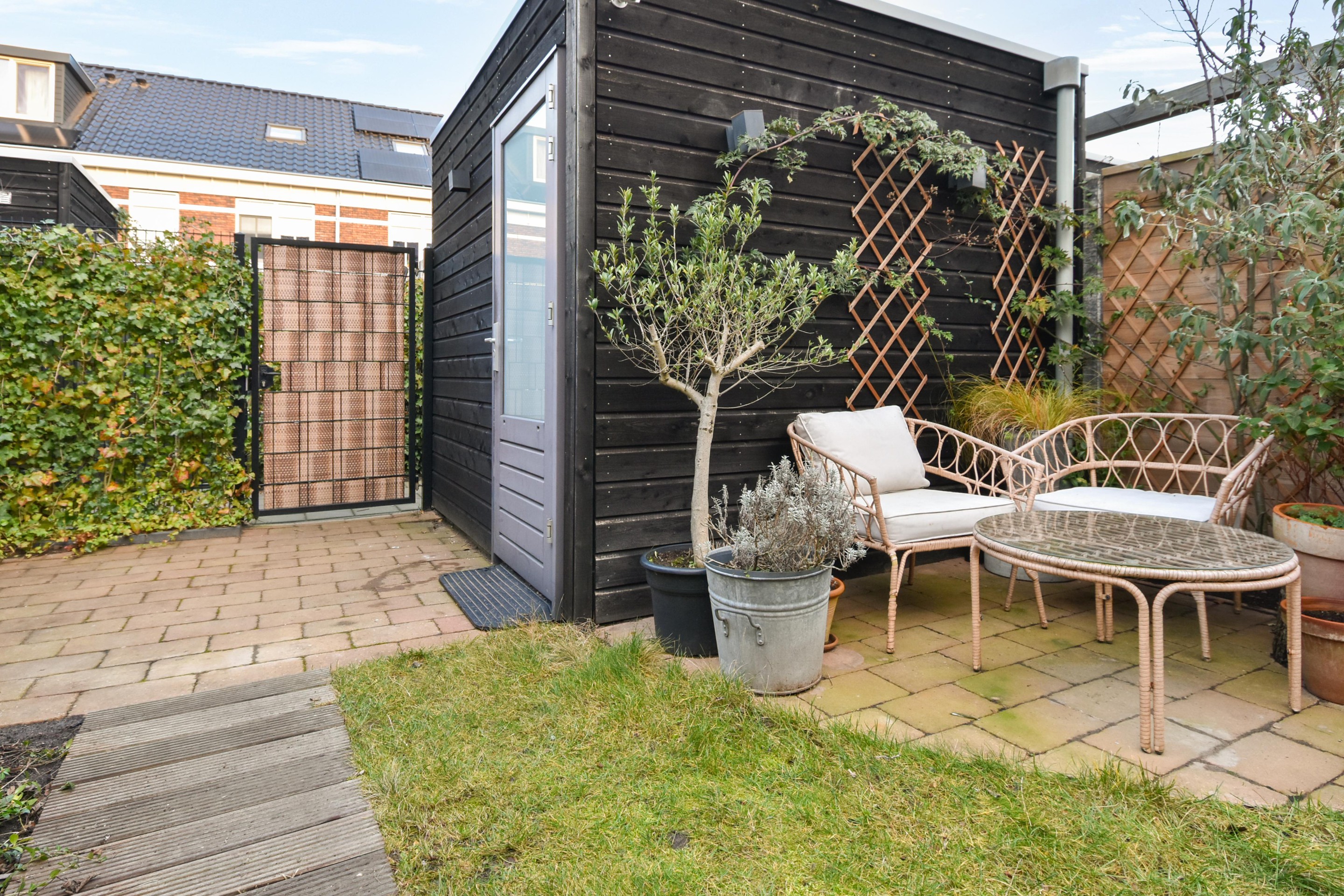 - Achtertuin met berging en achterom;