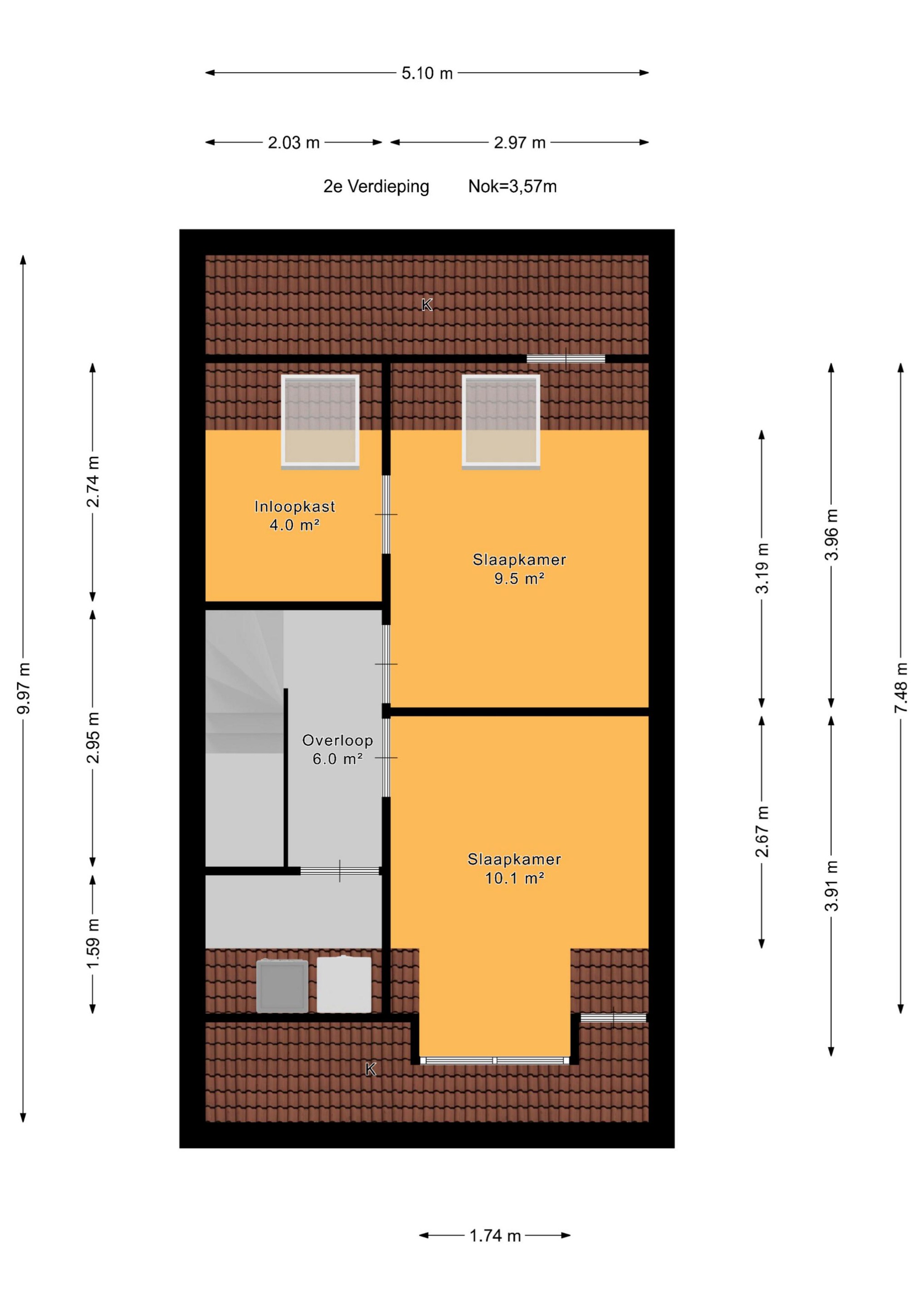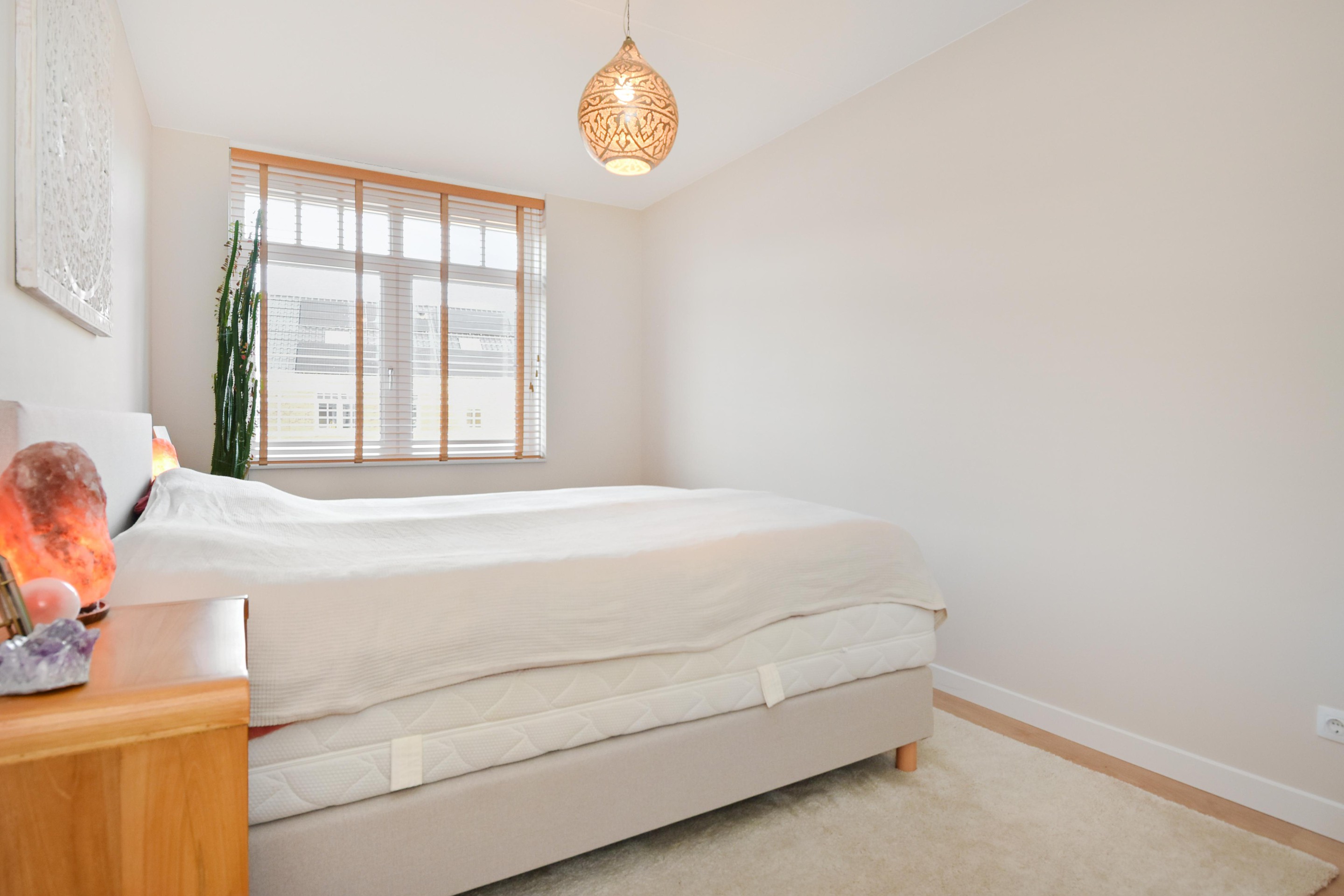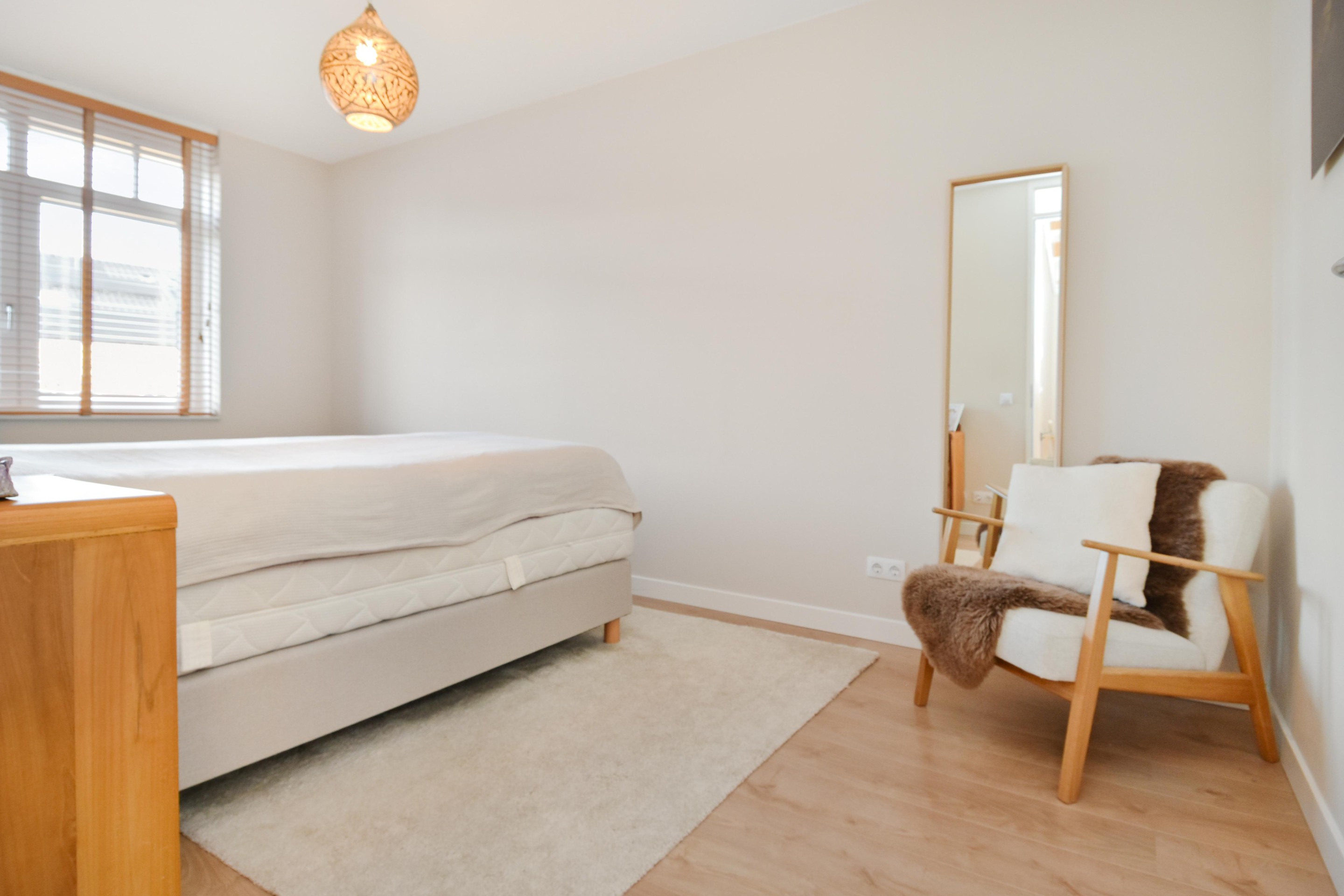 Een verrassend ruim ingedeelde zolderverdieping met aan de achterzijde een slaap-/werkkamer voorzien van dakraam, knieschotten en toegang tot de inloopkast (eveneens met dakraam).