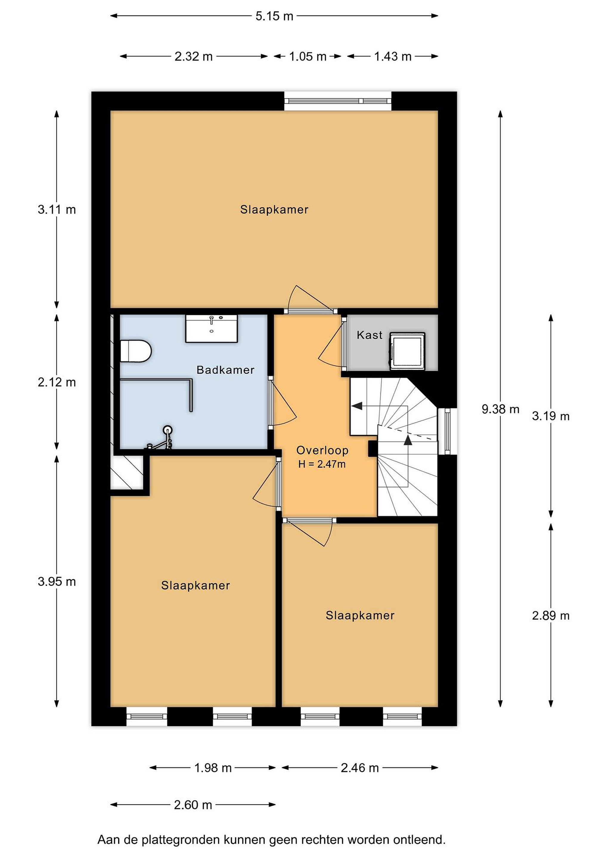 Drie slaapkamers en een luxe badkamer op de eerste verdieping