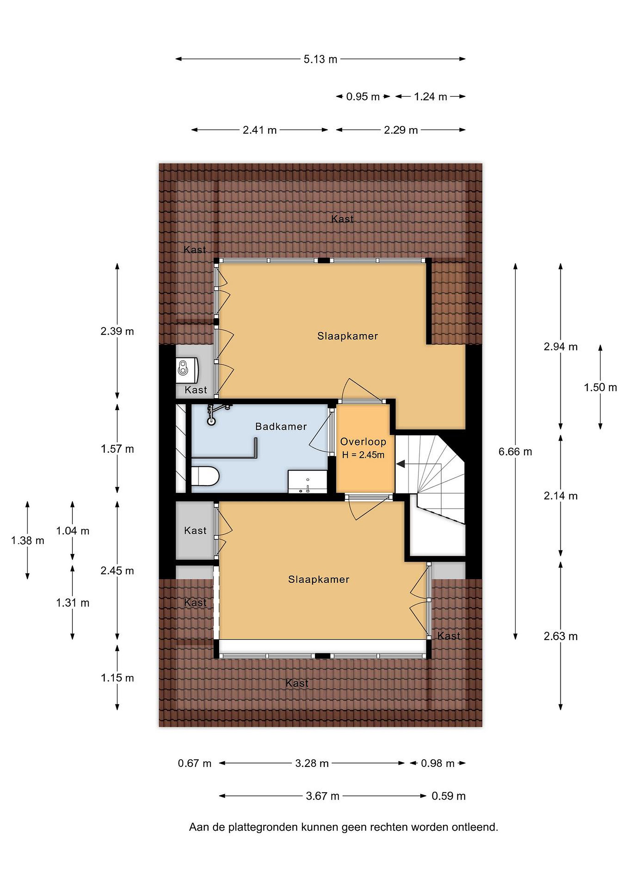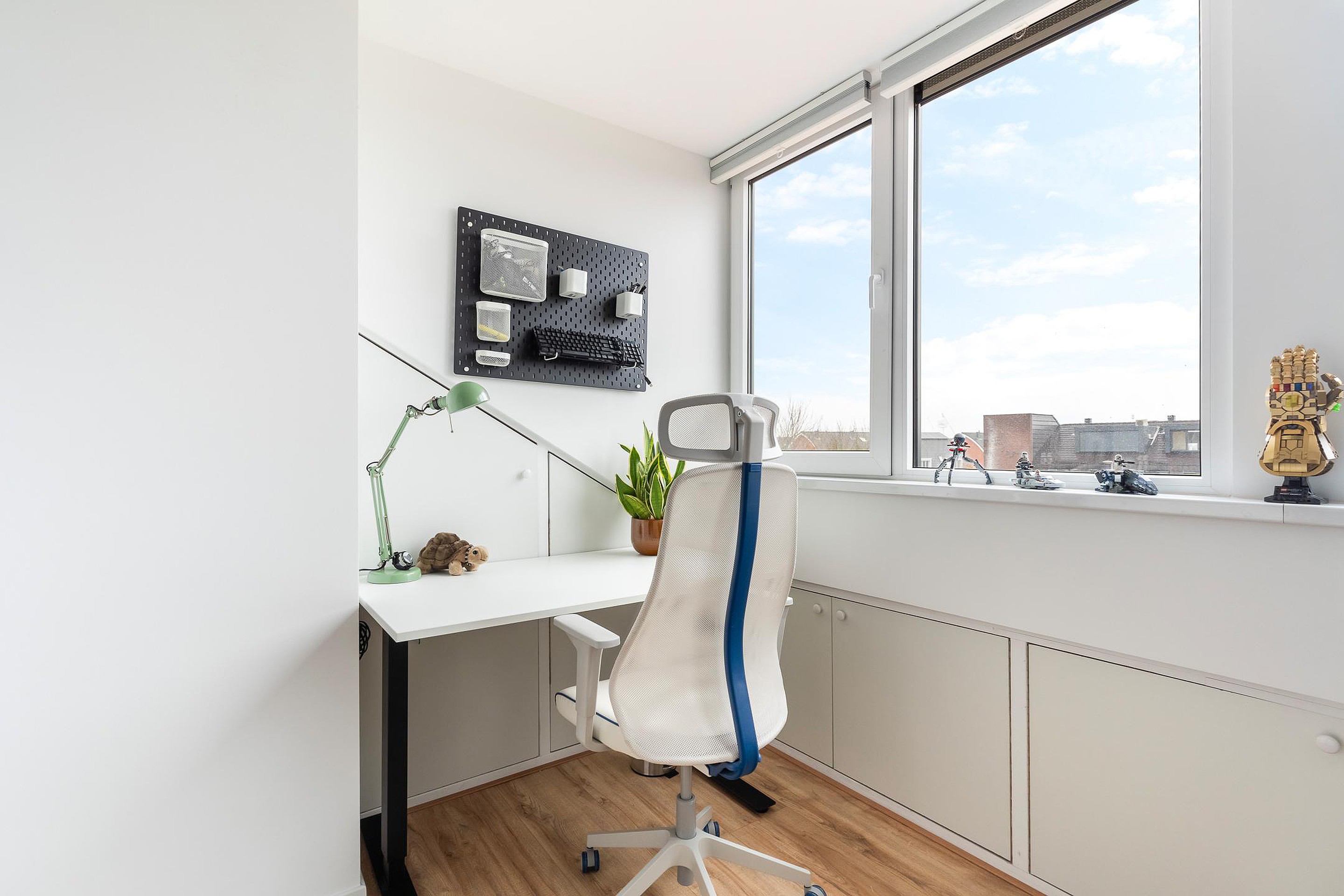 De zolder is in 2024 opnieuw ingedeeld en netjes afgewerkt met twee brede kunststof dakkapellen. Hierdoor zijn twee mooie, lichte slaapkamers ontstaan, beide met vaste kastruimte en handige bergruimte achter de knieschotten. Ook vind je hier een tweede moderne badkamer met inloopdouche, zwevend toilet en wastafelmeubel – perfect voor een groter gezin of logees.