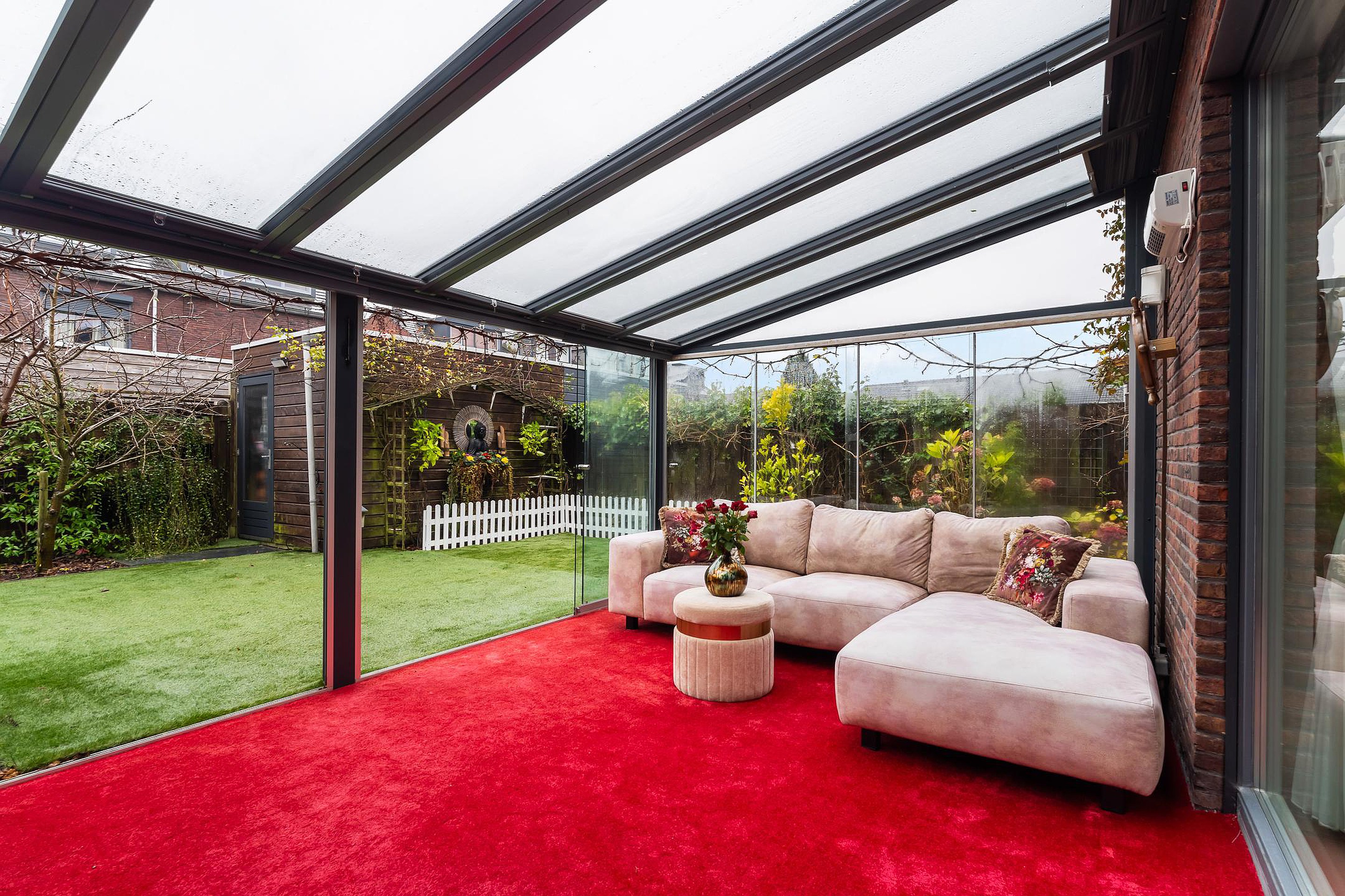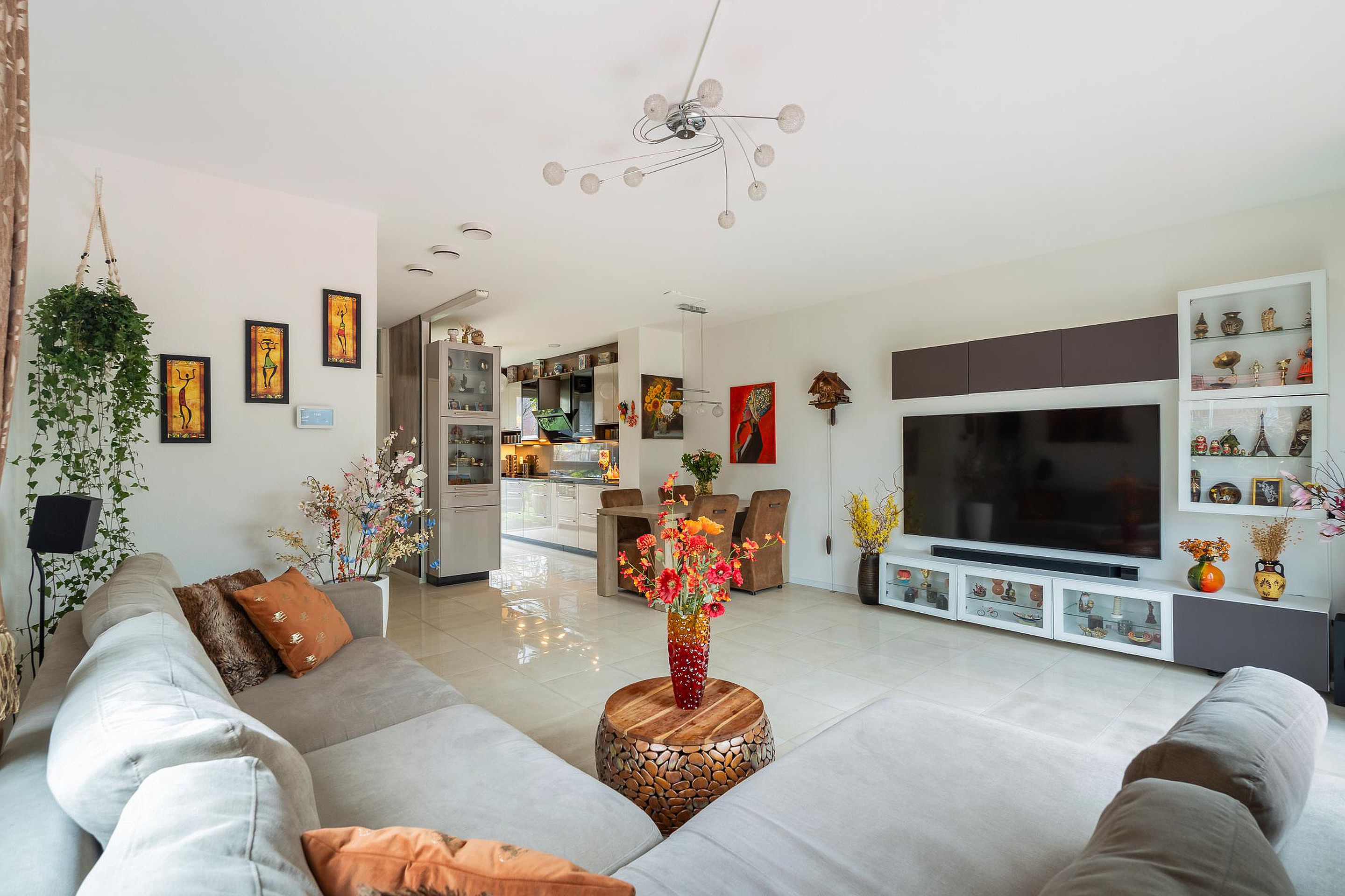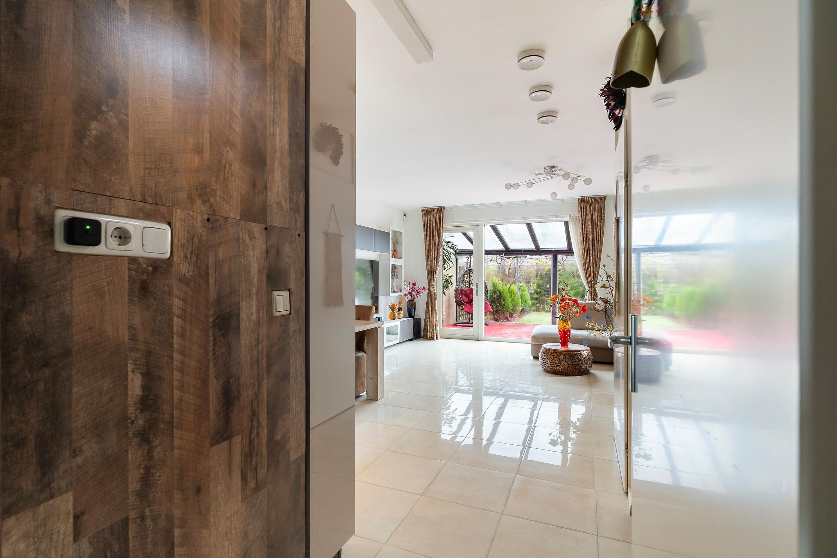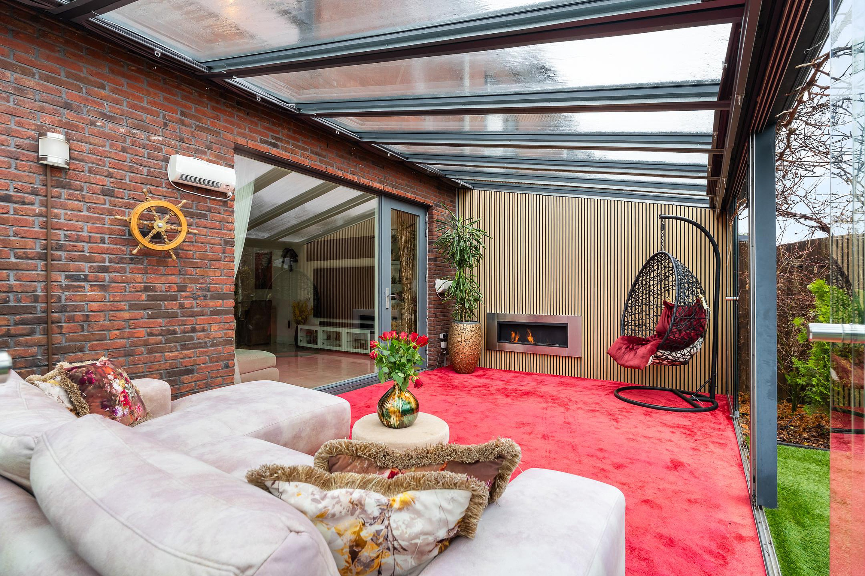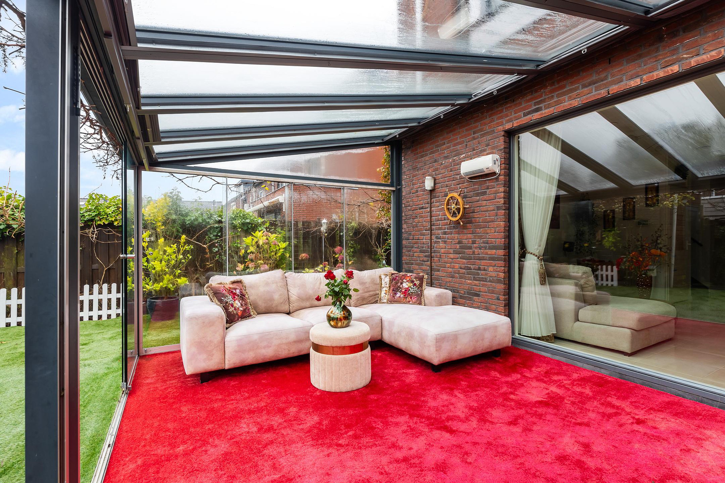 De woonkamer is tuingericht en extra licht door het zijraam, met een prachtige tegelvloer, vloerverwarming en openslaande deuren naar de ruime serre van maar liefst 19 m2. In de serre kun je het hele jaar door genieten dankzij de schuifdeuren, een bio-ethanol open haard, een infraroodpaneel en een zonnescherm – ideaal voor alle seizoenen.