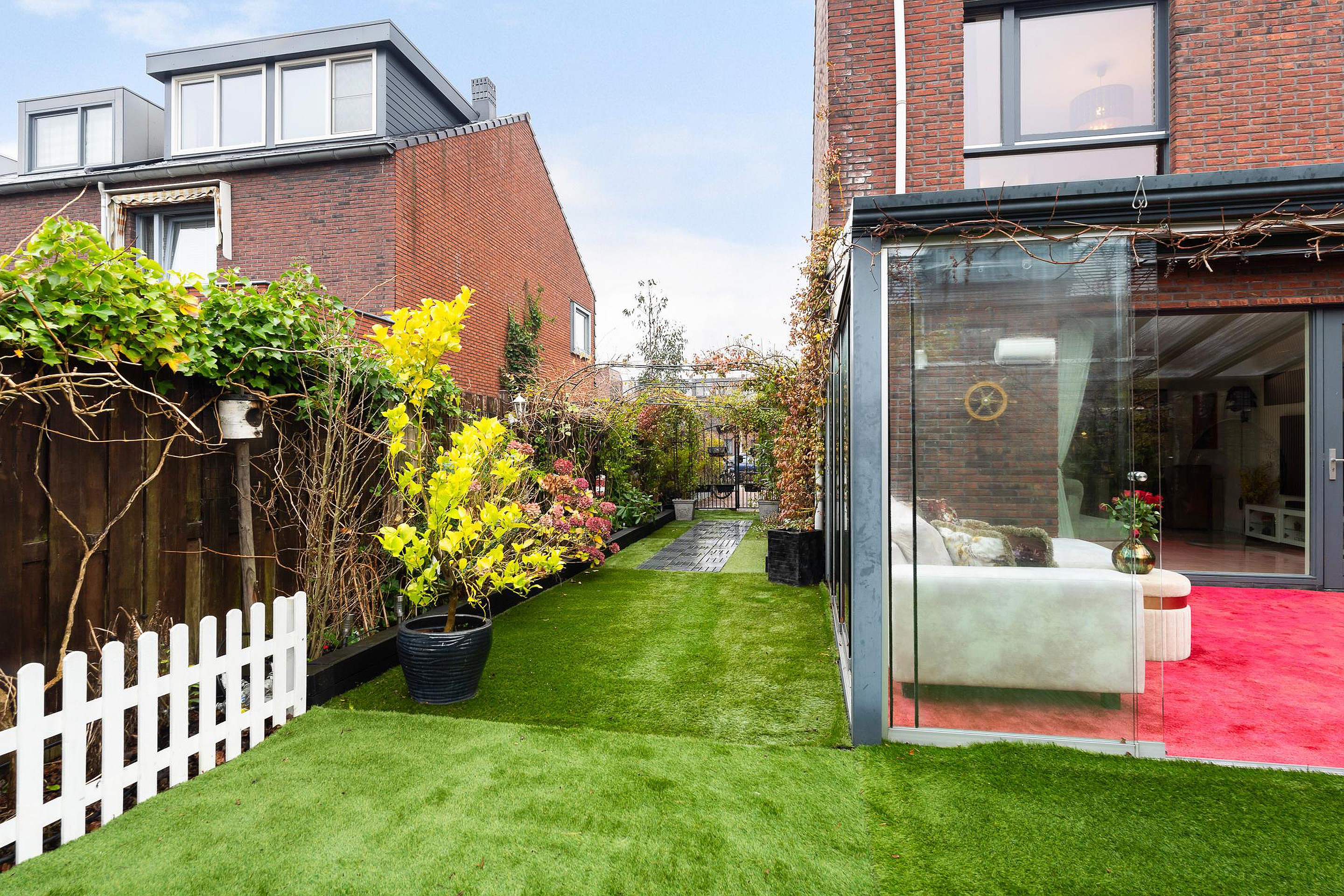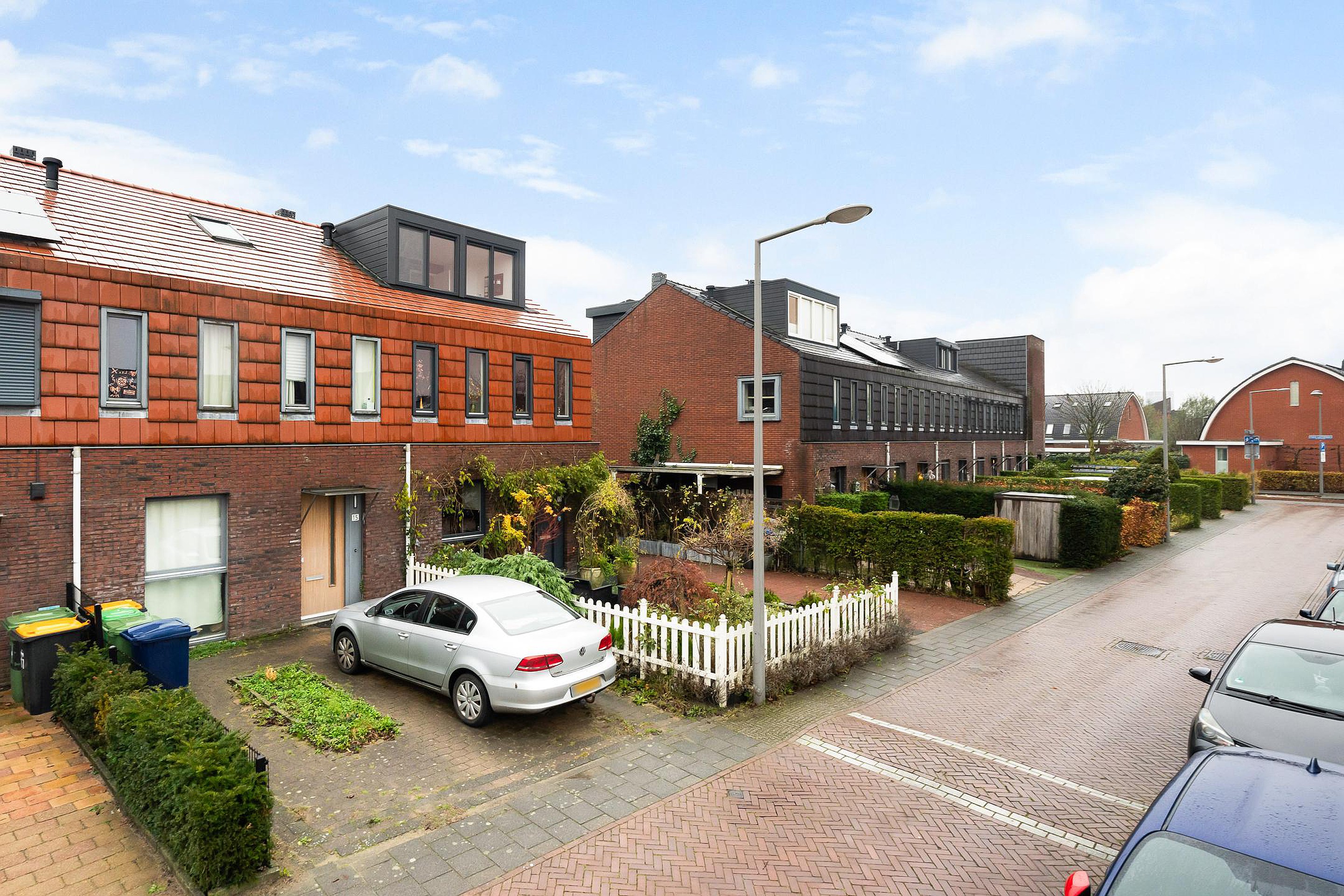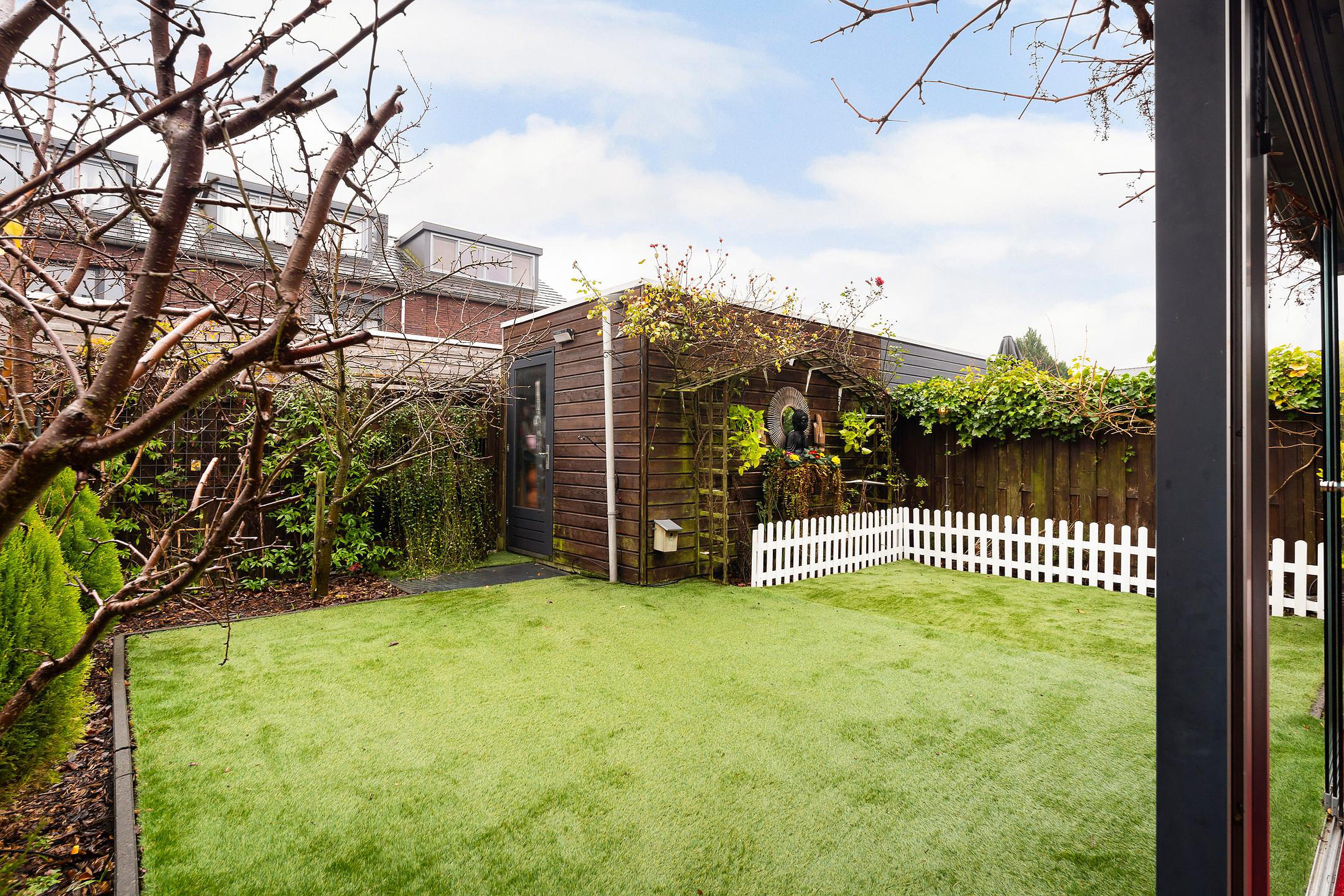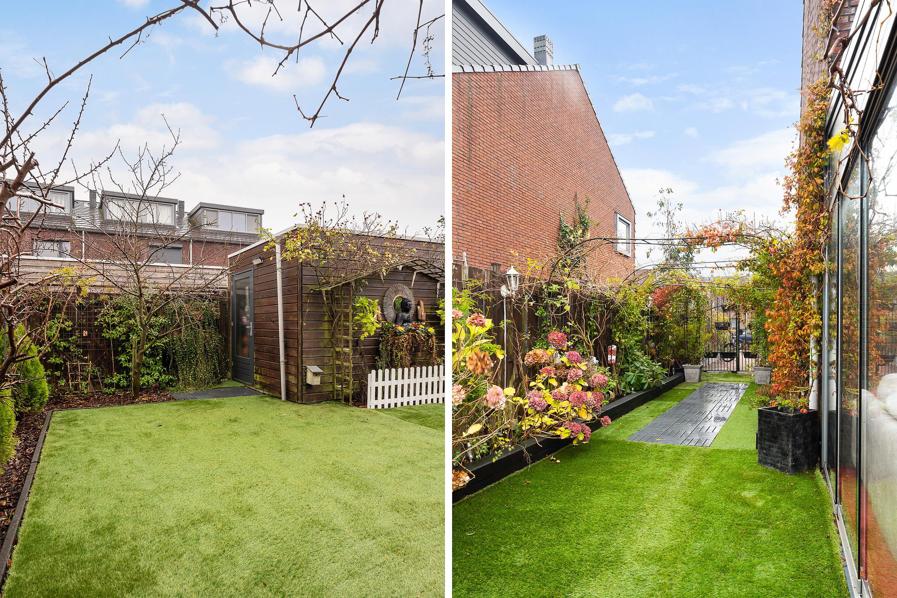 Achterin staat een houten berging en via de achterom is de tuin makkelijk te bereiken. En parkeren? Dat doe je gewoon op je eigen oprit, met plek voor twee auto's.