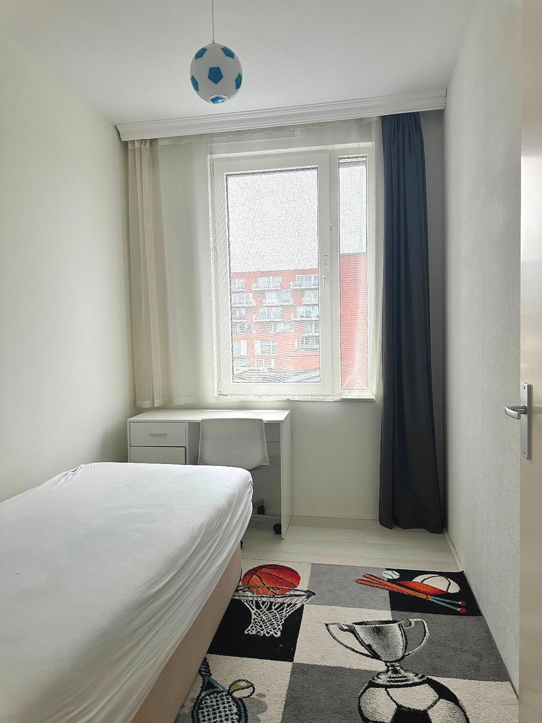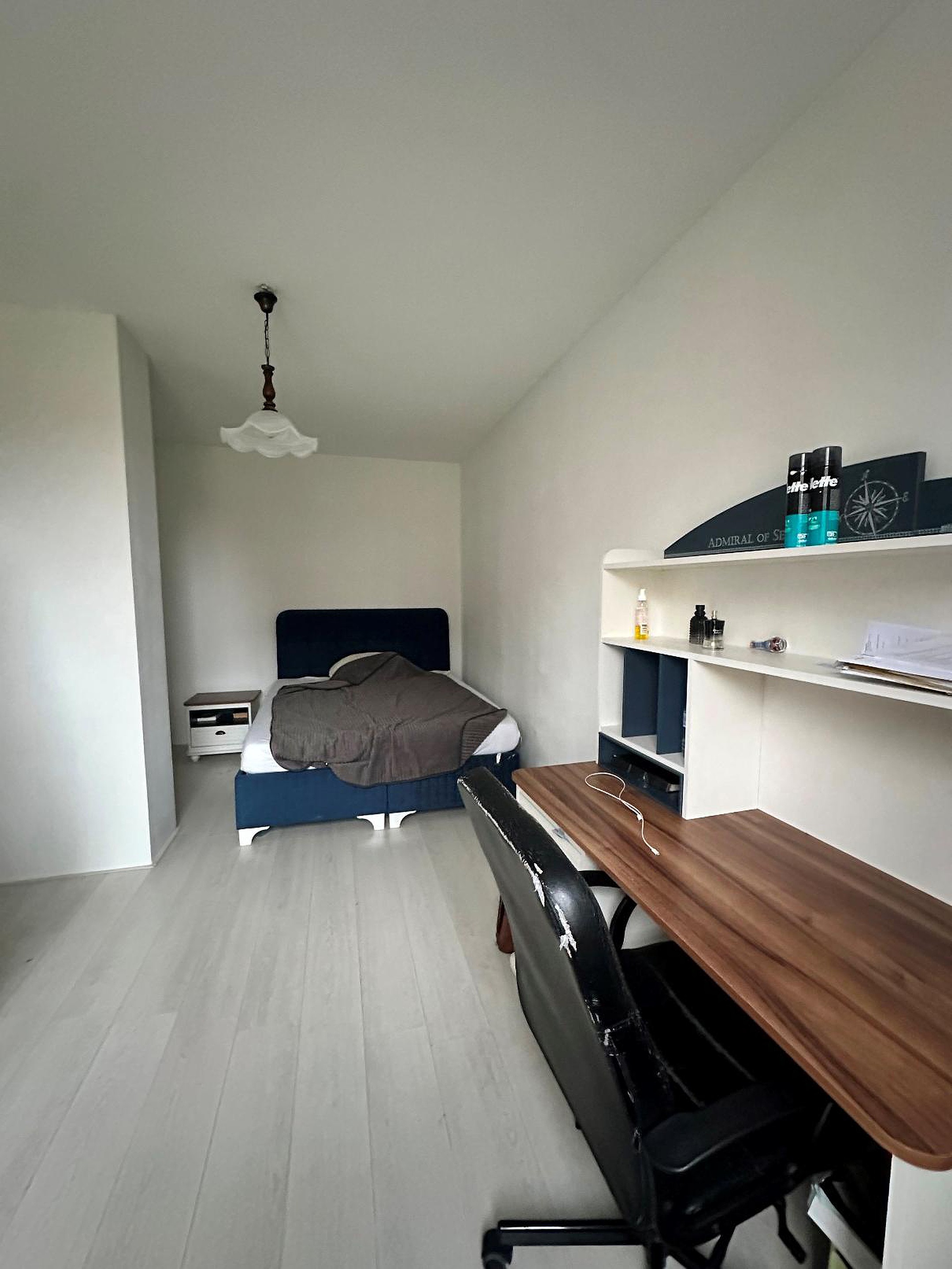 Tweede verdieping Volwaardige vierde slaapkamer/zolderkamer over de volle diepte met Frans balkon aan de voorzijde (flexibel in te delen als master, werk-/hobbyruimte of speelverdieping).