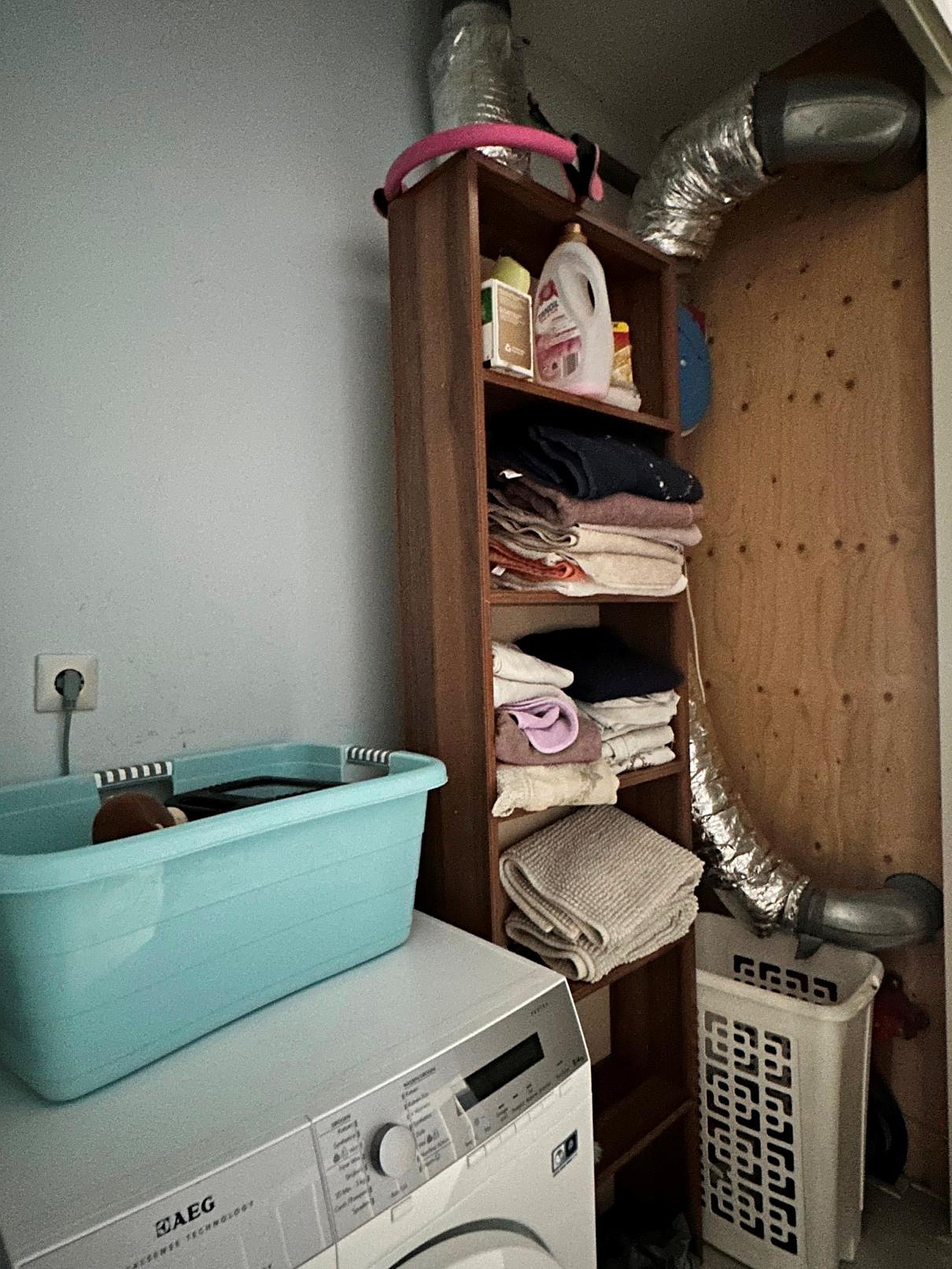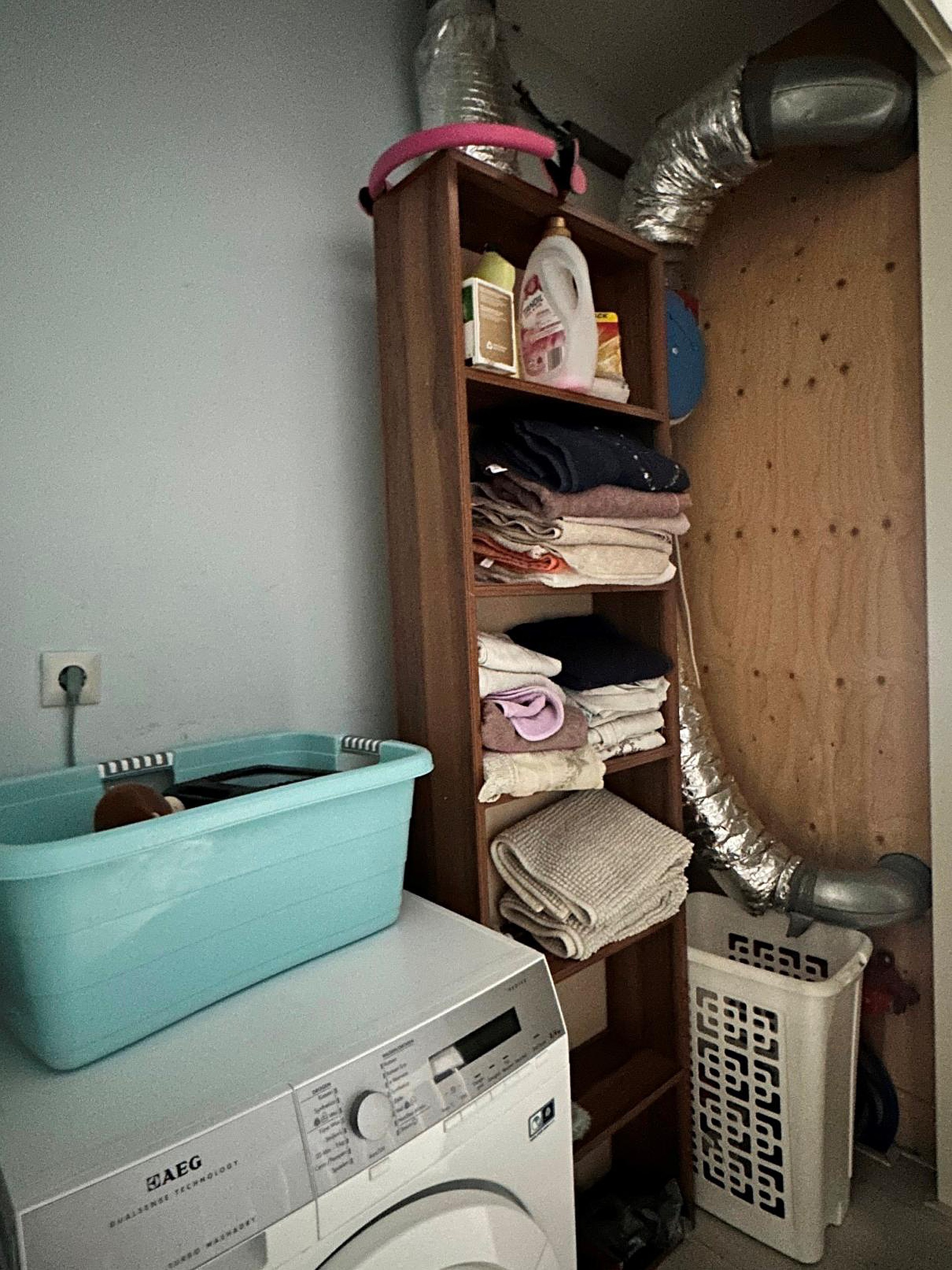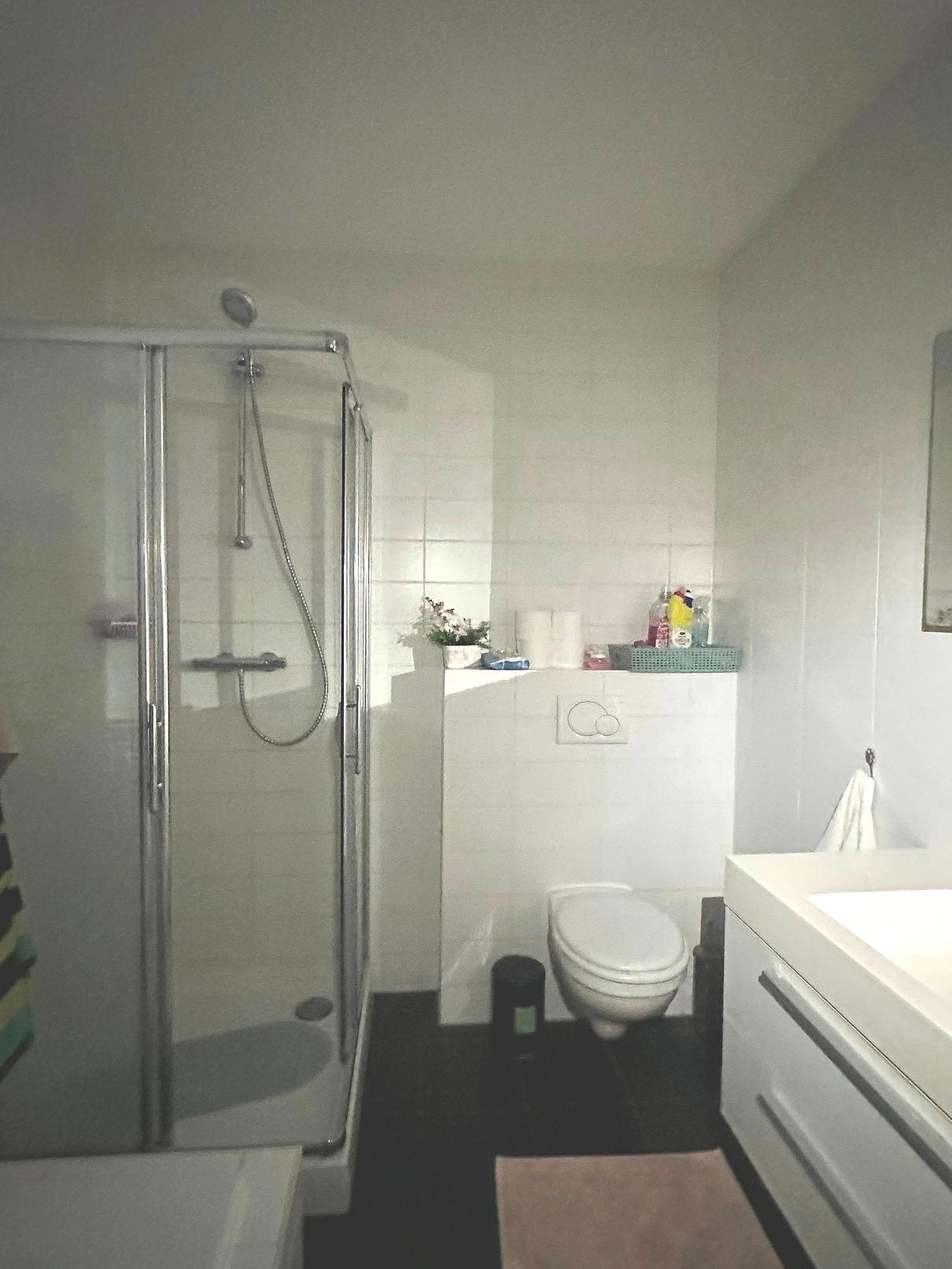 Eerste verdieping Overloop met separate kast voor wasmachine/droger. Drie slaapkamers (waarvan één aan de voorzijde met Frans balkon). Badkamer met ligbad, douche, tweede toilet en wastafelmeubel.