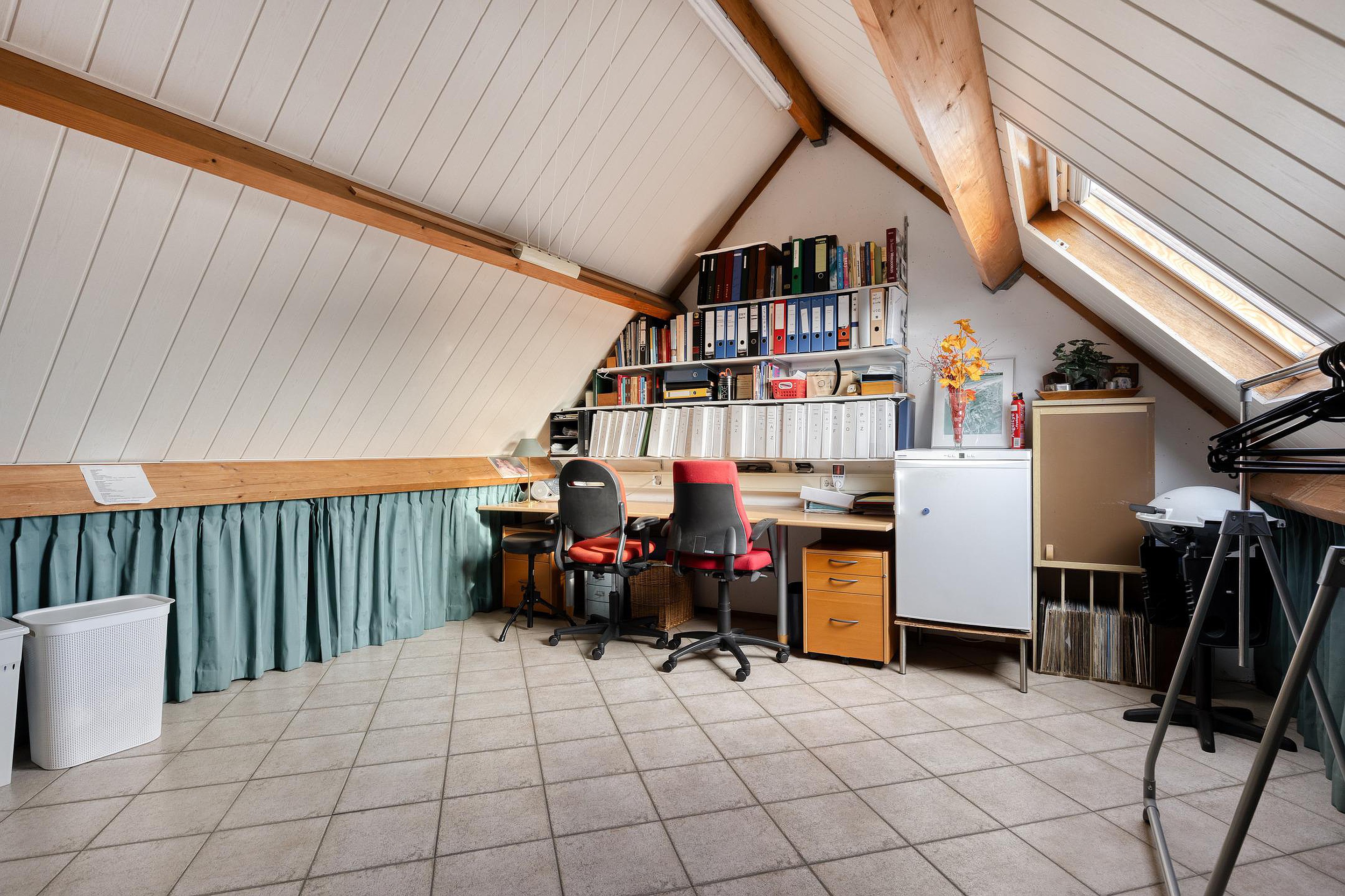 2e verdieping: ruime zolderkamer met een dakraam, bergruimte in de knieschotten, opstelplaats CV-ketel, omvormer zonnepanelen en de mogelijkheid om een 5e slaapkamer te realiseren.