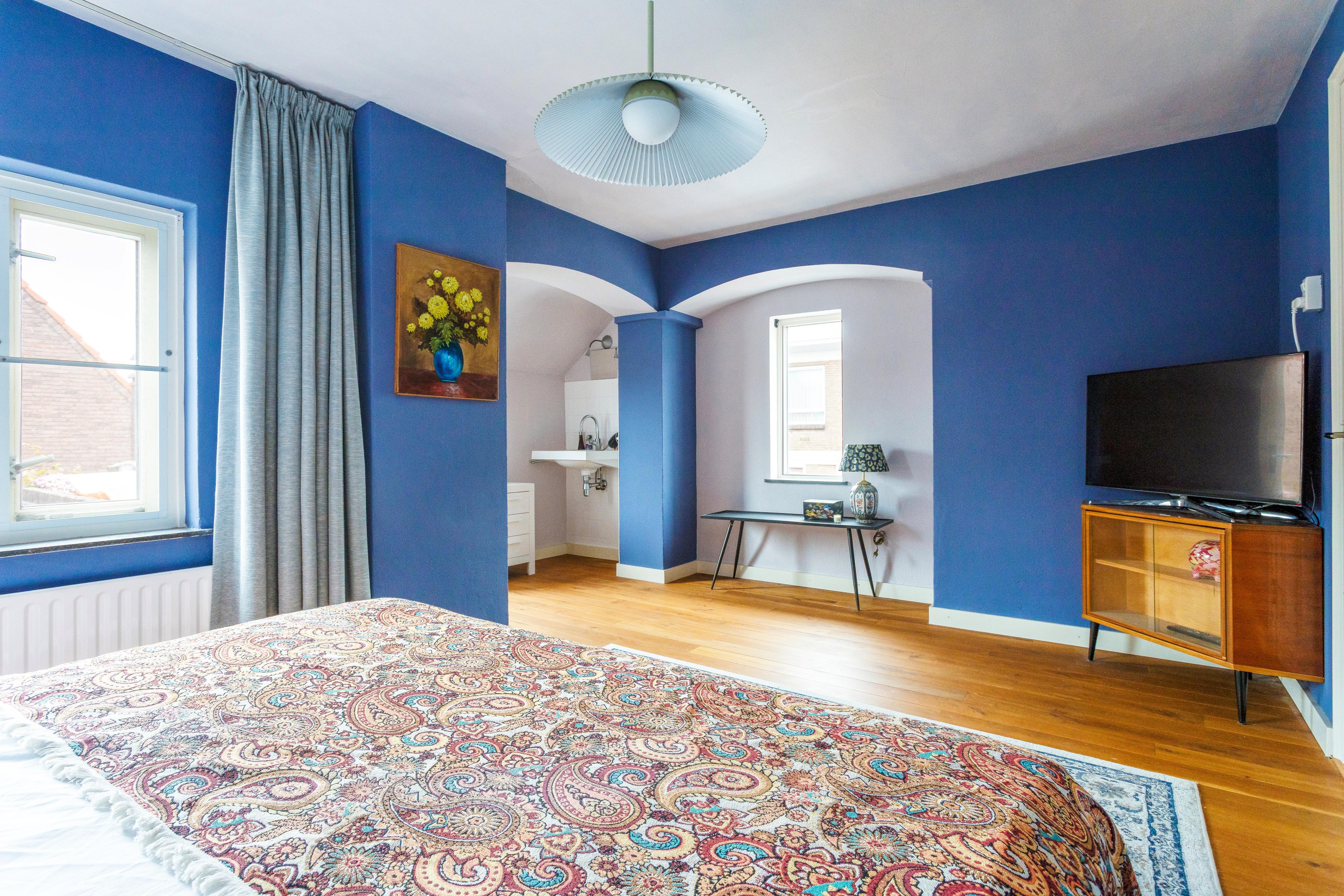 Op de eerste verdieping vindt u de overloop en twee slaapkamers. De overloop is v.v. ramen met mooie lichtinval. De achterste slaapkamer is royaal (ca. 20m2) en heeft toegang tot het dakterras. De vloeren van de slaapkamers zijn afgewerkt met laminaat of planken, de plafonds en de wanden zijn v.v. stucwerk.