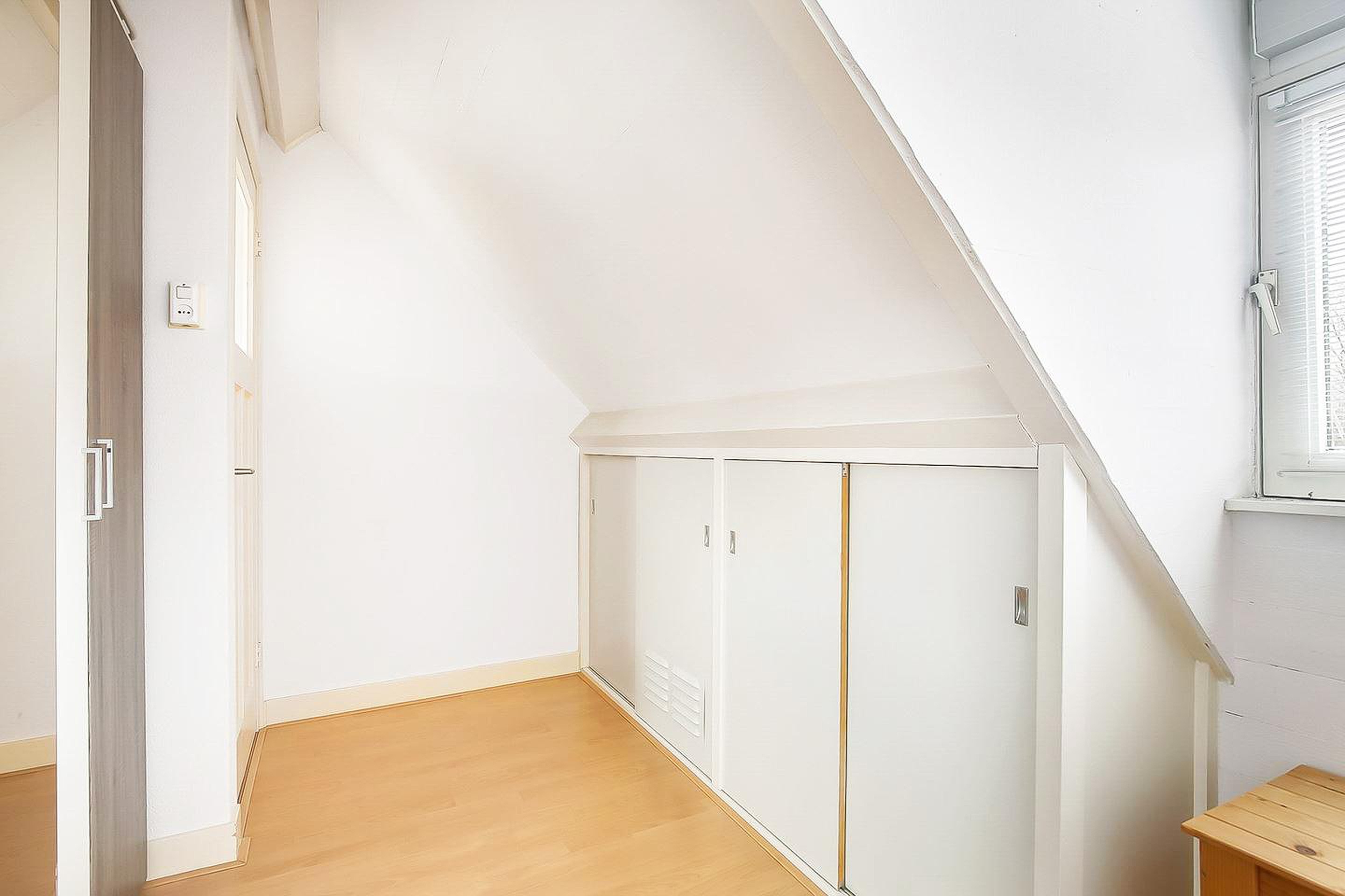 Met een vaste trap bereikbare overloop met opstelplaats witgoed in kasten. Op deze verdieping ook 2 slaapkamers v.v. dakkapellen en v.v. lichte wand- en plafondafwerking, de vloeren zijn afgewerkt met laminaat. De voorste slaapkamer is v.v. vaste kasten.