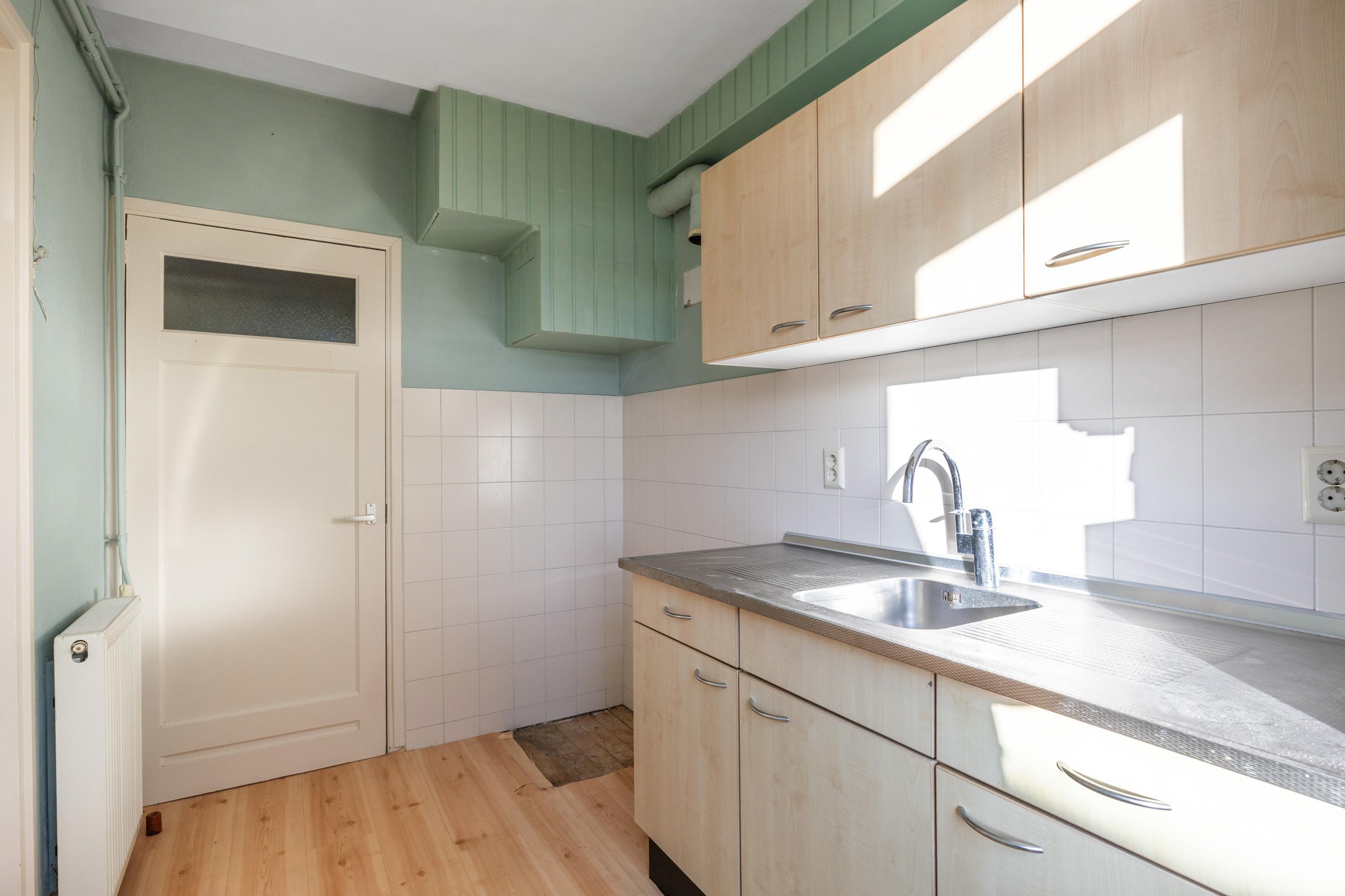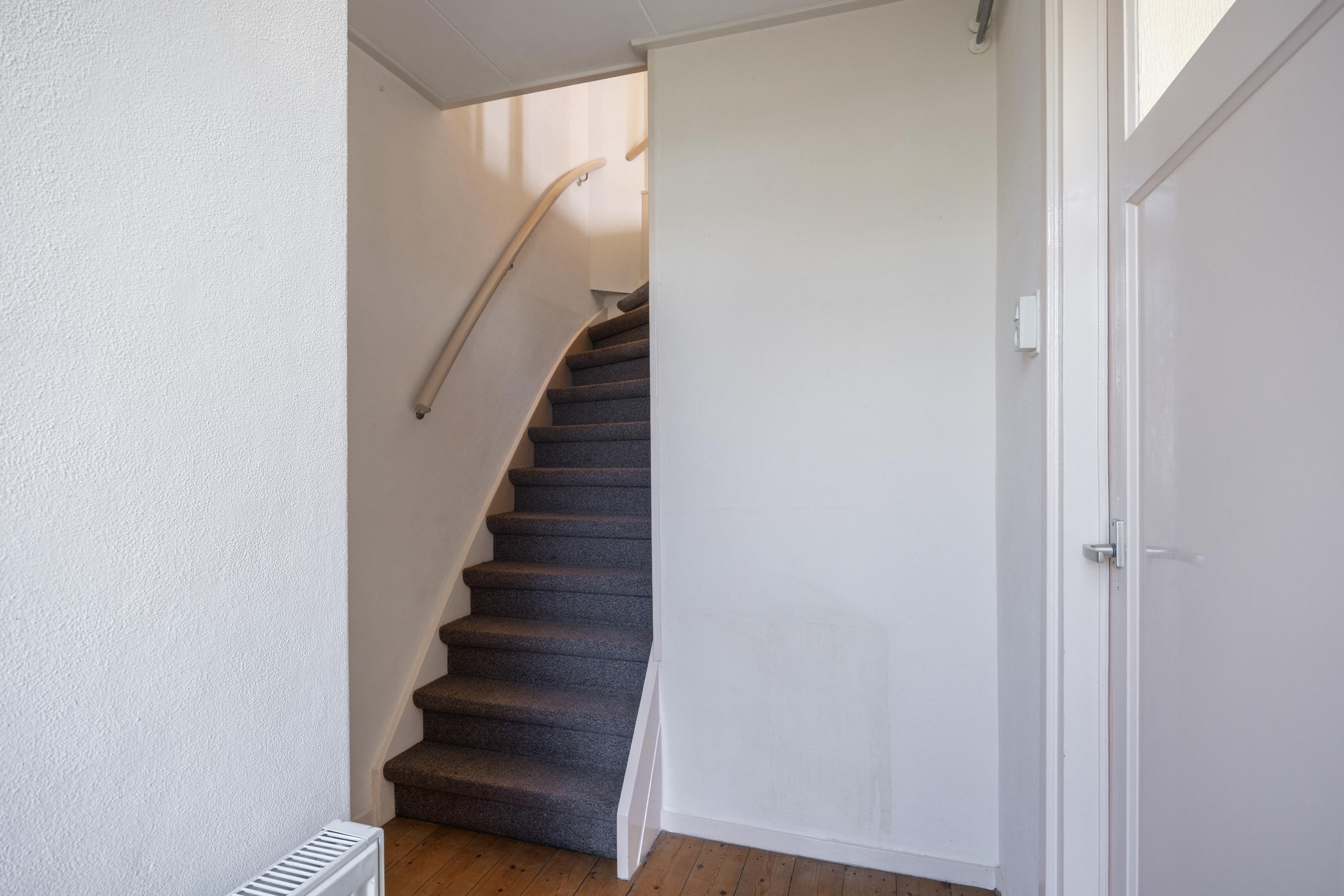 Entree met meterkast, toilet, trapopgang en doorgang naar de woonkamer. De woonkamer geniet van een vrij uitzicht aan zowel de voor- als achterzijde en staat in verbinding met de gesloten keuken. De keuken is voorzien van een eenvoudig basis keukenblok zonder installaties en beschikt over een trapkast en de directe doorgang naar de achtertuin.