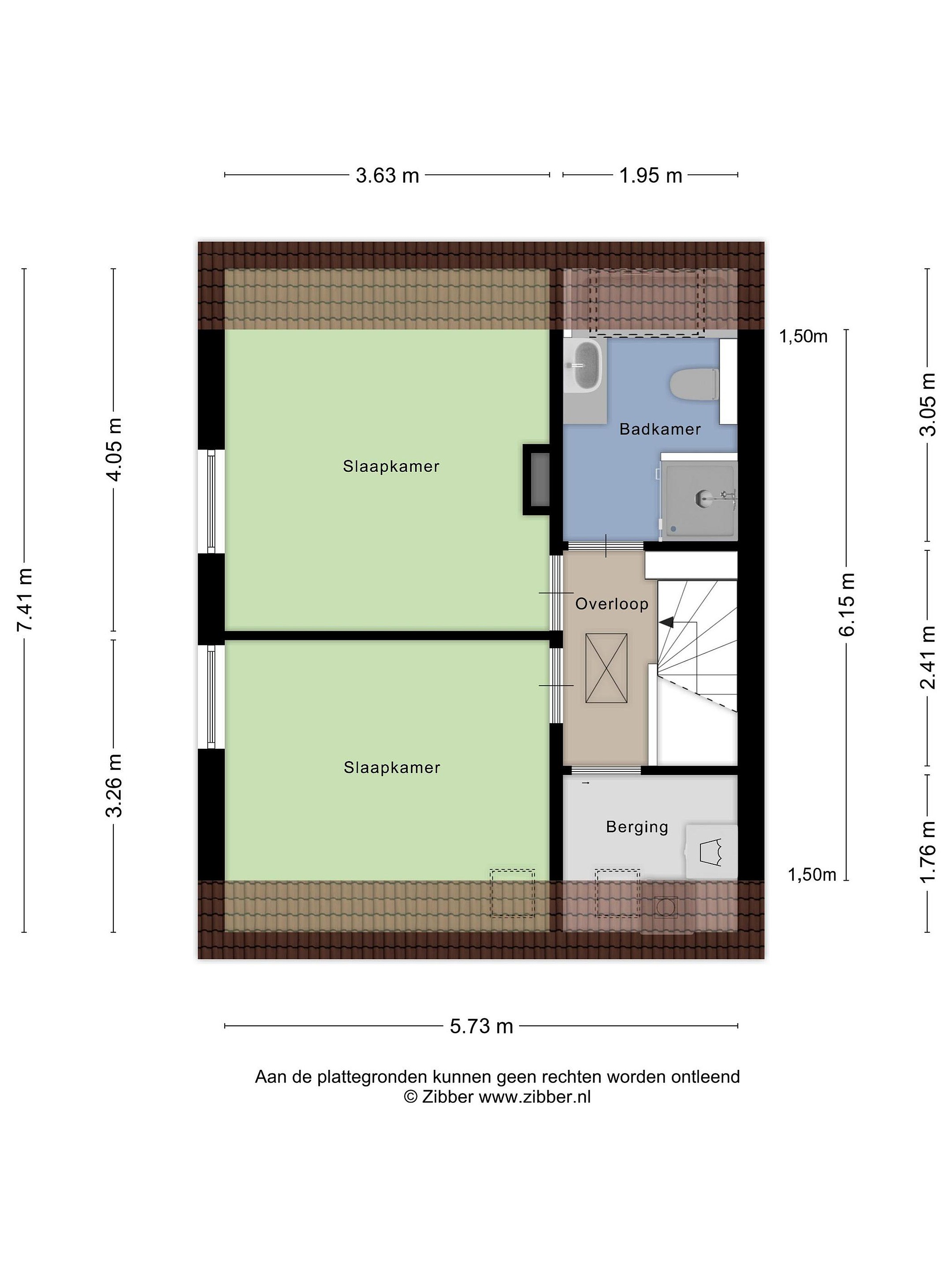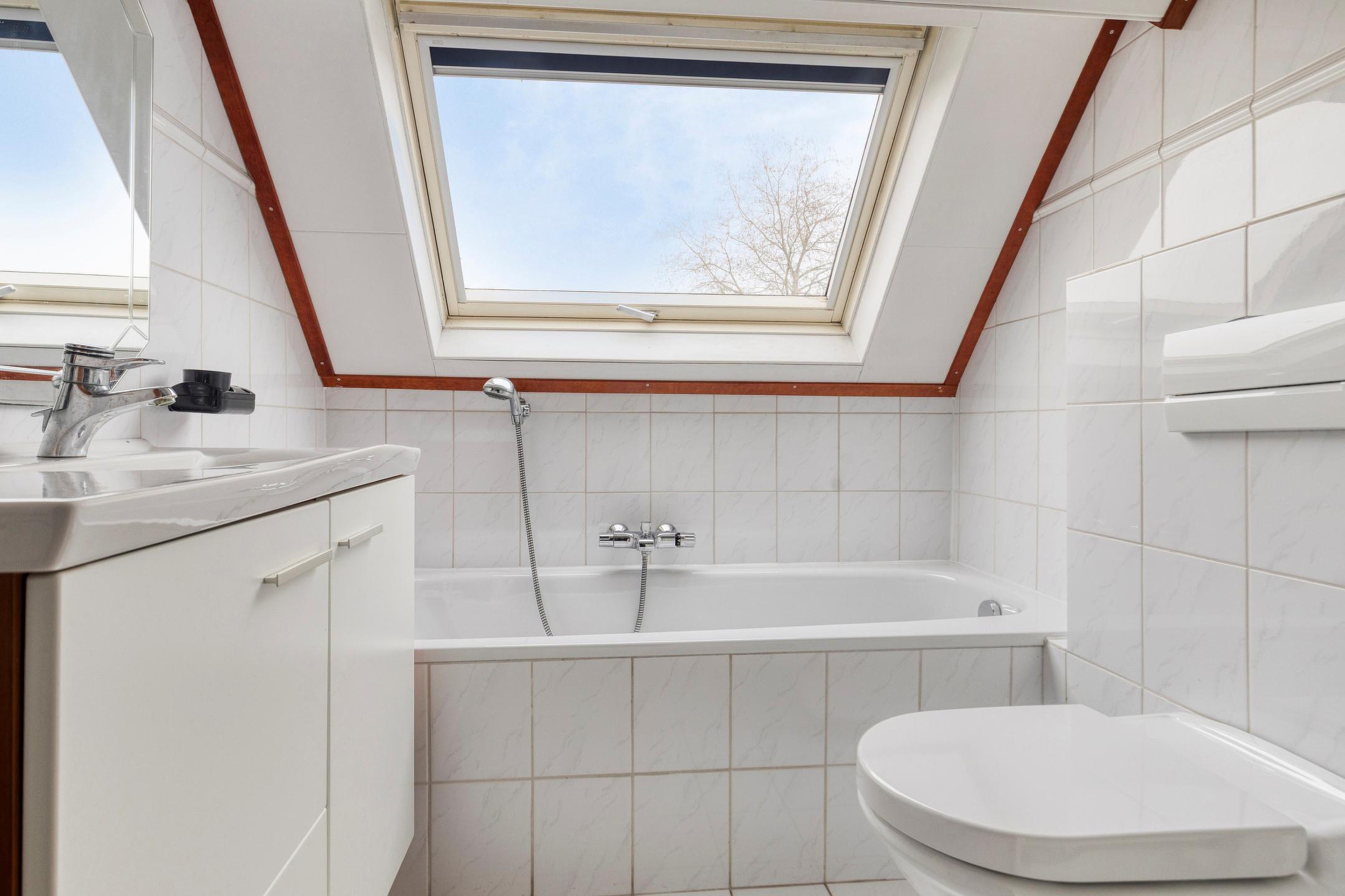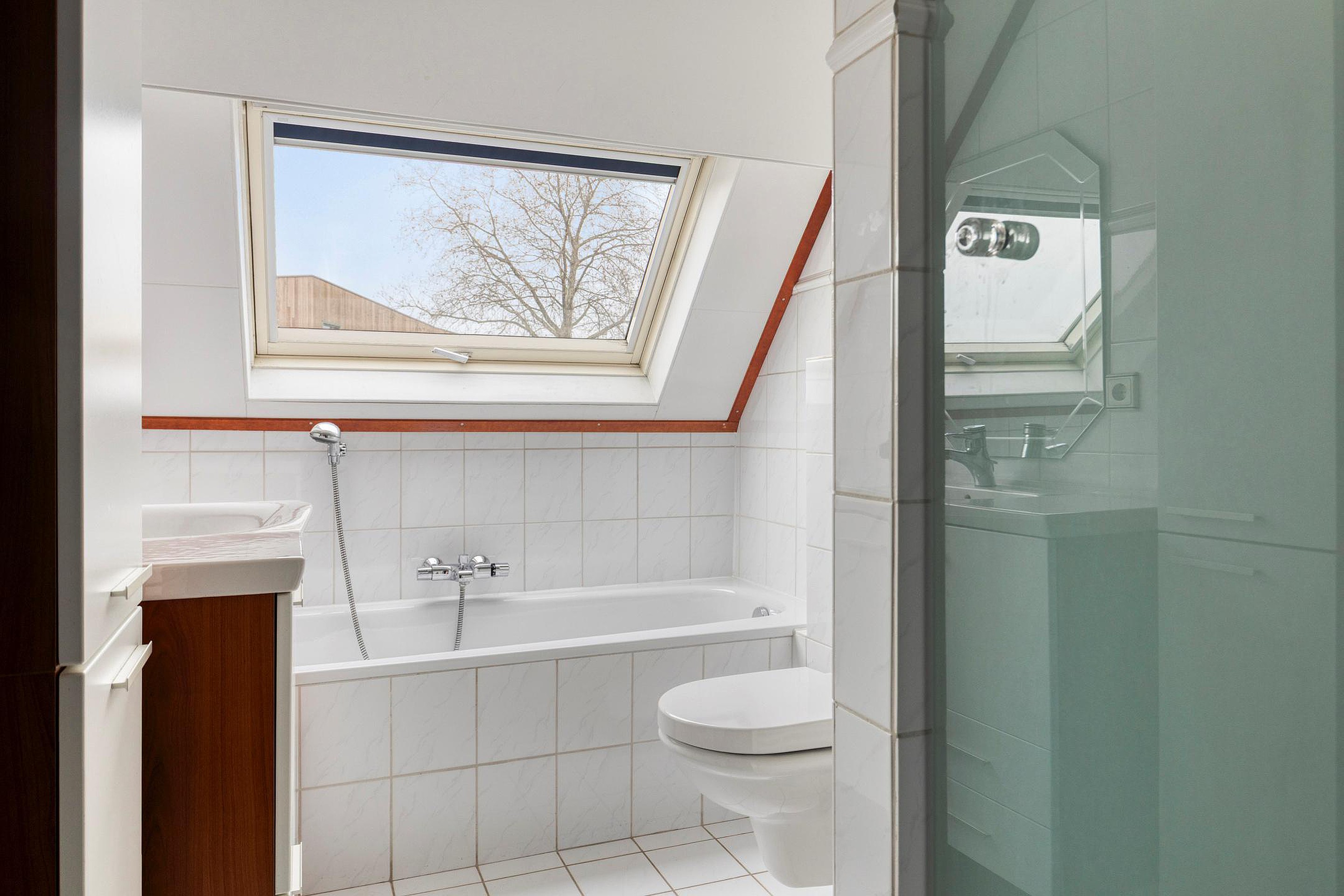 Op de eerste verdieping zijn twee slaapkamers, de badkamer en een berging gesitueerd. Via de overloop is ook de zolder bereikbaar, ideaal als extra bergruimte.