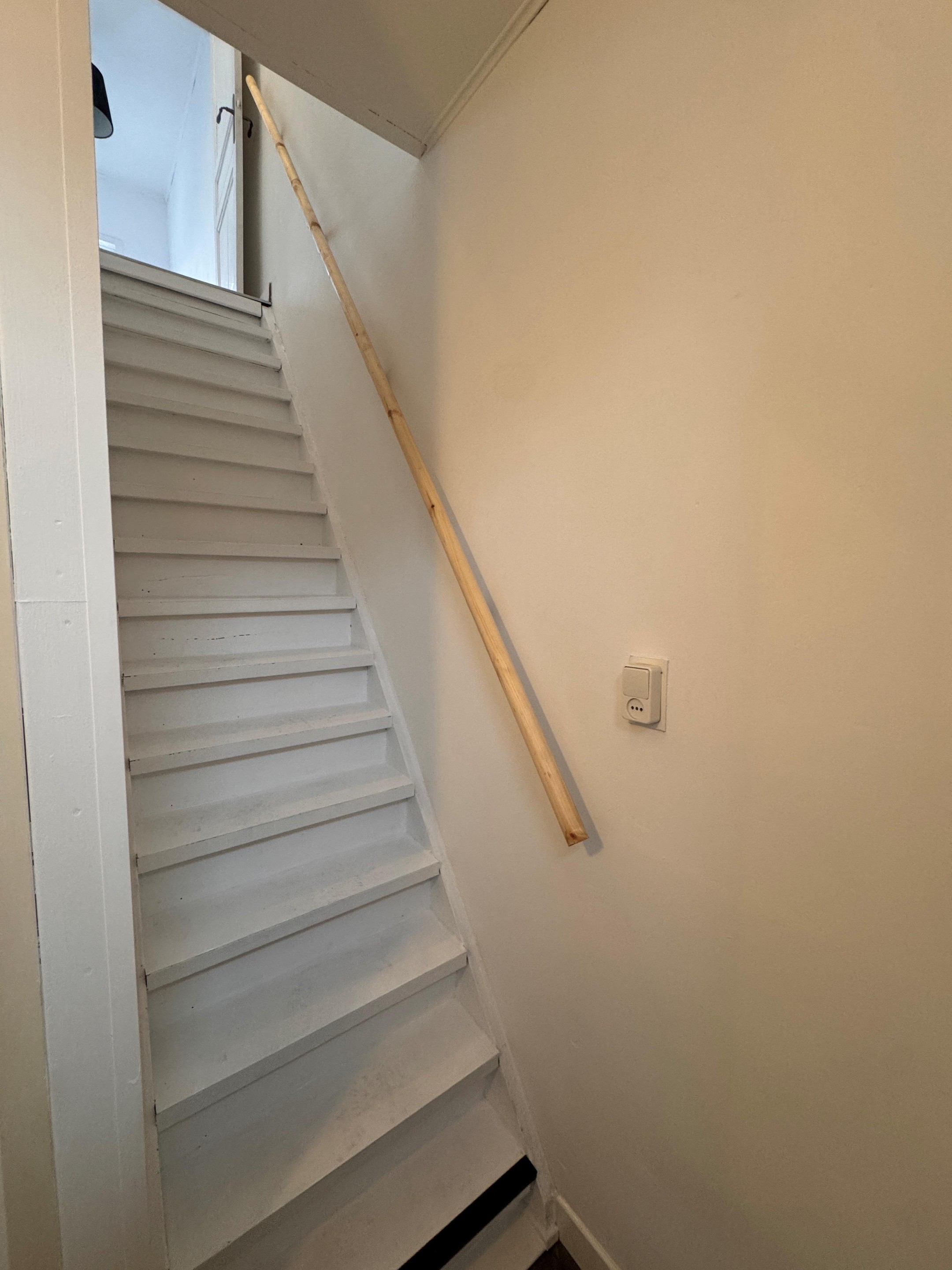 De begane grond beschikt over een lichte woonkamer met voldoende ruimte voor een gezellige zit- en eethoek. Aansluitend vind je de keuken en de badkamer.