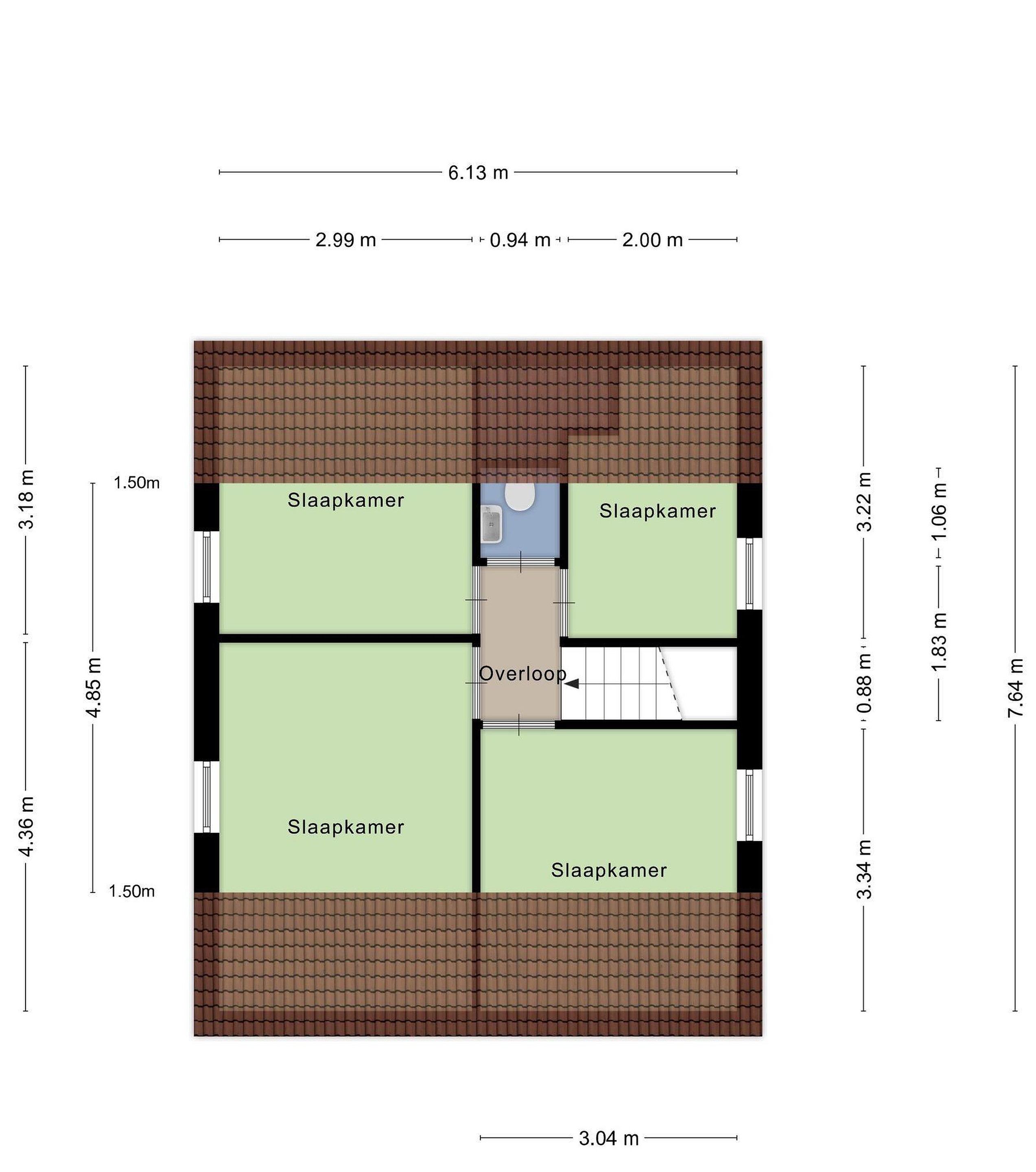 Vanaf de overloop op de 1e verdieping is er toegang tot de vier slaapkamers en het 2e toilet.