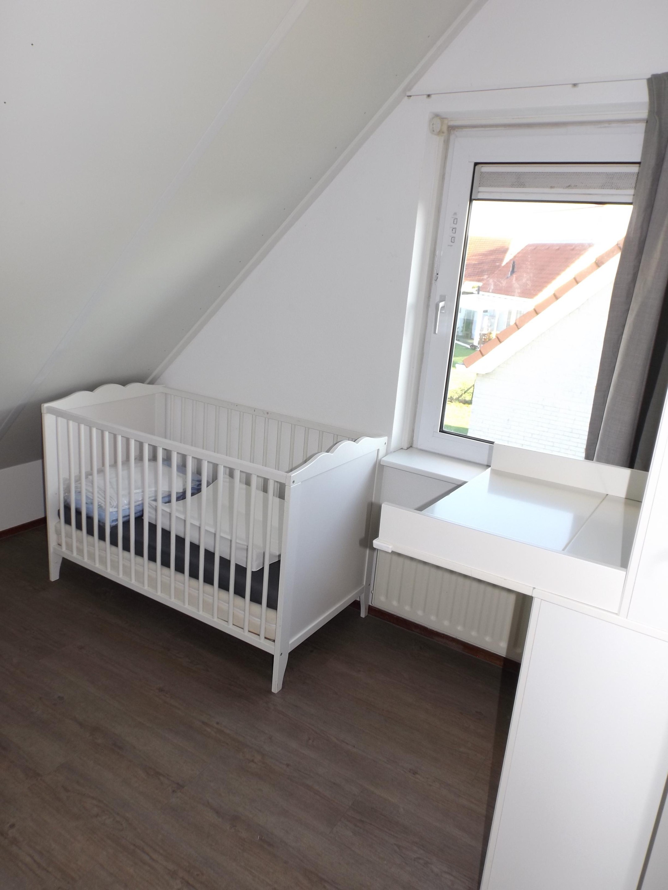 De 4e slaapkamer is voorzien van een kinderledikantje en een commode.