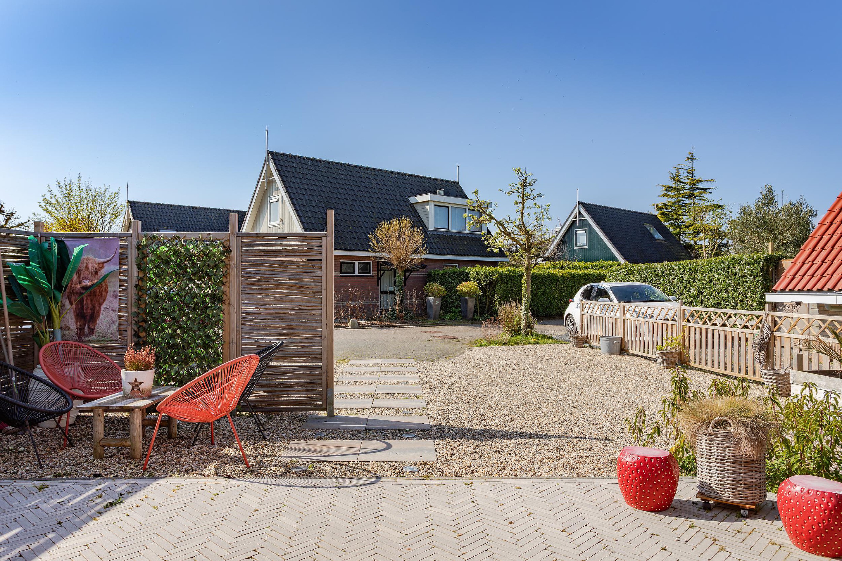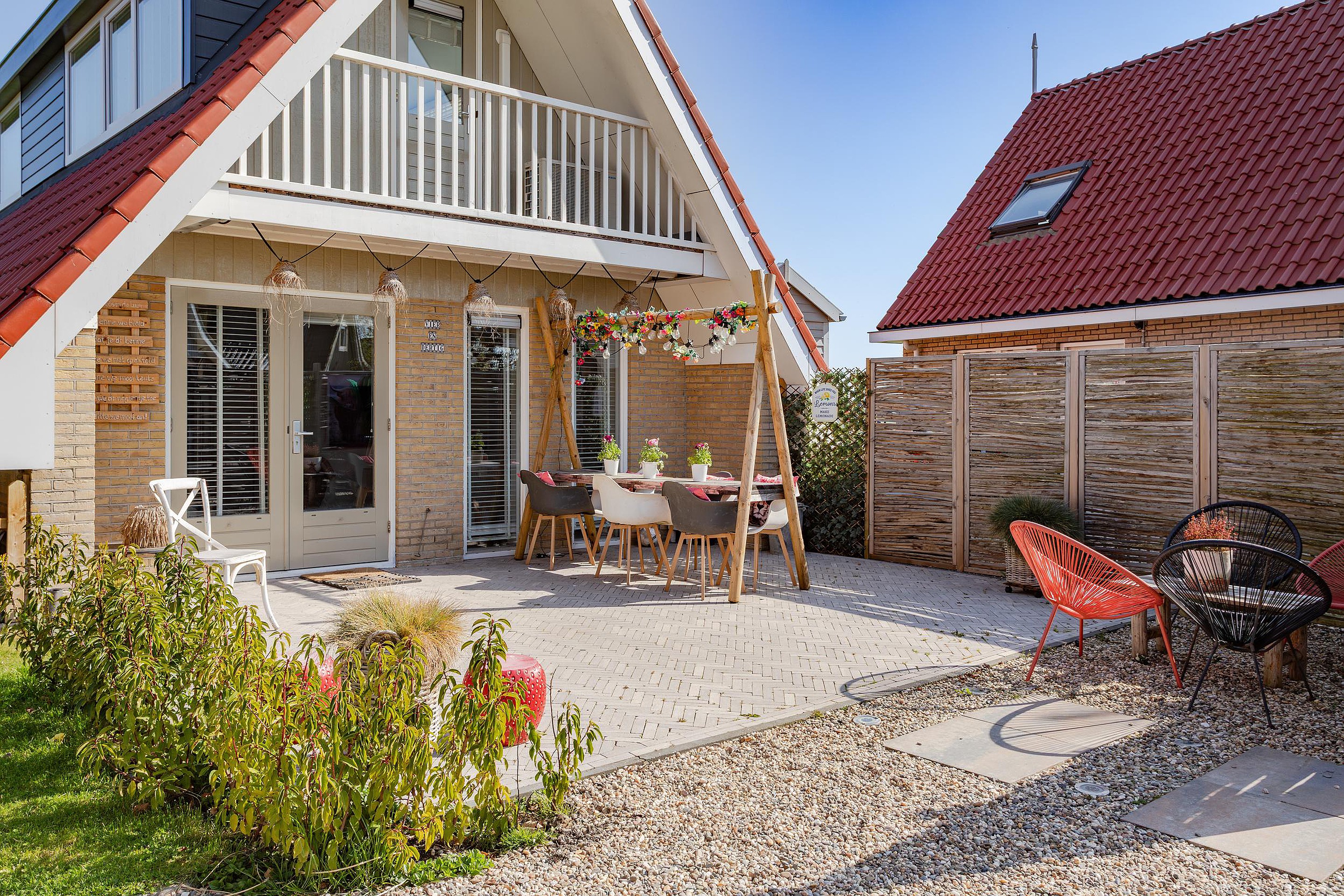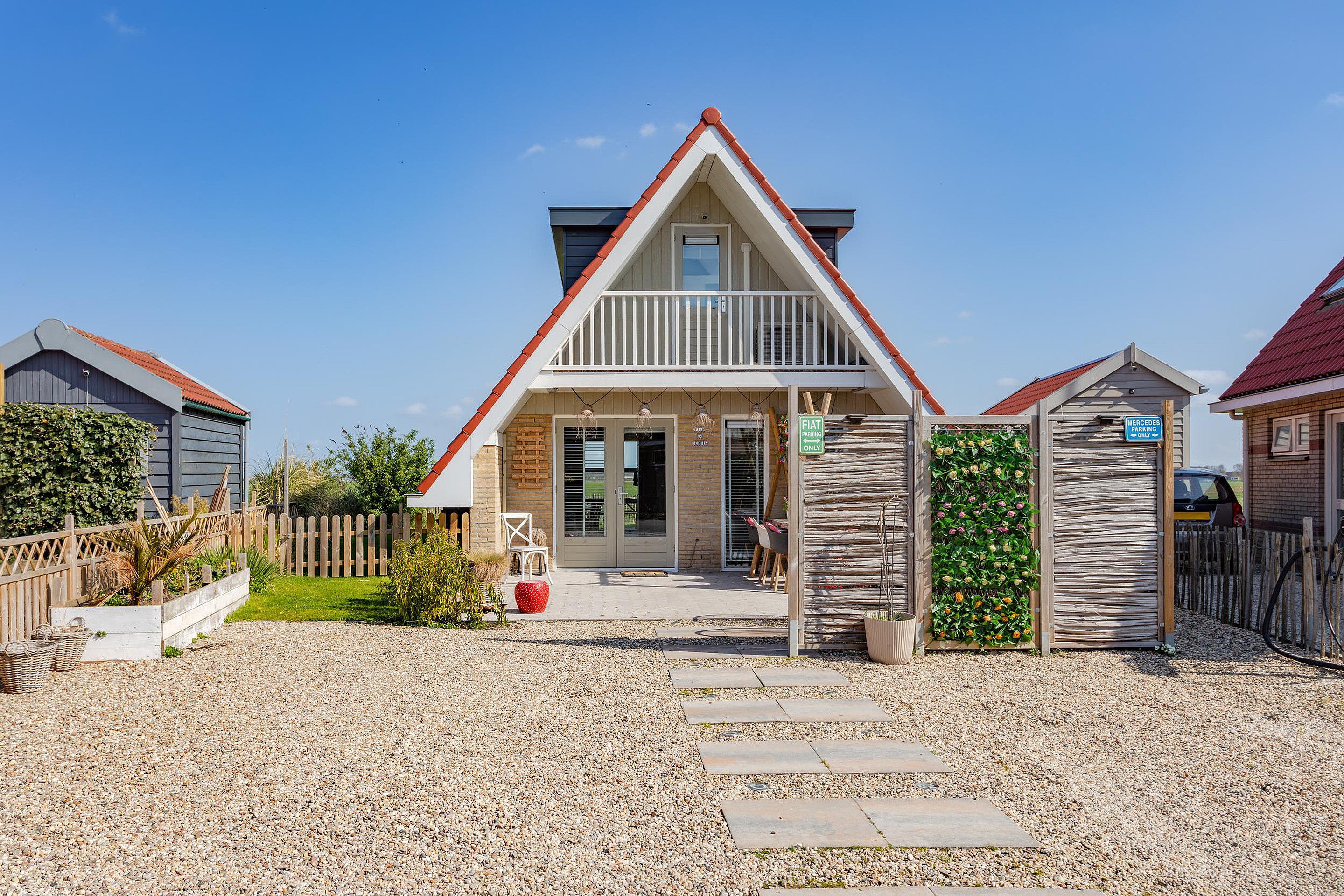 Gasten kunnen parkeren op het grote parkeerterrein aan het begin van het park en daar bevinden zich ook de brievenbussen en vuilcontainers. Parkeren kan met meerdere auto’s op eigen terrein en via het gezellige terras met schutting heeft u toegang tot de woning. Er ligt tuinverlichting in het pad naar de woning en er is een zijentree maar in Westfriesland komt goed volk “achterom” dus gaat men via de openslaande deuren naar de living.