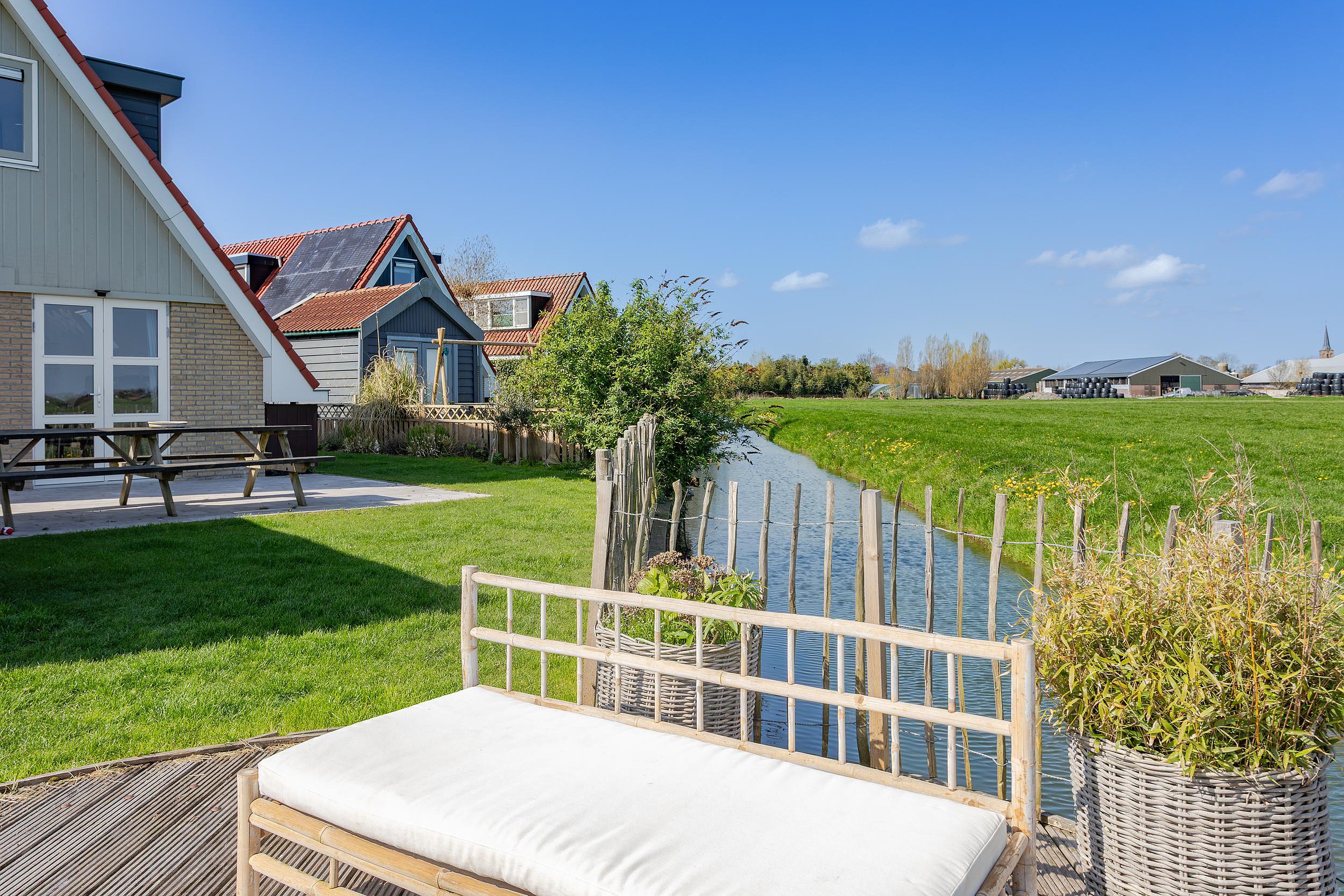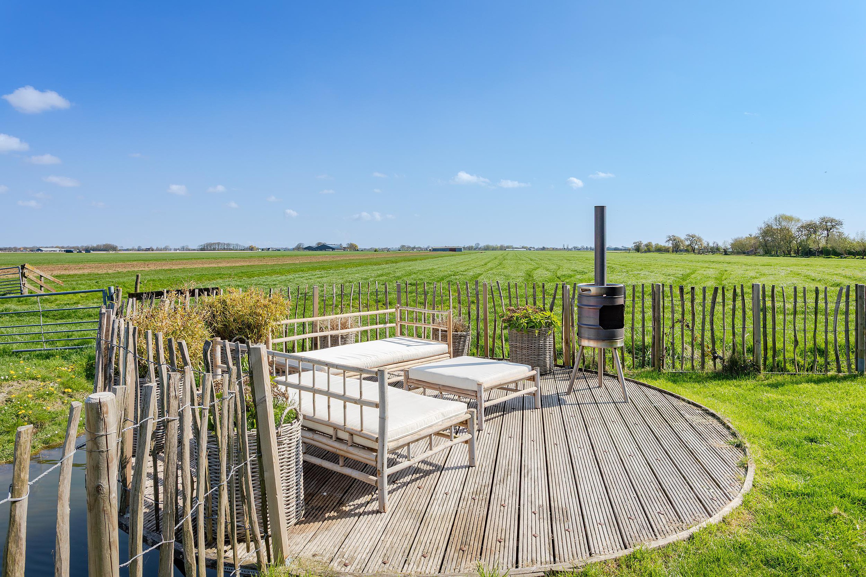 De tuin is echt geweldig, u kunt de hele dag van zon en desgewenst schaduw genieten want er is aan de voorzijde van de woning een fijn terras maar ook achter de woning is een groot terras aangelegd en een waterterras. De keuze is reuze zullen we maar zeggen! Het uitzicht is spectaculair met zicht over de weilanden.