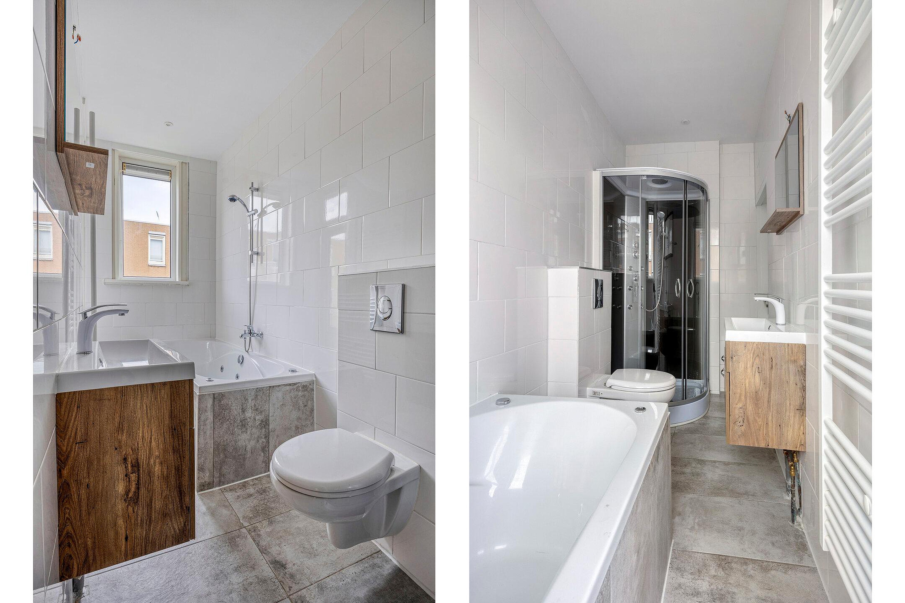 Overloop met toegang tot een slaapkamer aan de voorzijde, een slaapkamer aan de achterzijde en een badkamer voorzien van ligbad, douche, toilet en wastafelmeubel. Vanuit de badkamer is er toegang tot balkon.