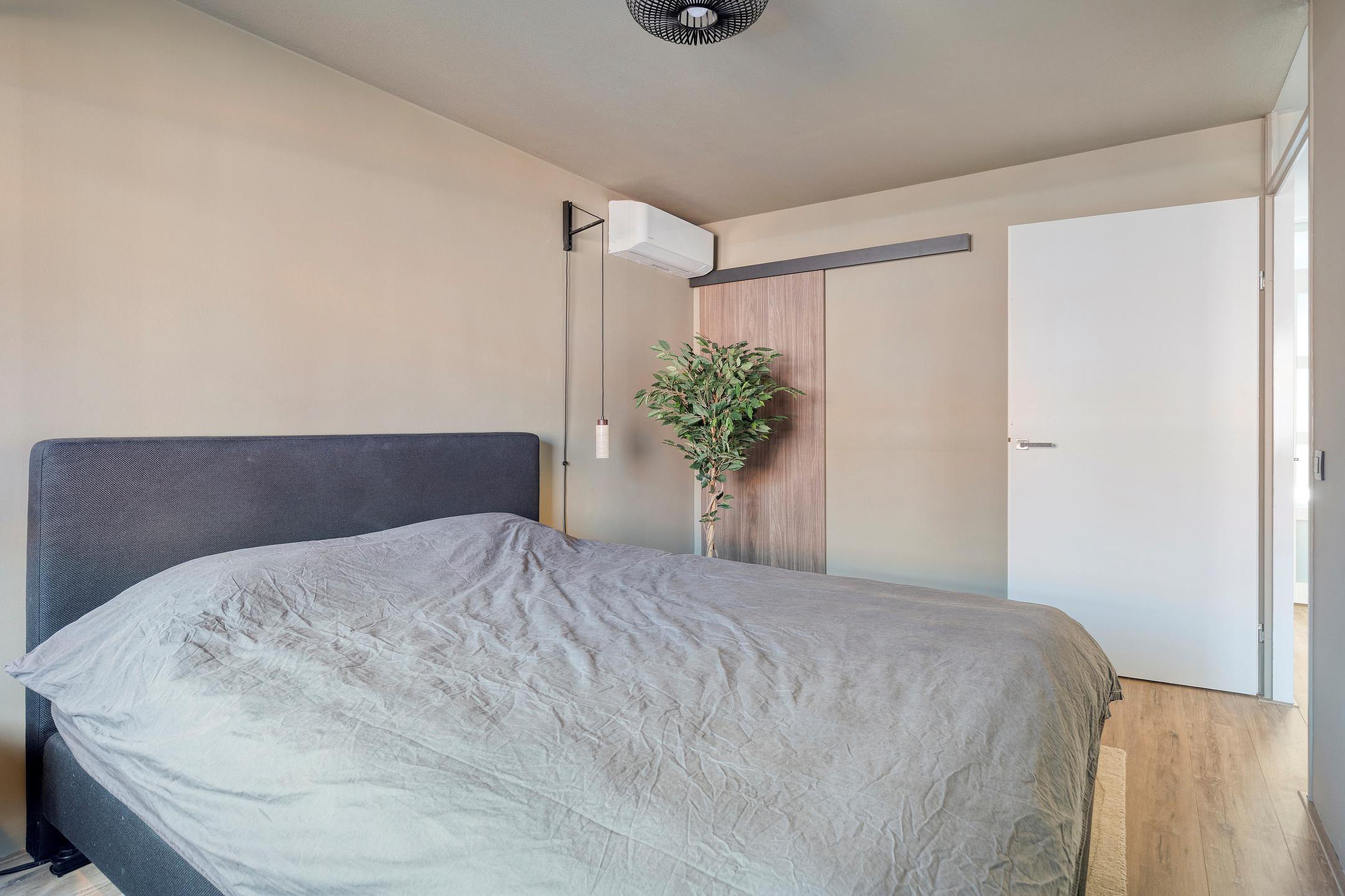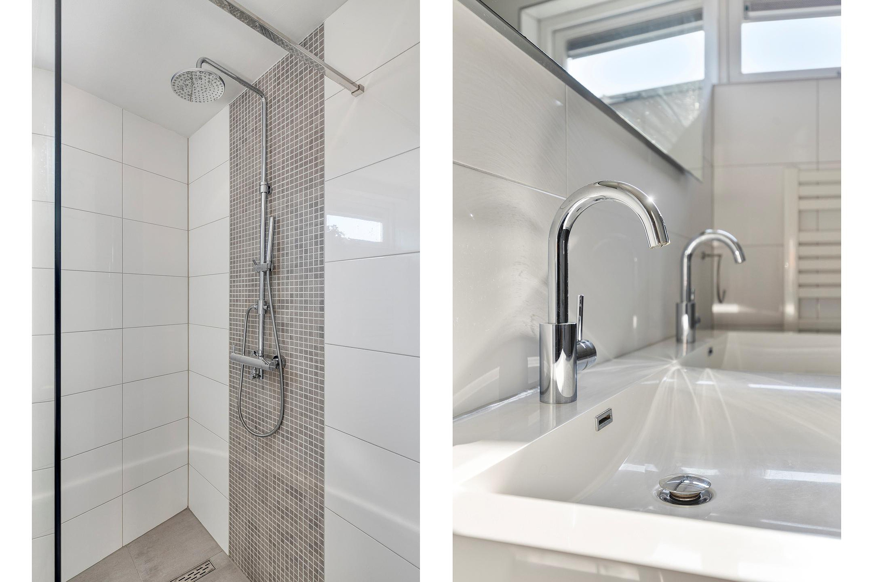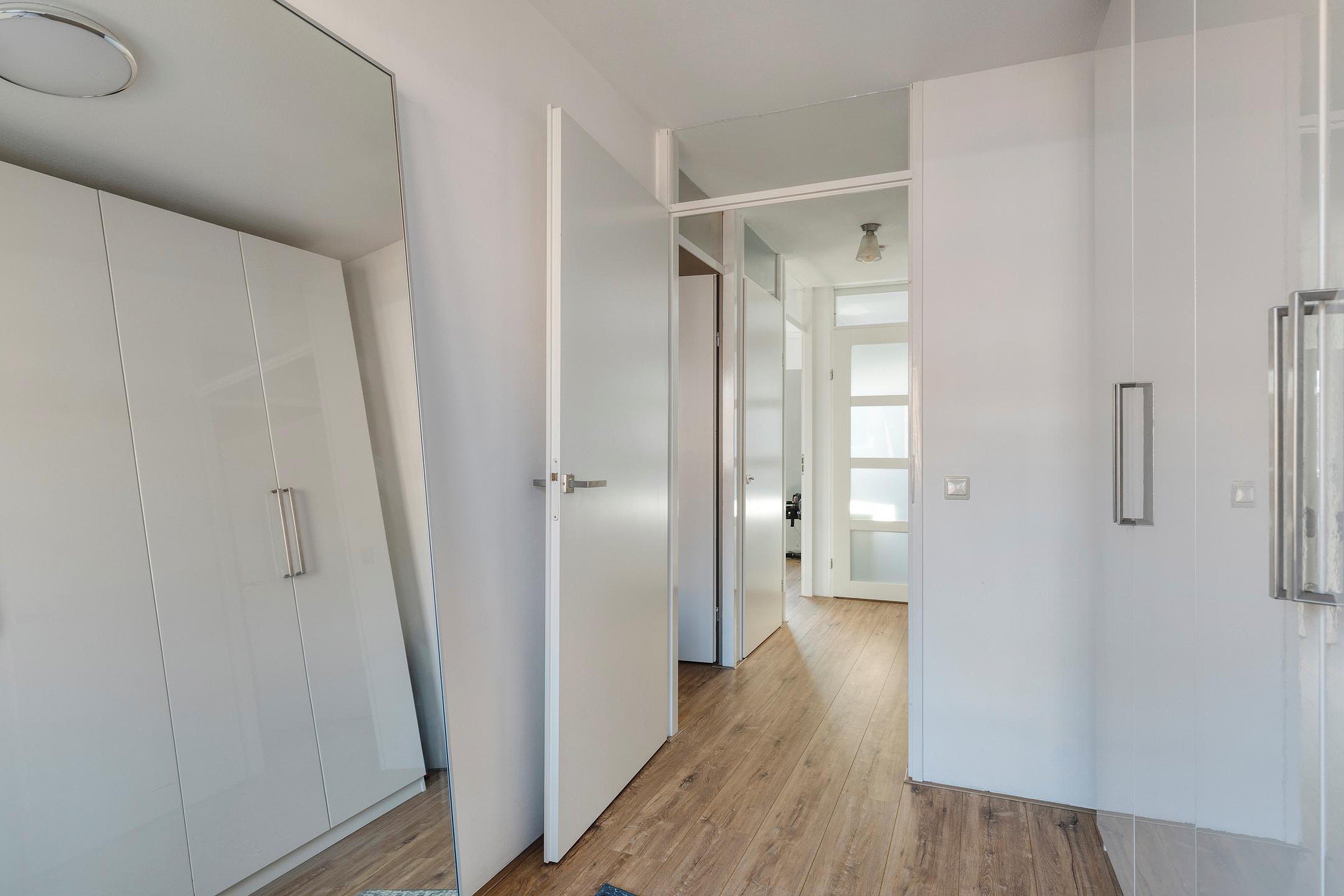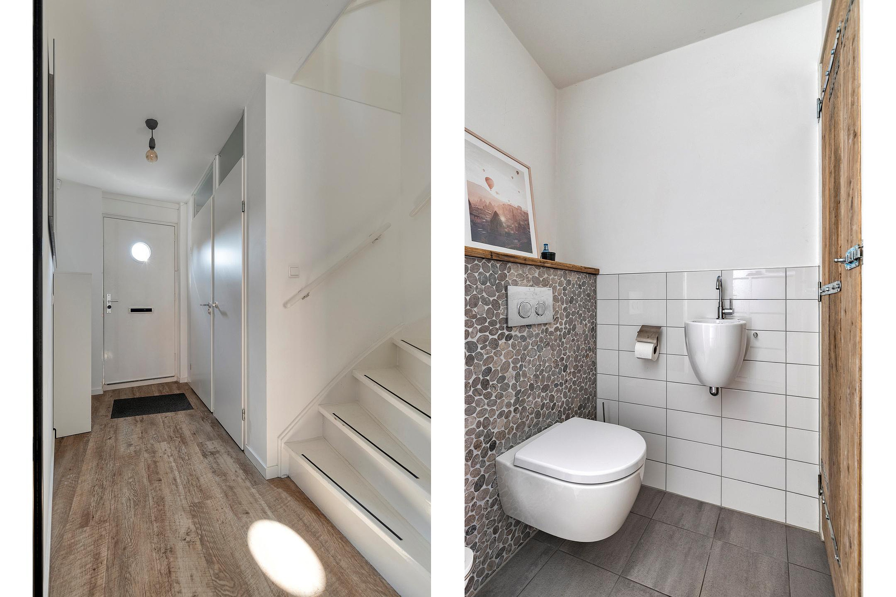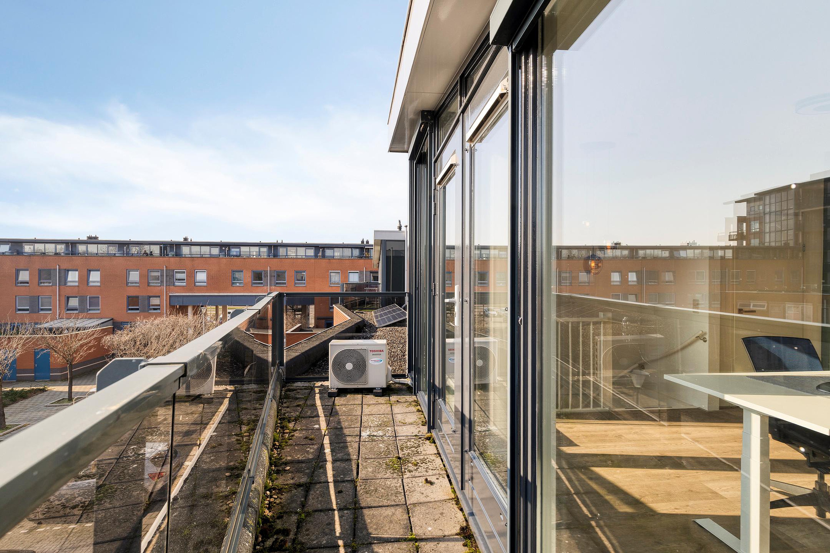 Boven vind je drie slaapkamers en een luxe badkamer met tweede toilet, inloopdouche en wastafelmeubel met dubbele wastafel. De slaapkamers zijn ruim en praktisch ingedeeld, met veel bergruimte. De slaapkamer aan de voorzijde is voorzien van rolluiken. Op de zolder is een royale kamer ingericht als werkkamer – perfect voor thuiswerken – met toegang tot een balkon aan de voorzijde. Aan de achterzijde bevindt zich een wasruimte met aansluitingen voor wasmachine en droger en een grote kastenwand. Alle kamers zijn voorzien van dezelfde laminaatvloer wat het geheel een rustige uitstraling geeft.