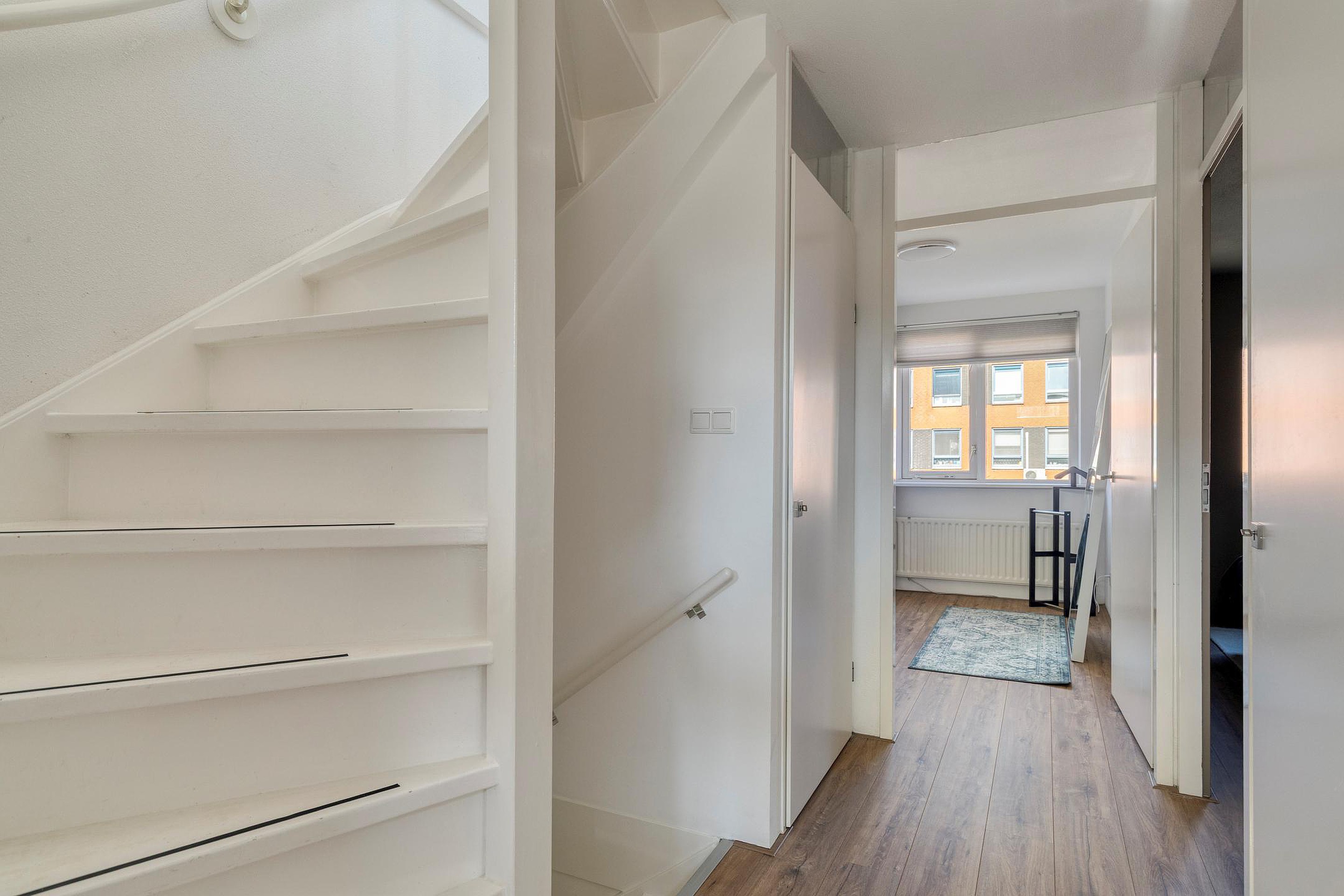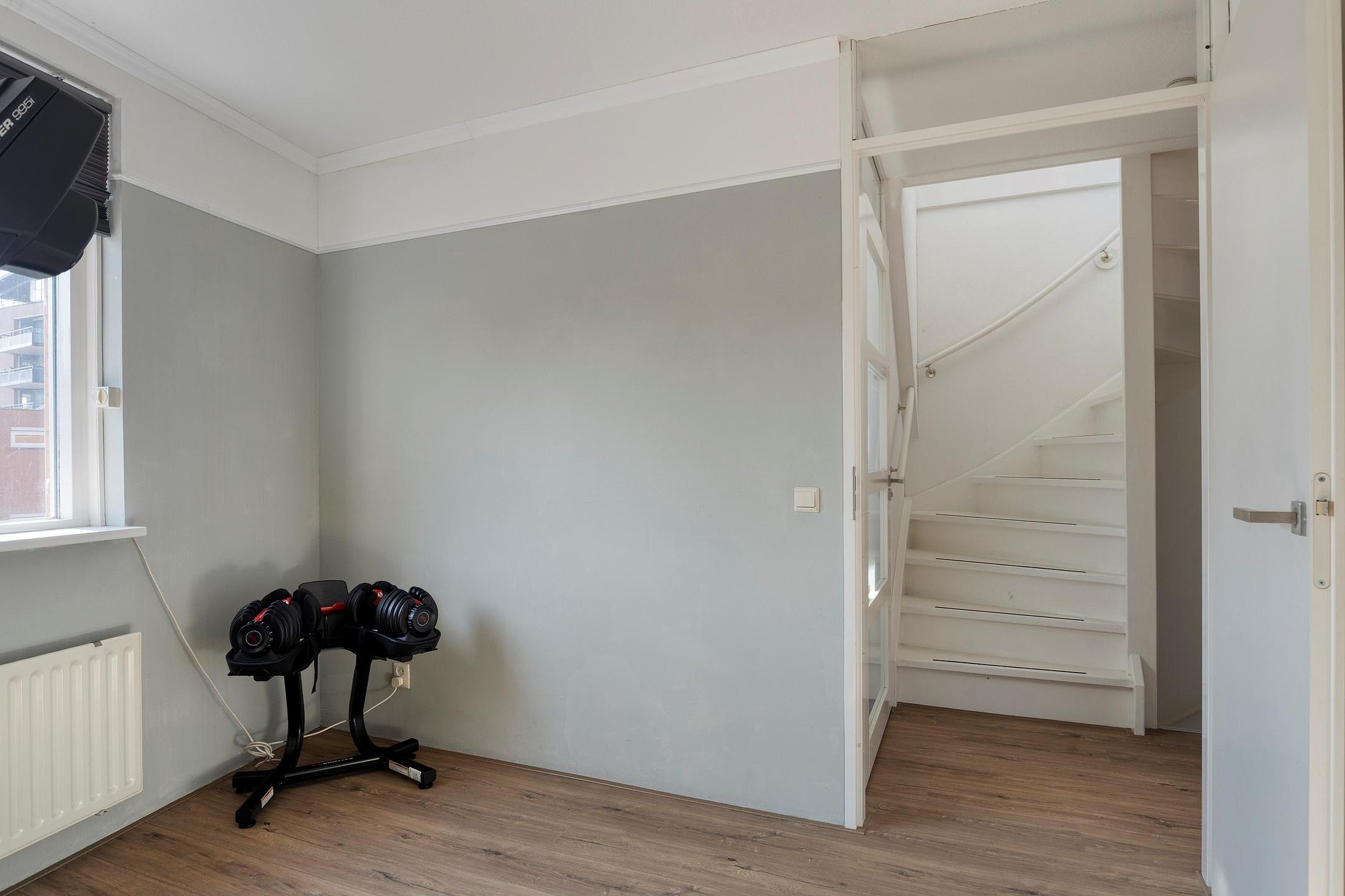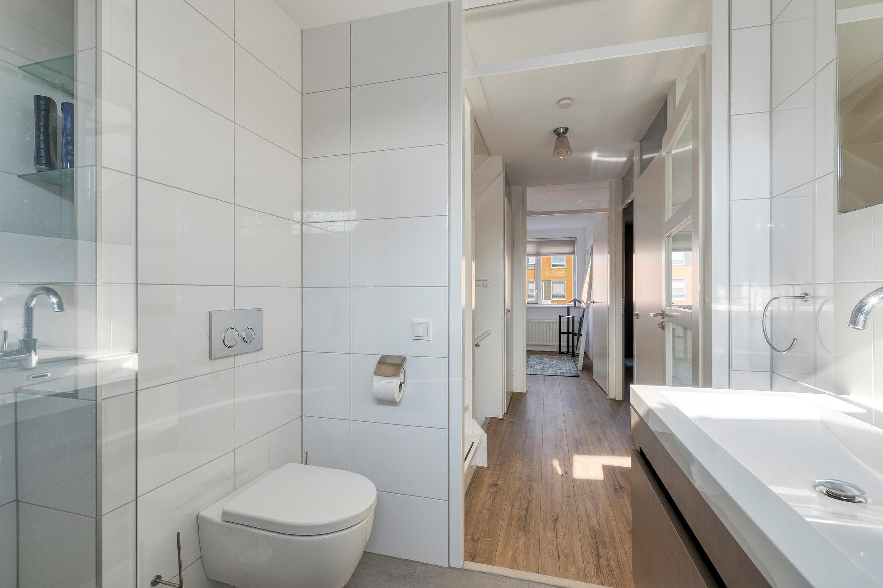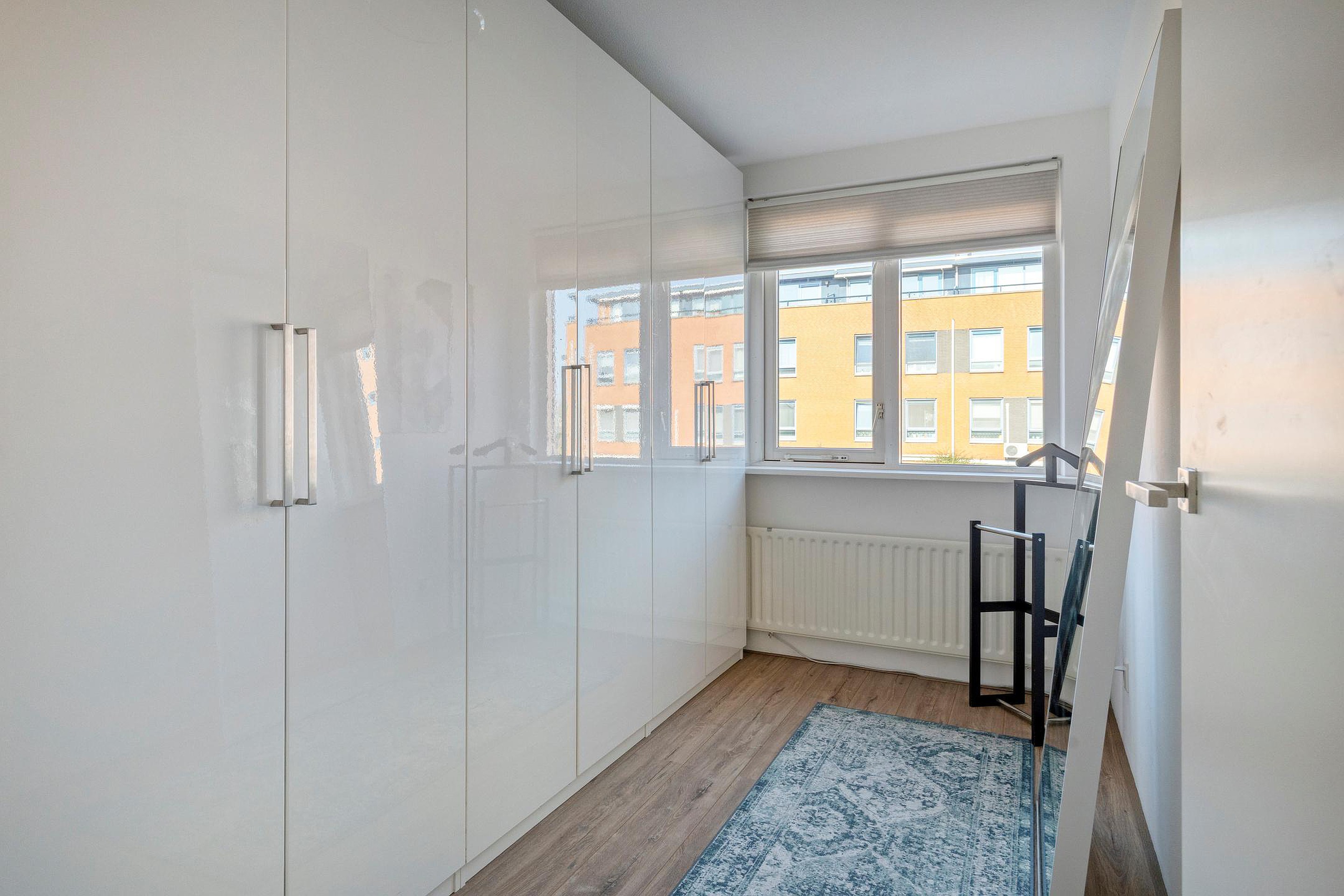 Boven vind je drie slaapkamers en een luxe badkamer met tweede toilet, inloopdouche en wastafelmeubel met dubbele wastafel. De slaapkamers zijn ruim en praktisch ingedeeld, met veel bergruimte. De slaapkamer aan de voorzijde is voorzien van rolluiken. Op de zolder is een royale kamer ingericht als werkkamer – perfect voor thuiswerken – met toegang tot een balkon aan de voorzijde. Aan de achterzijde bevindt zich een wasruimte met aansluitingen voor wasmachine en droger en een grote kastenwand. Alle kamers zijn voorzien van dezelfde laminaatvloer wat het geheel een rustige uitstraling geeft.