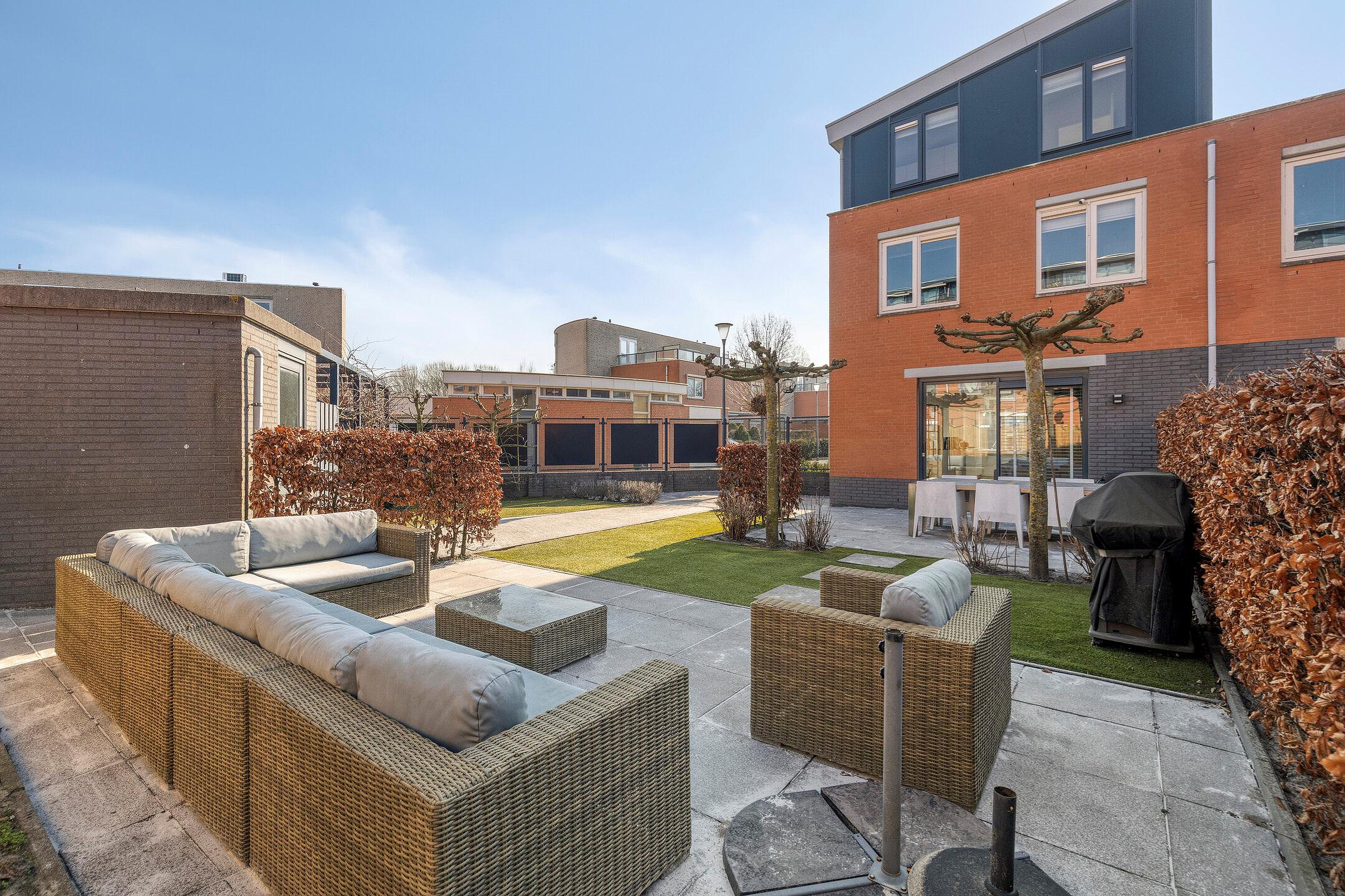 Aan de tuinzijde ligt de gezellige zitkamer, met een grote schuifpui waardoor je zo de tuin in loopt. De tuin is een heerlijke plek om te ontspannen. Ruim van opzet, met een stenen berging, en een carport met laadpaal. Er is voldoende (gratis) parkeergelegenheid voor de deur.