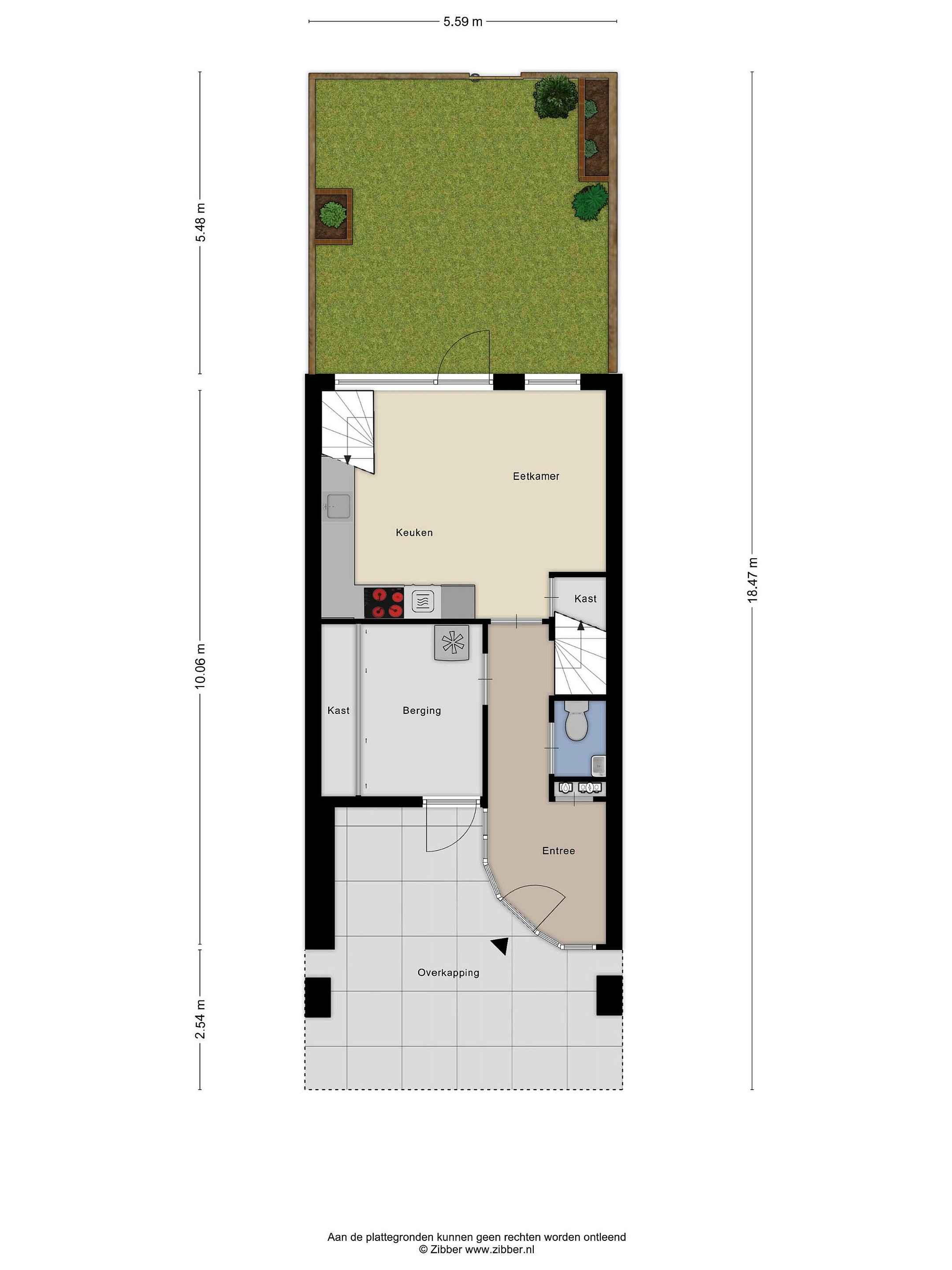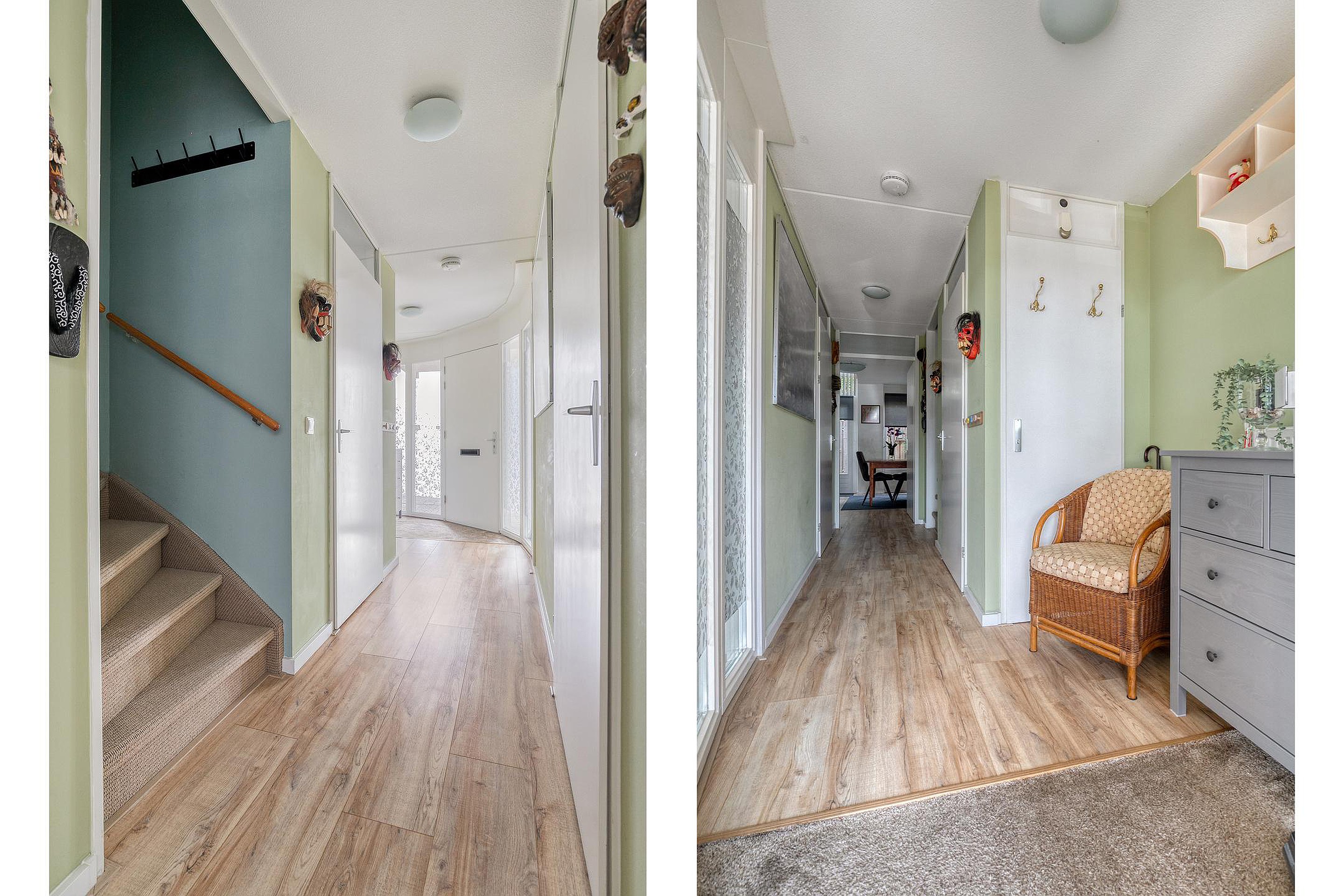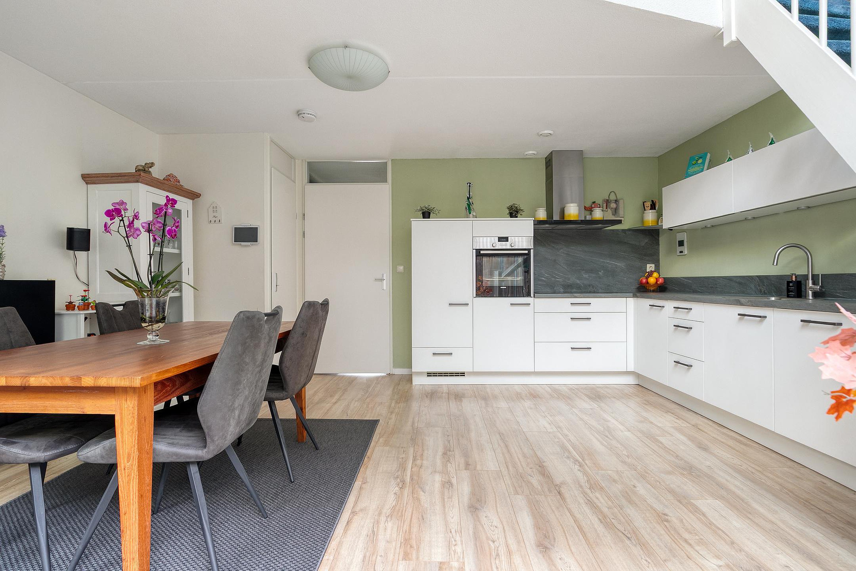 Entree met ruime hal, trap naar de eerste verdieping, toilet en meterkast. Vanuit de hal is er toegang tot de royale inpandige berging/bijkeuken, die ook vanaf straatzijde toegankelijk is. De woonkeuken is ingericht met een moderne keukenopstelling (2020) voorzien van diverse inbouwapparatuur: vaatwasser, afzuigkap, inductiekookplaat, koelkast en oven. Vanuit de keuken bereikt u zowel de achtertuin als via een trap de eerste verdieping. De achtertuin is gelegen op het noorden en beschikt over een achterom.